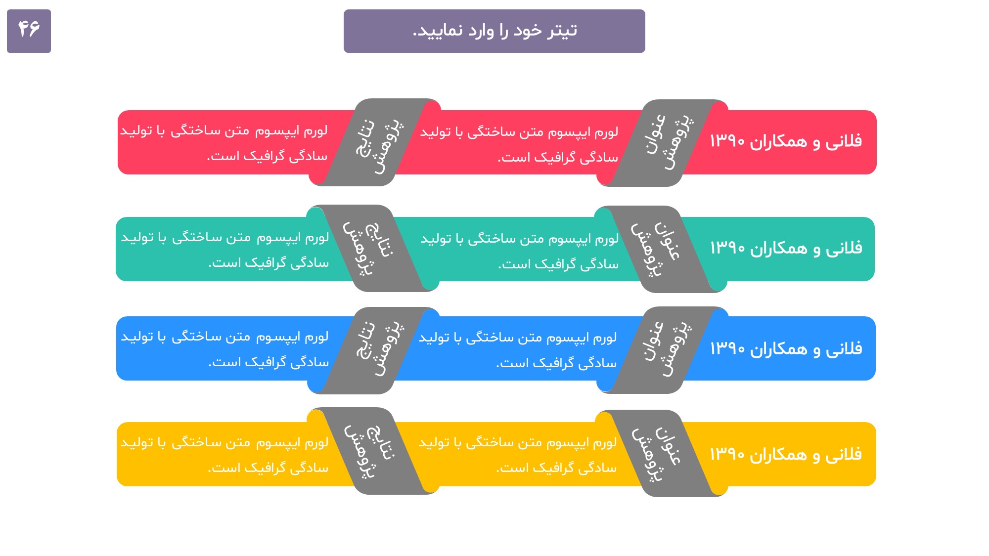 مناسب برای انواع ارائهها: با توجه به نوع طراحی این قالب، میتوانید از آن برای انواع ارائه ها از جمله پایان نامه ارشد و دکتری و دانشگاهی استفاده کنید.
