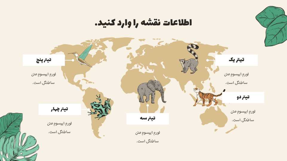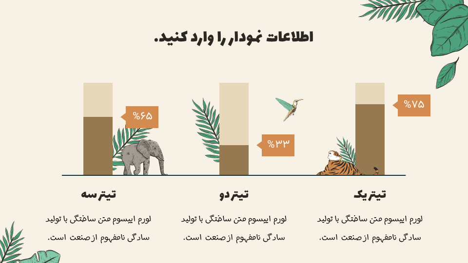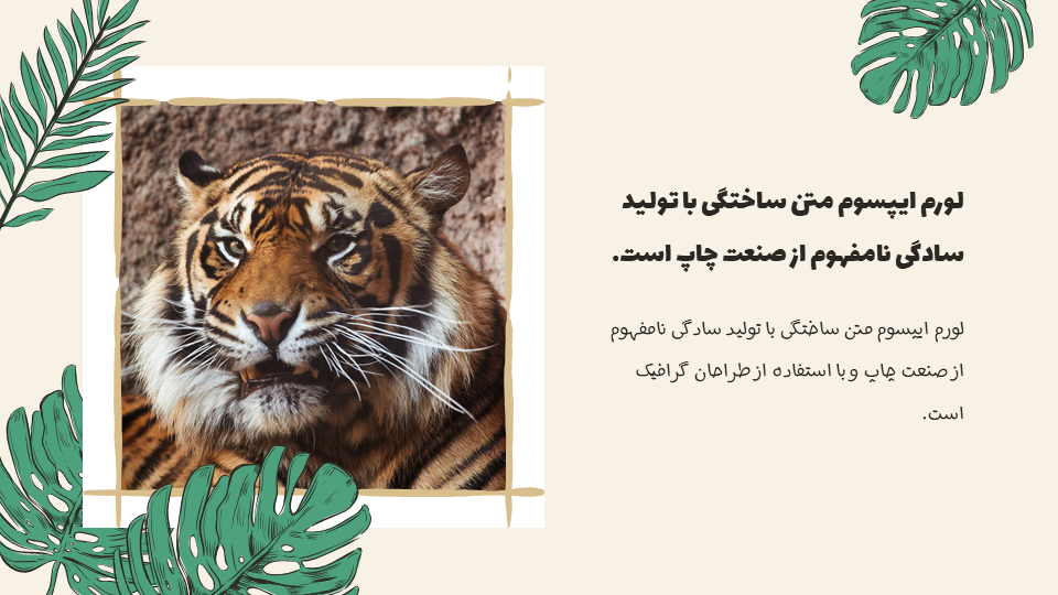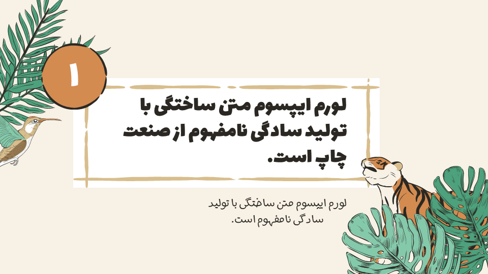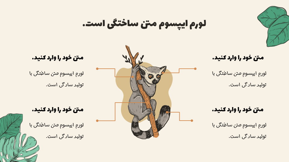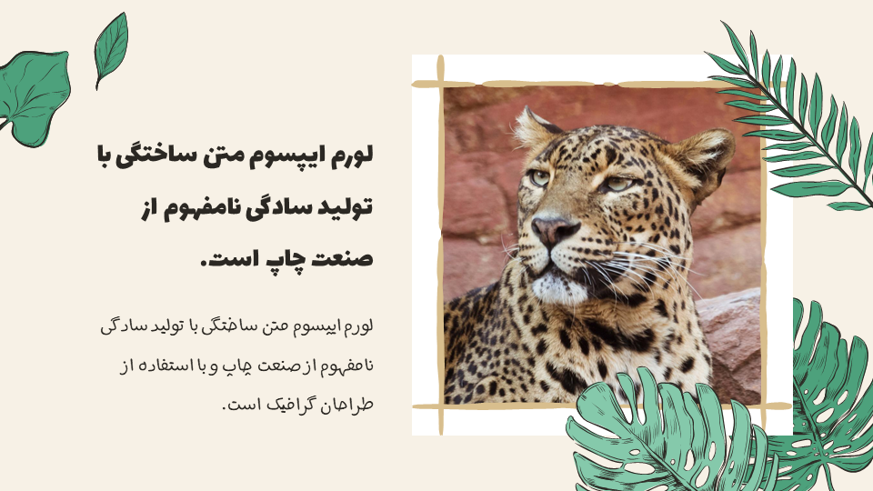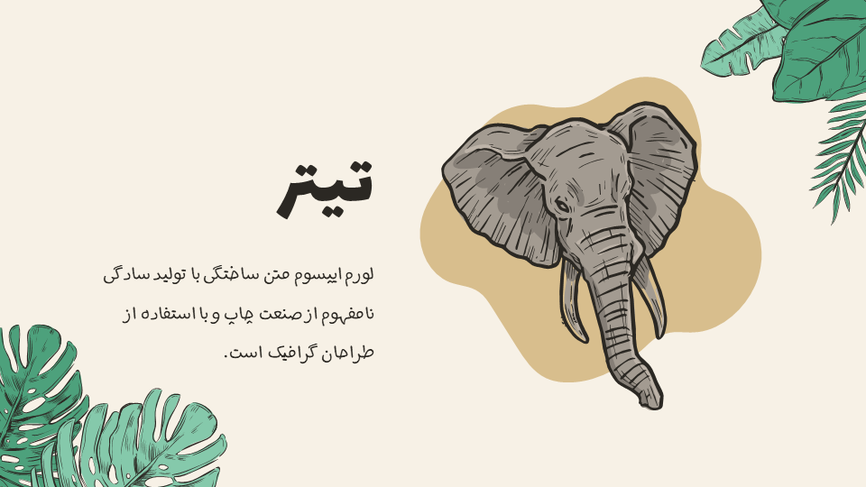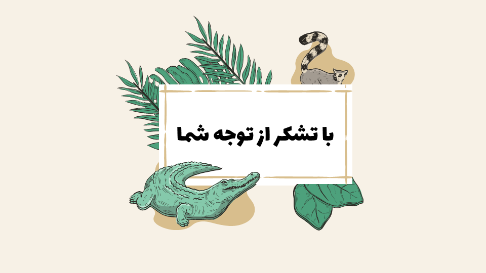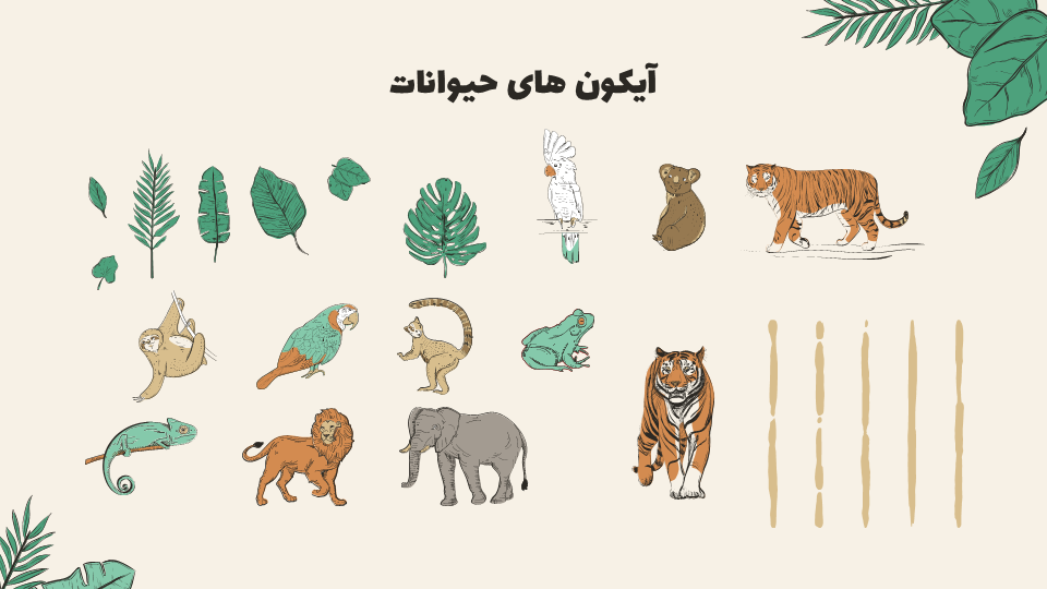 المانهای گرافیکی: دارای المان گرافیکی مثل وکتور حیوانات، اسلاید متن، پس زمینه مناسب حیوانات، اسلاید آیکون و…