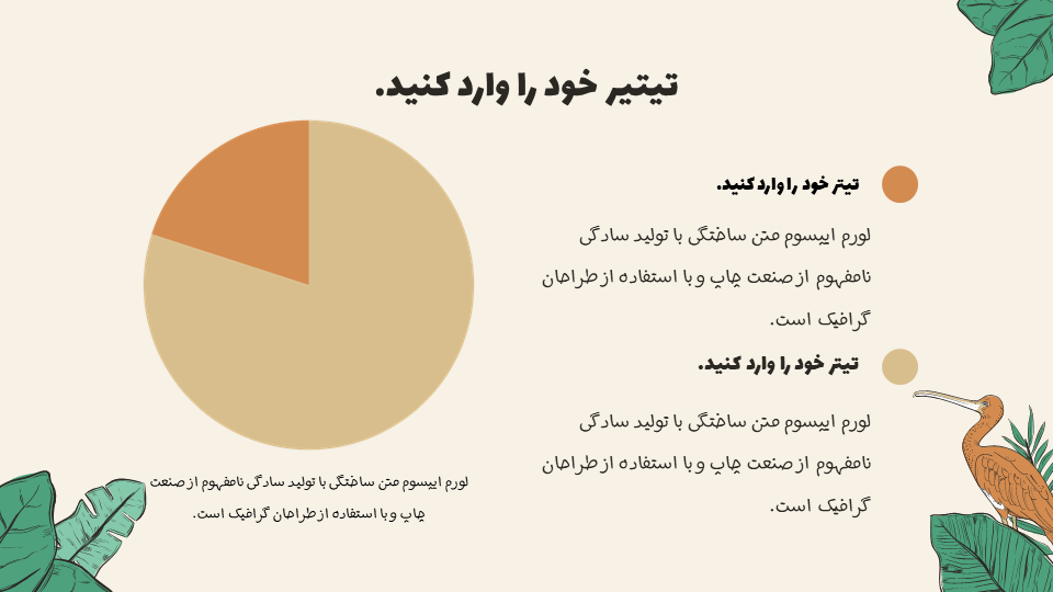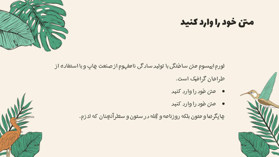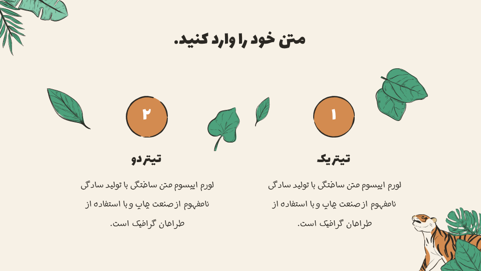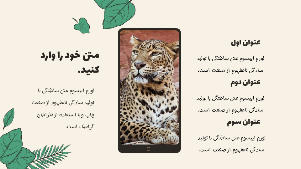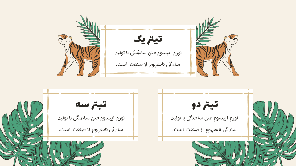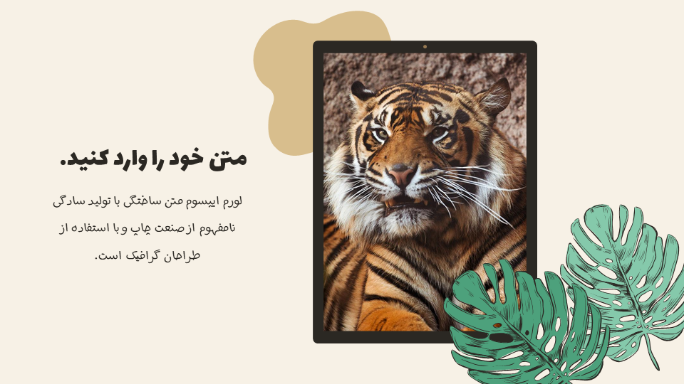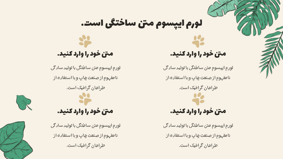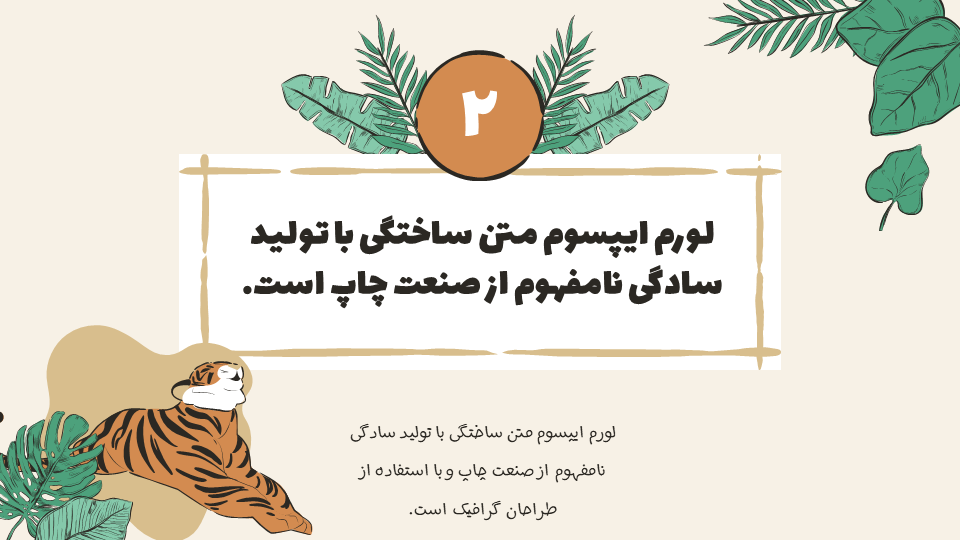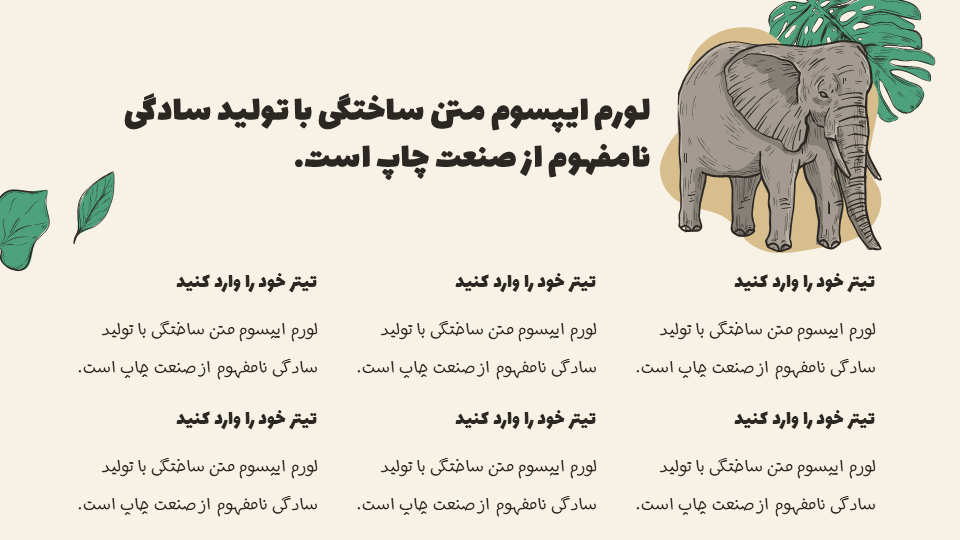 المانهای گرافیکی: دارای المان گرافیکی مثل وکتور حیوانات، اسلاید متن، پس زمینه مناسب حیوانات، اسلاید آیکون و…