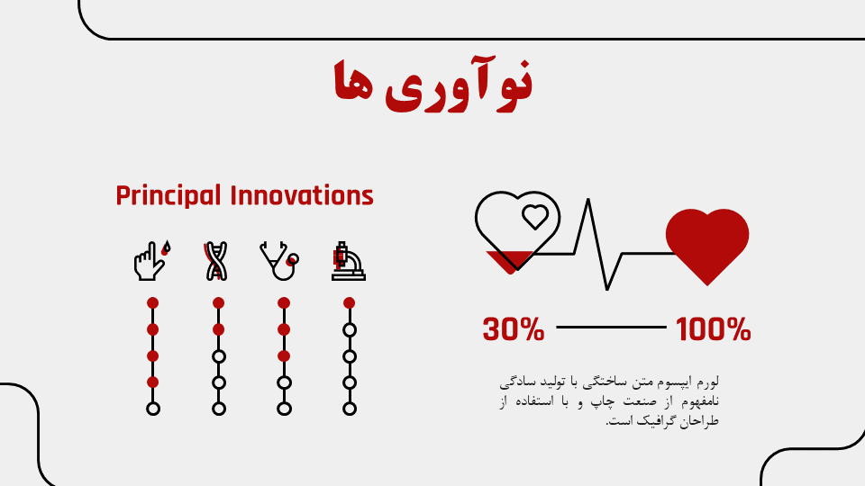 المان‌های گرافیکی: المان گرافیکی مثل اینفوگرافیک، اسلاید تصویر، جدول، وکتورهای مرتبط مثل سرم خون، قلب و… دارد.