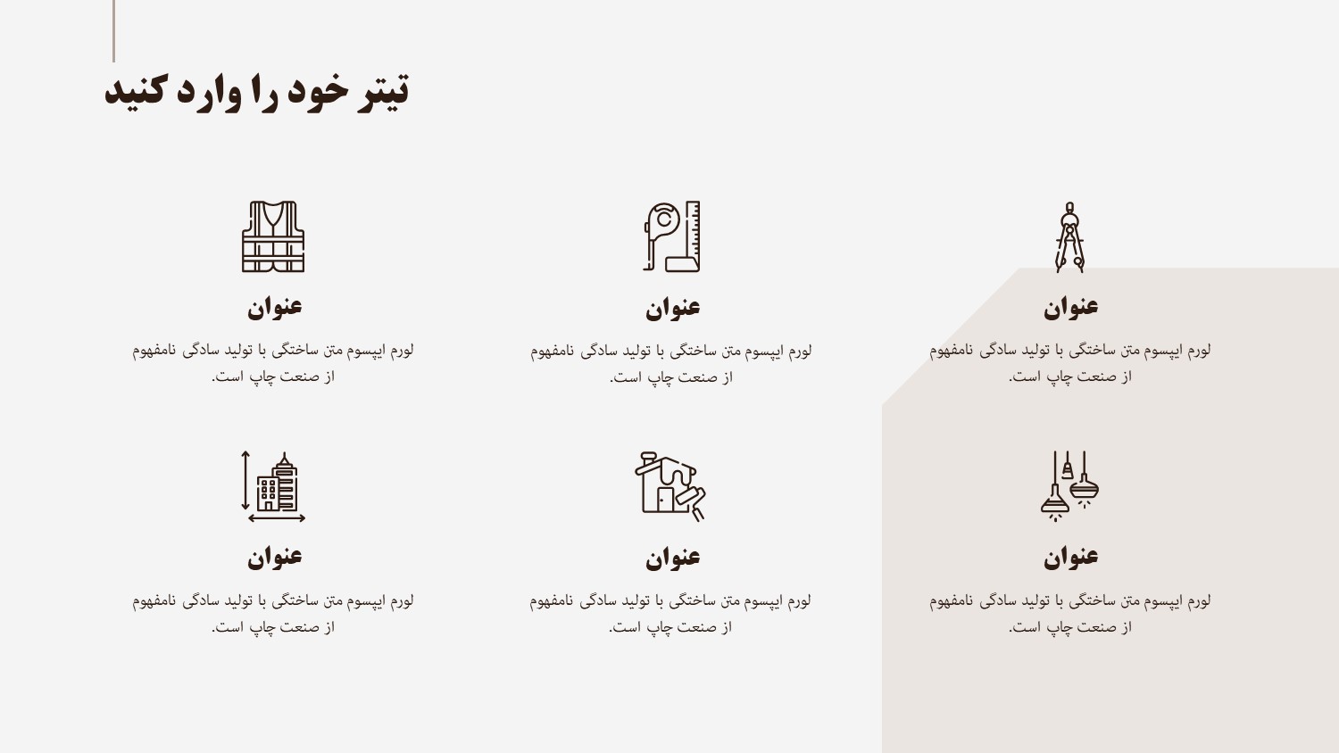 مناسب برای انواع ارائههای مهندسی: با توجه به نوع طراحی این قالب میتوانید برای انواع ارائه های مهندسی خصوصا مهندسی معماری استفاده کنید.