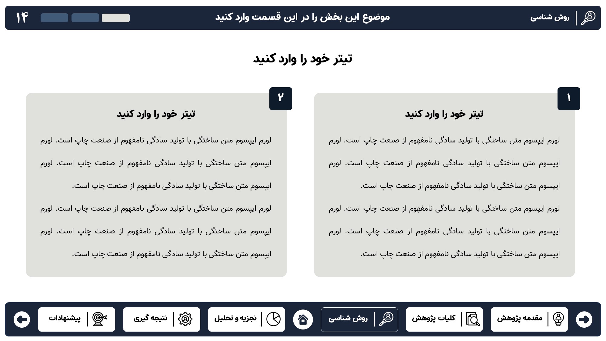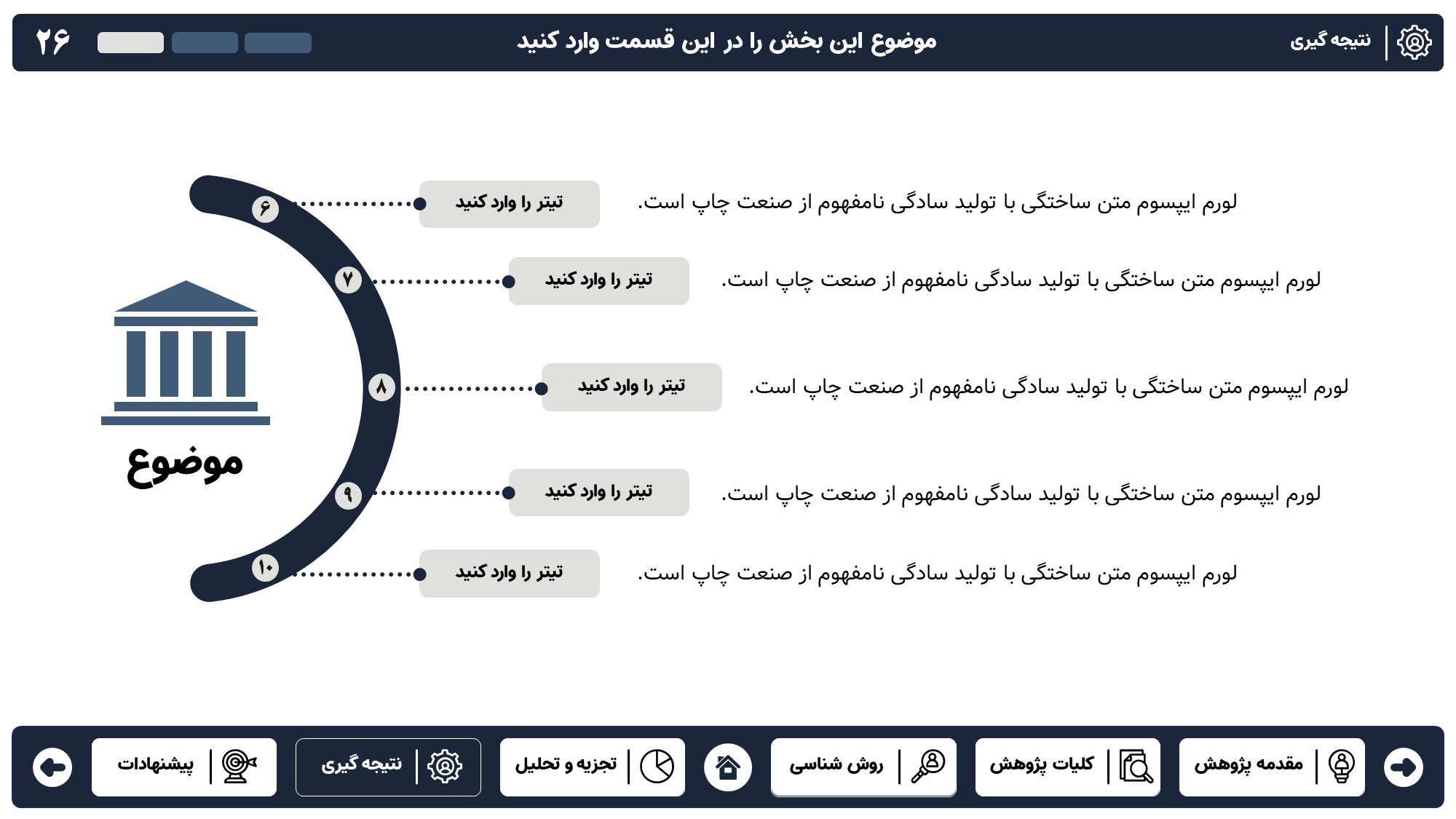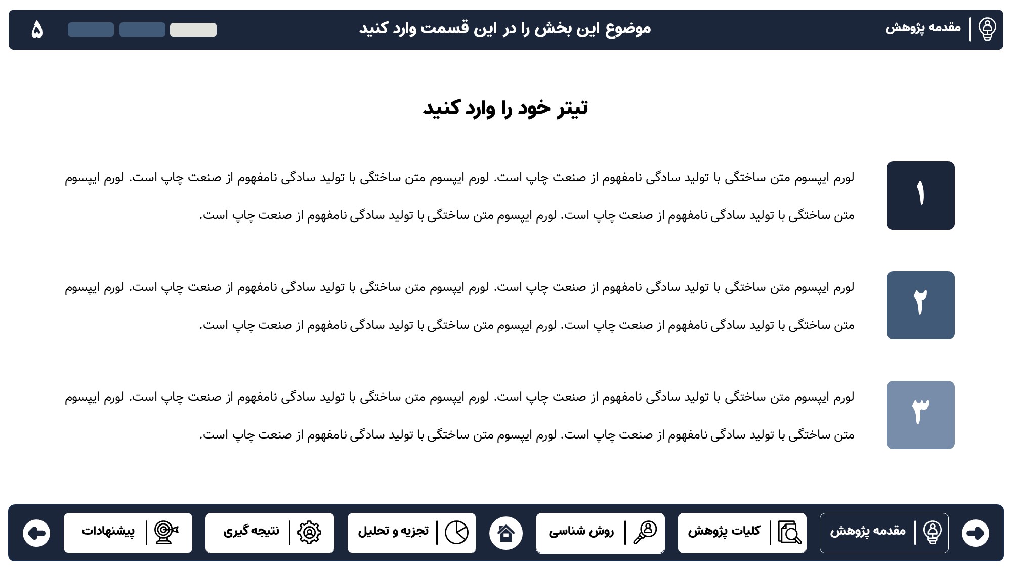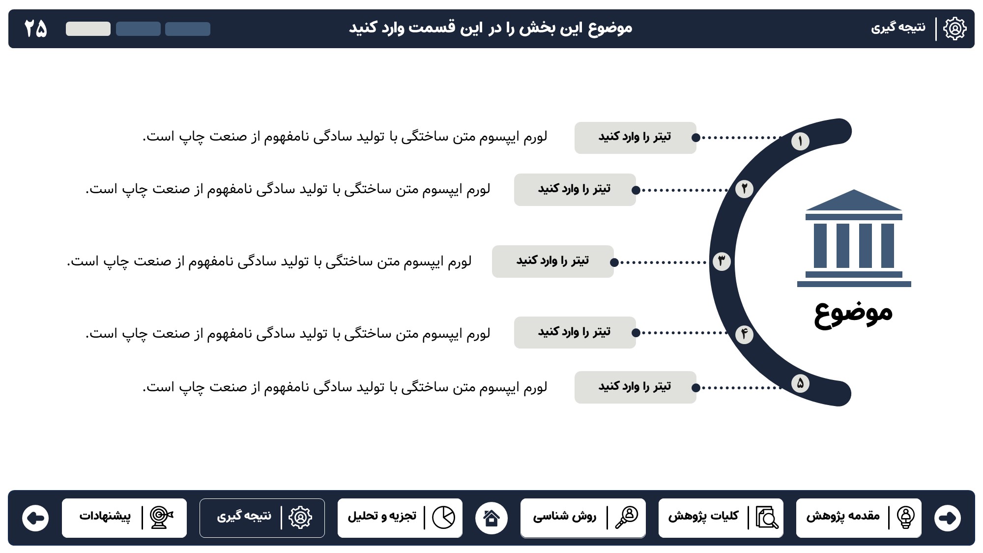 شماره گذاری اسلایدها: دارد. یعنی با اضافه یا کم کردن اسلایدها شماره گذاری به صورت خودکار تغییر پیدا میکند.