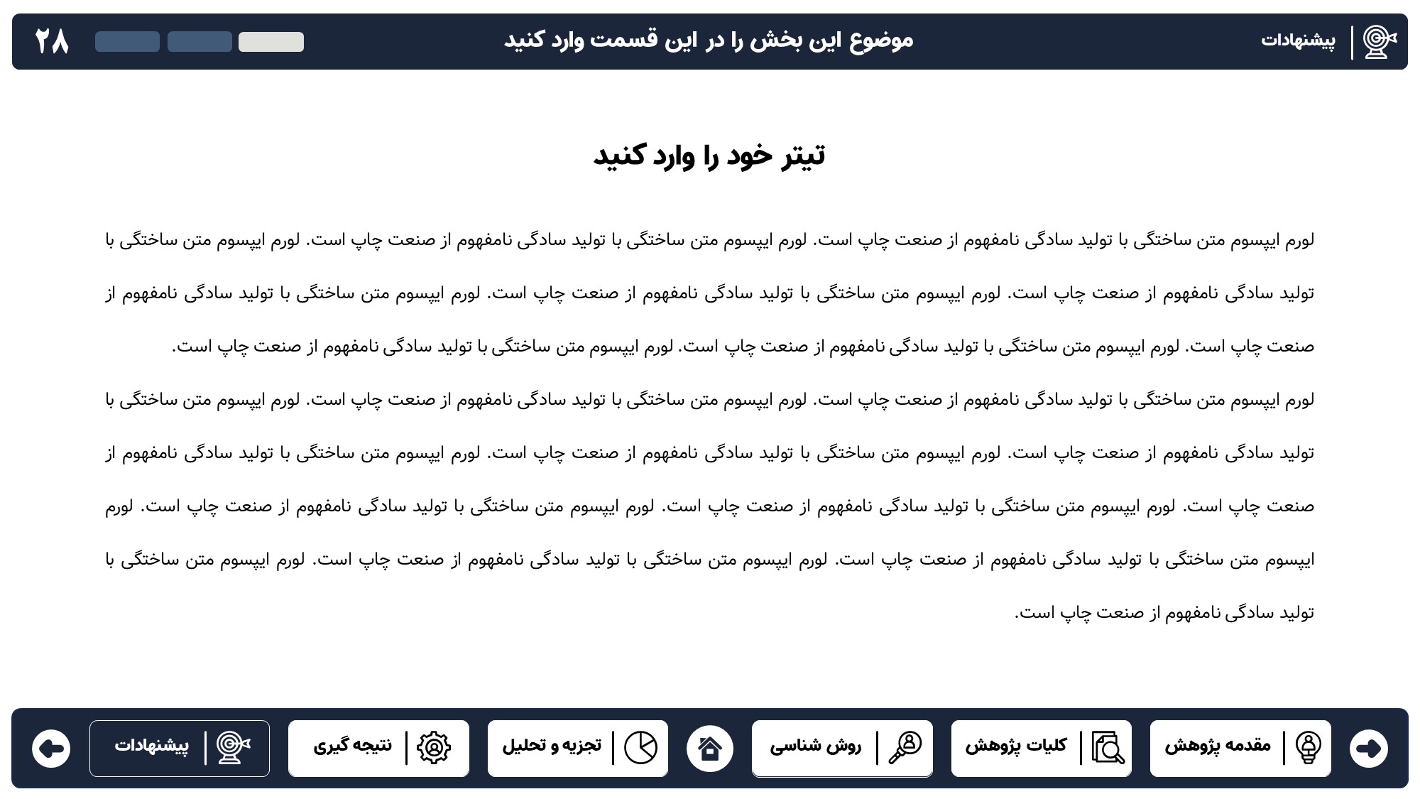 استفاده از عکس های وکتور از ویژگی های دیگر این قالب میباشد. برای مشاهده قالب های پایان نامه بیشتر روی قالب پاورپوینت جلسه دفاع پایان نامه کلیک کنید.