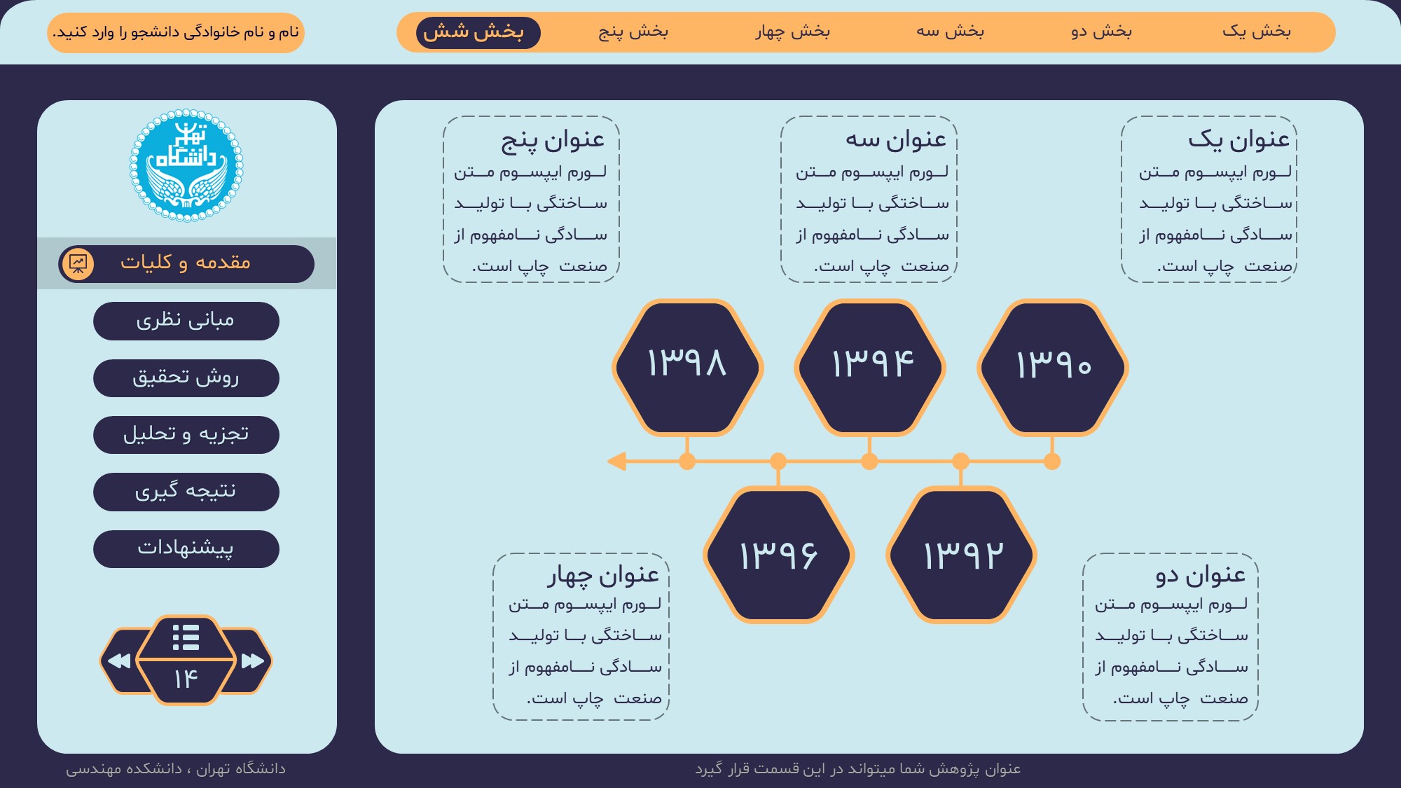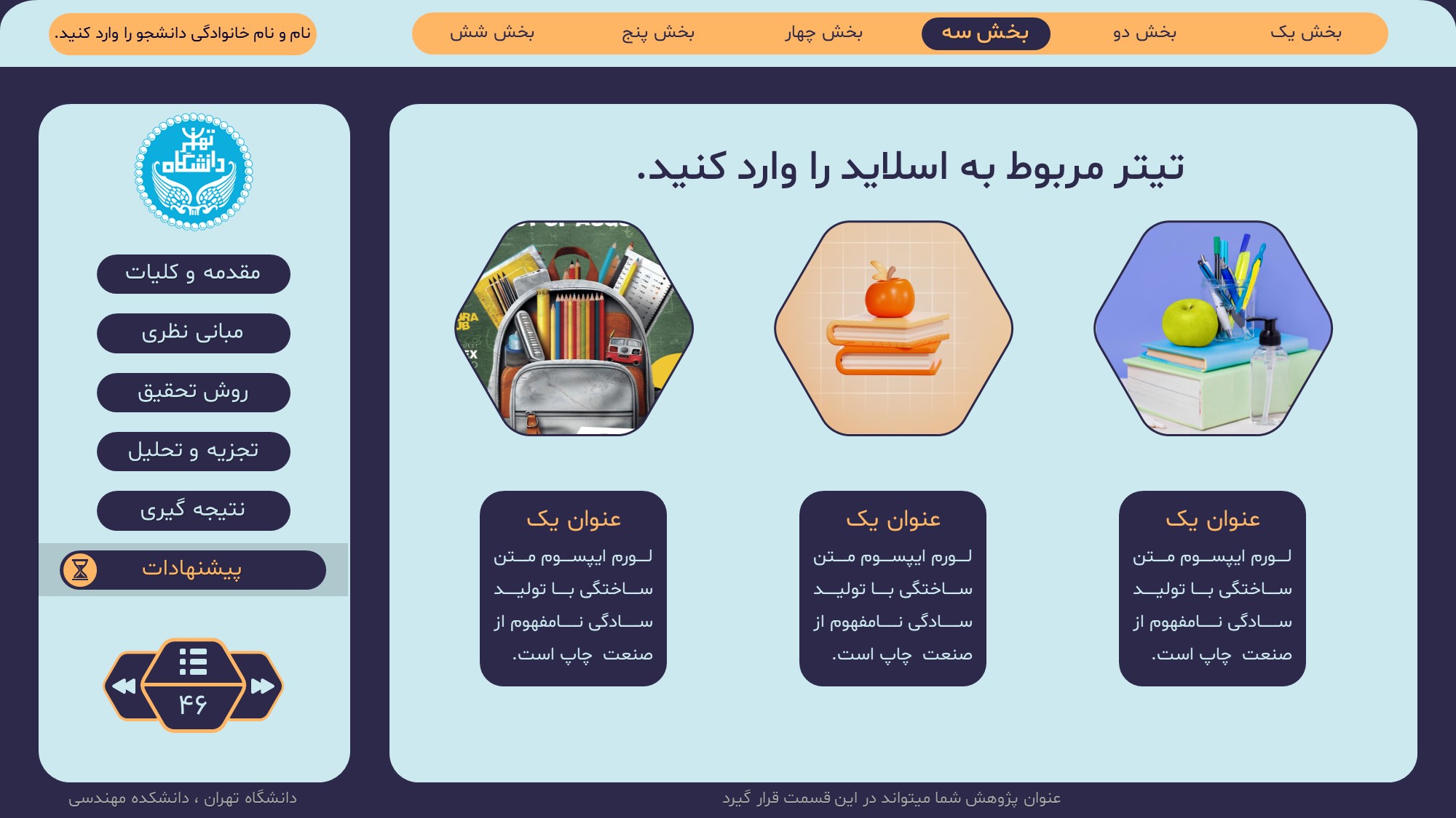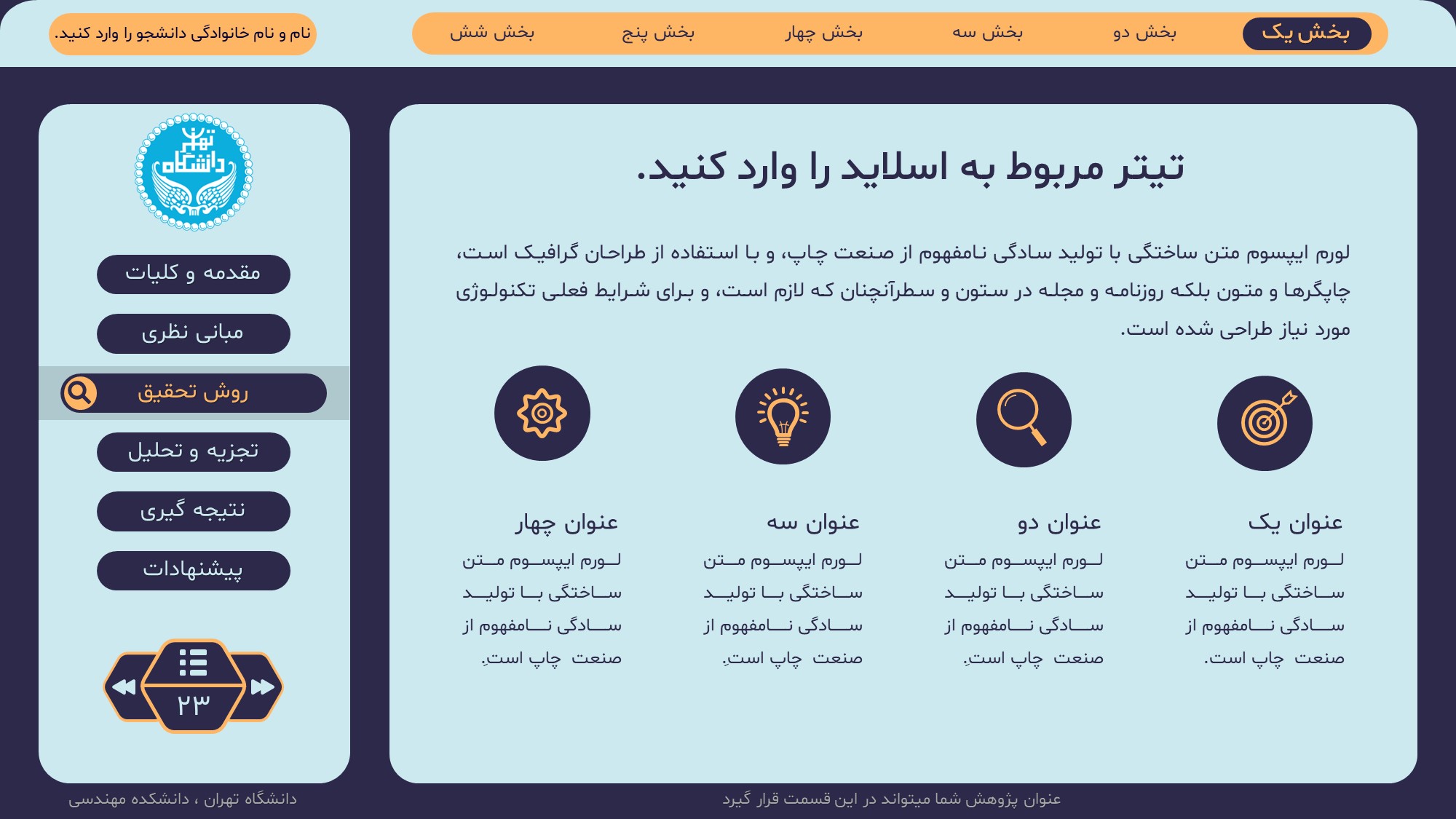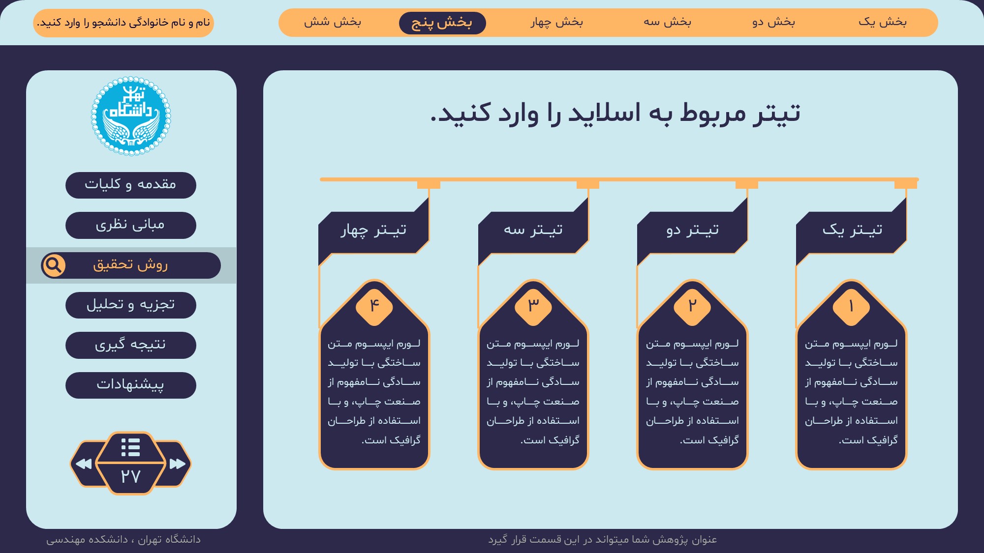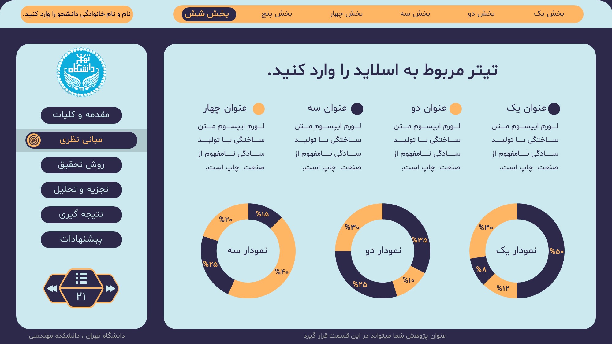 مناسب برای انواع ارائههای پایان نامه: با توجه به نوع طراحی این قالب، میتوانید از آن برای انواع ارائه های پایان نامه ارشد و دکتری و دانشگاهی و … استفاده کنید.