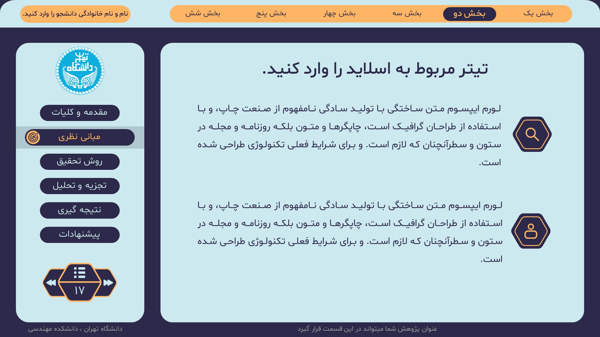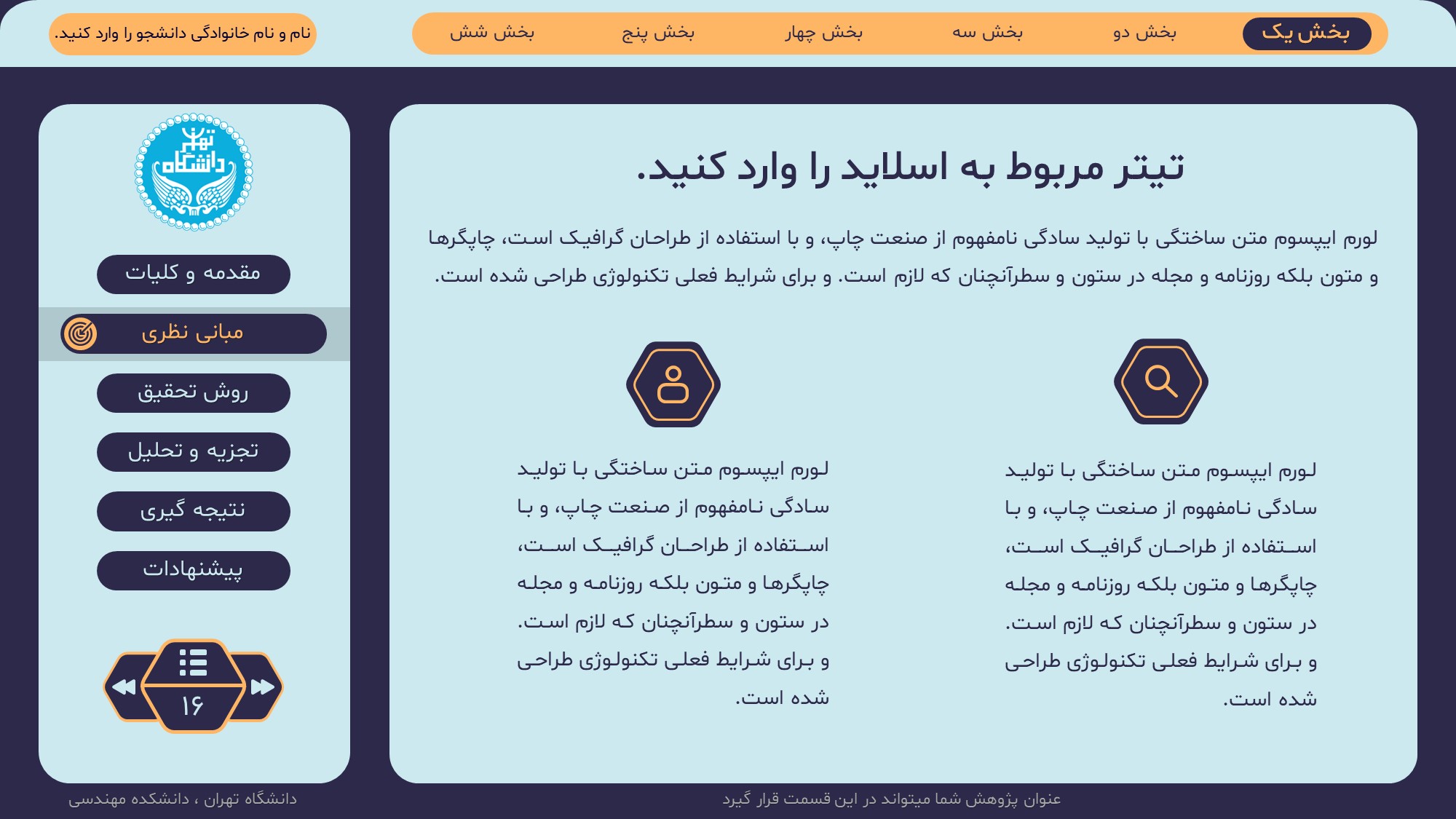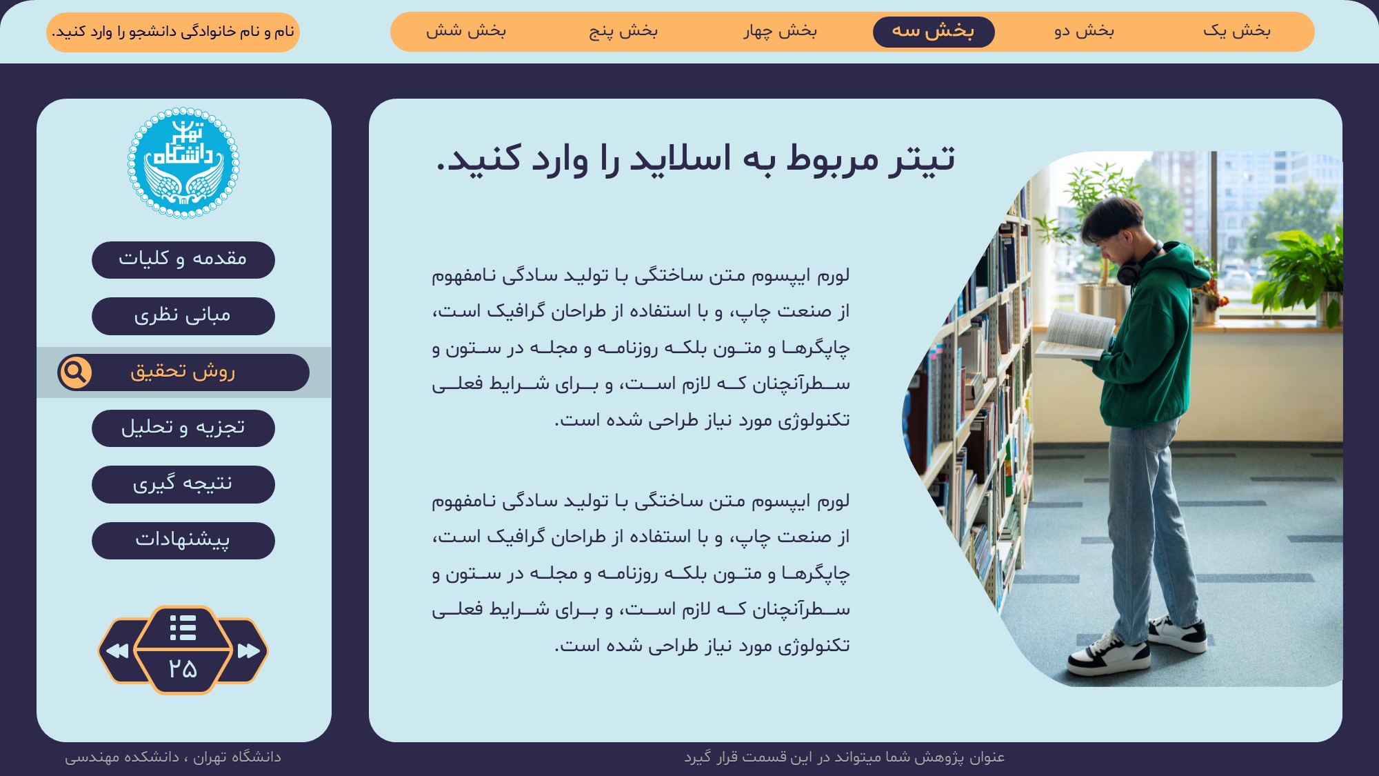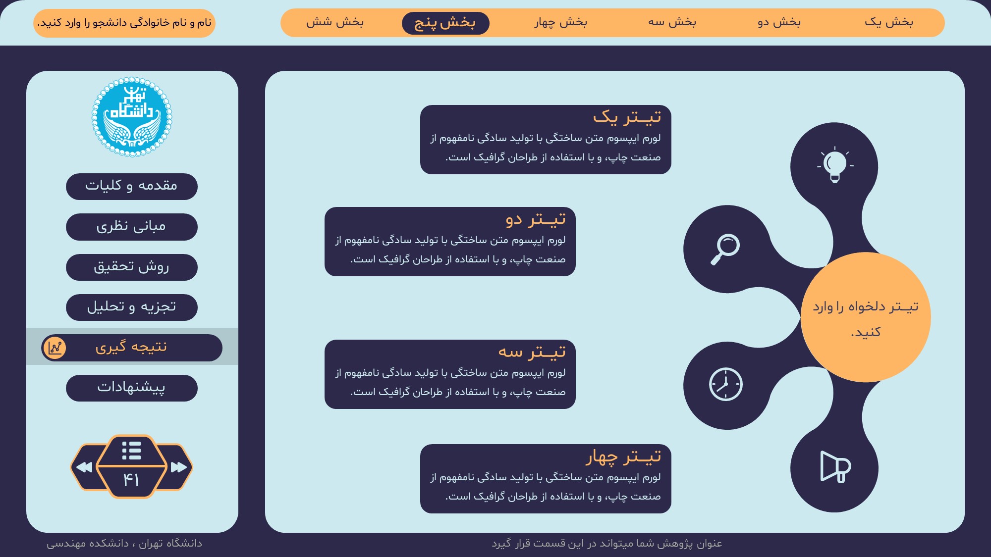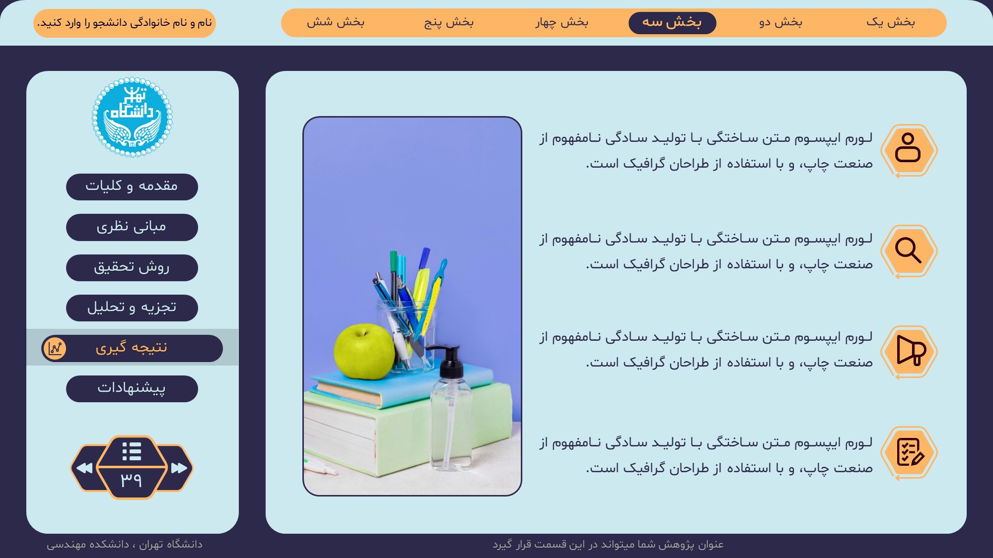 مناسب برای انواع ارائههای پایان نامه: با توجه به نوع طراحی این قالب، میتوانید از آن برای انواع ارائه های پایان نامه ارشد و دکتری و دانشگاهی و … استفاده کنید.