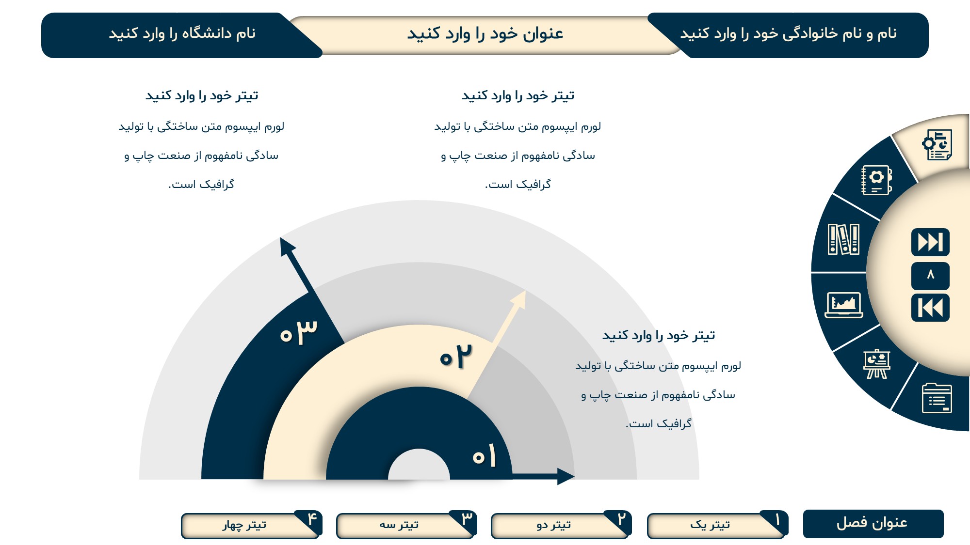 با توجه به استقبال زیاد شما عزیزان از این قالب پاورپوینت منودار چرخشی؛ تصمیم گرفتیم ویژگی های دیگری به آن اضافه کرده و آپدیت جدید را در سایت ایران پاورپوینت منتشر کنیم.