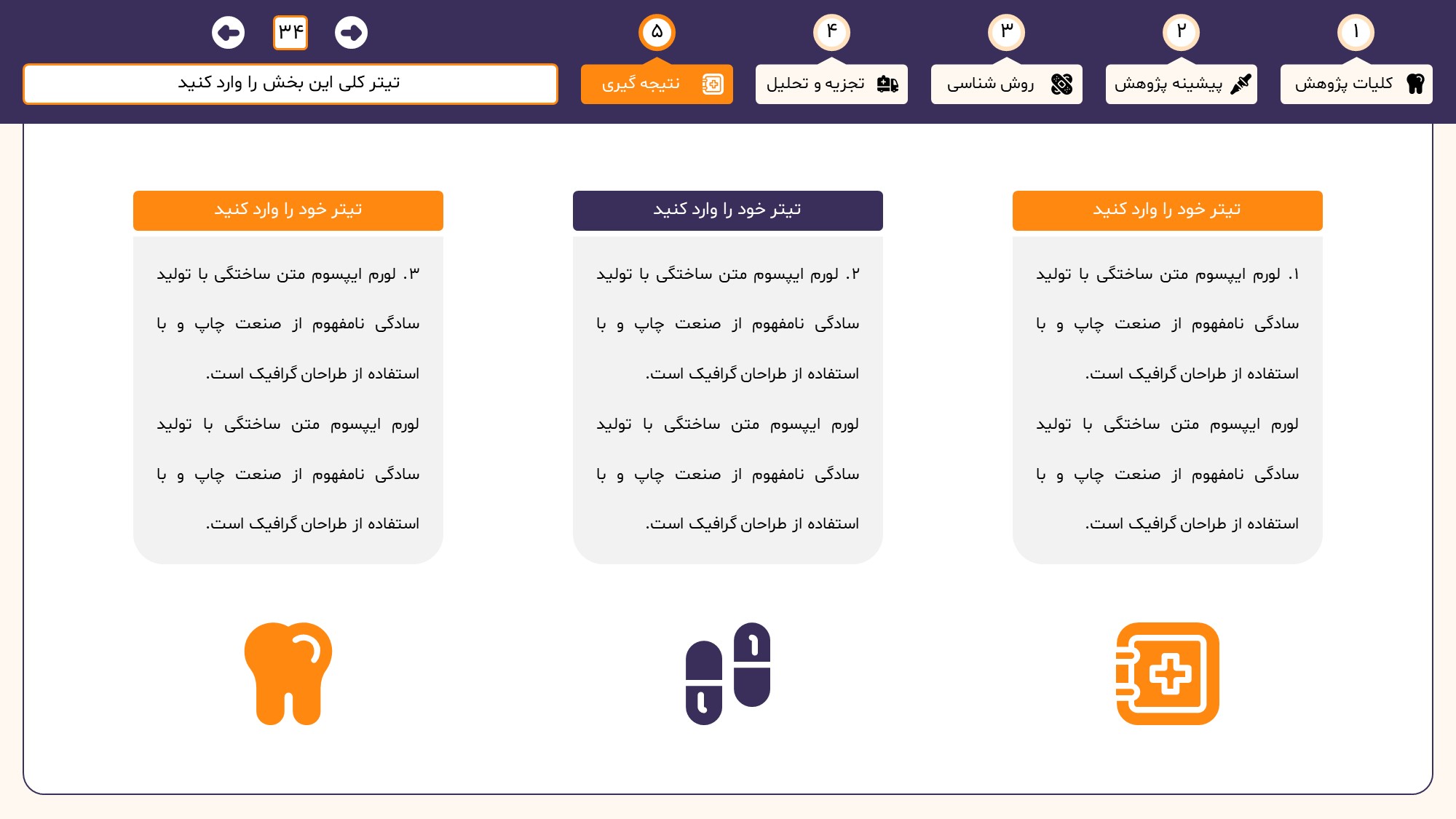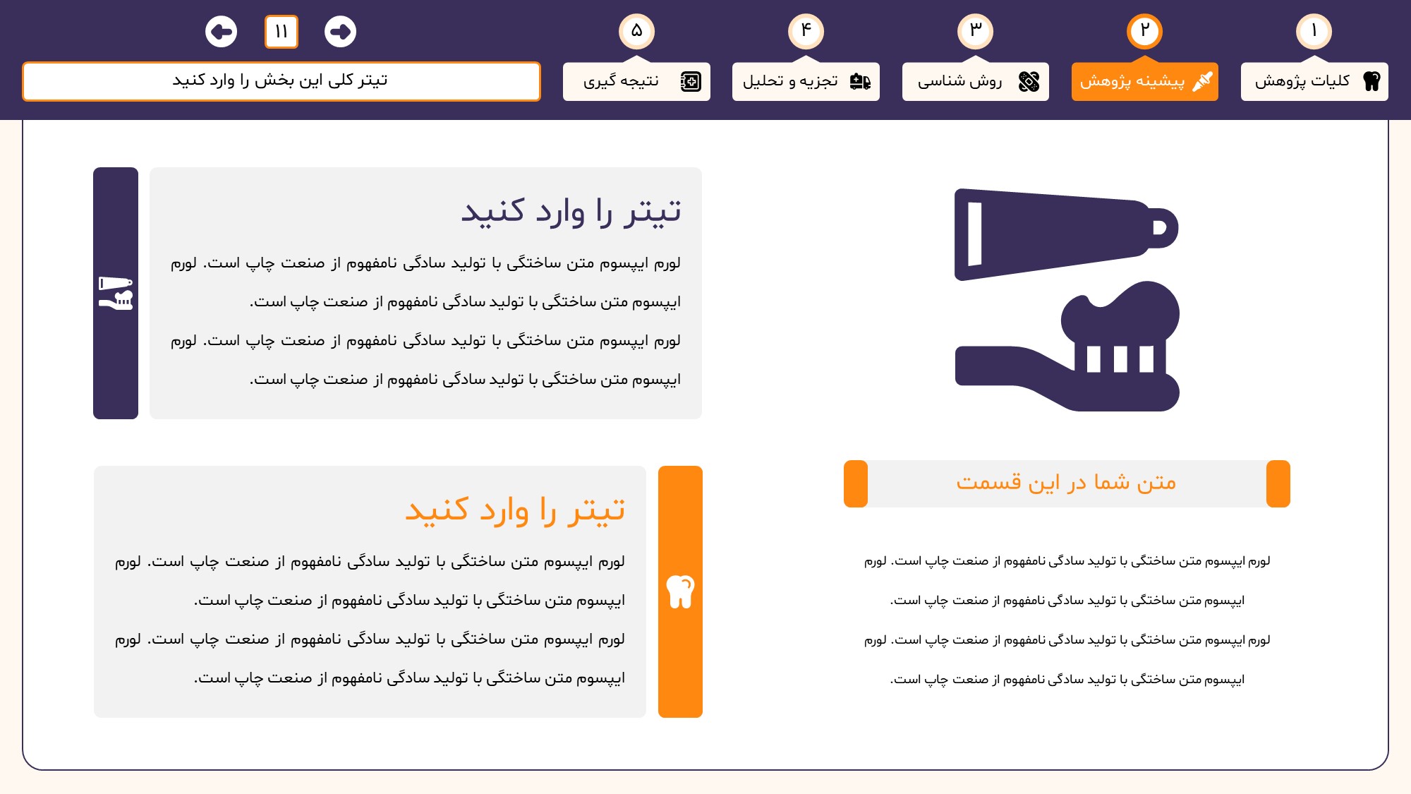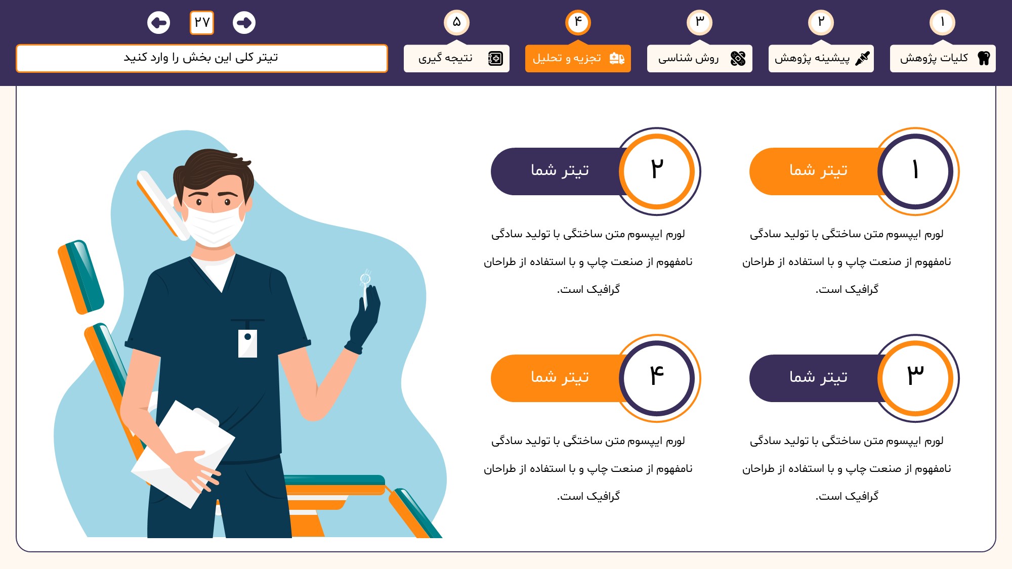 مناسب برای انواع ارائههای دندان پزشکی: با توجه به نوع طراحی این قالب، میتوانید از آن برای انواع ارائه های دندان پزشکی از جمله پایان نامه ارشد و دکتری و دانشگاهی استفاده کنید.