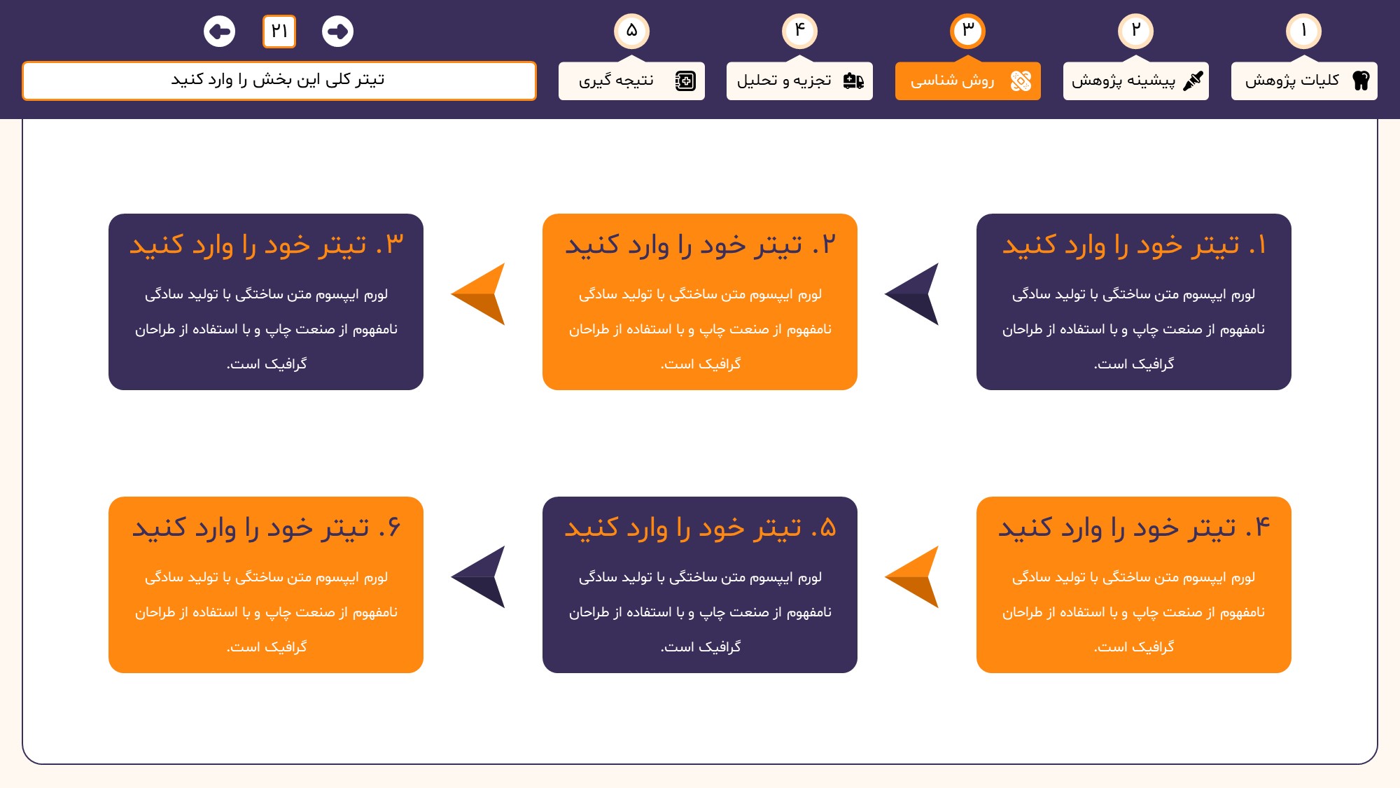 منوی پنج تایی این قالب به همراه ترنزیشن جذاب مورف به ویژگی های حرفه ای این تم پاورپوینت قابل ویرایش اضافه میکند.