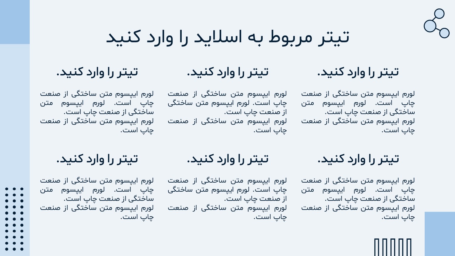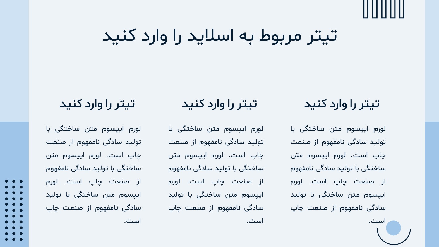 این قالب در 10 اسلاید مختلف آماده شده است که دارای رنگ بندی مناسب انواع ارائه های رسمی شما است. امیدواریم از این قالب بهترین استفاده را داشته باشید.