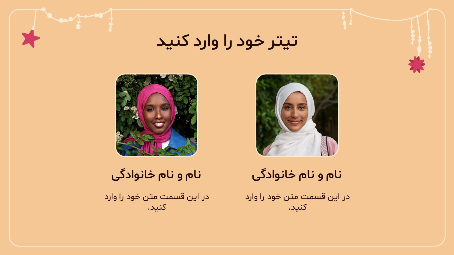 مناسب برای انواع ارائههای مذهبی: با توجه به نوع طراحی این قالب میتوانید برای انواع ارائه های مذهبی خصوصا در مورد حجاب استفاده کنید.