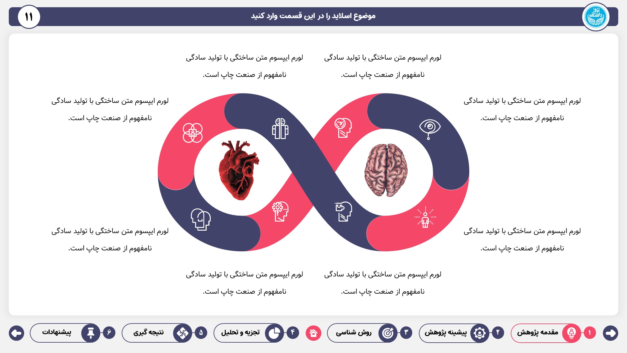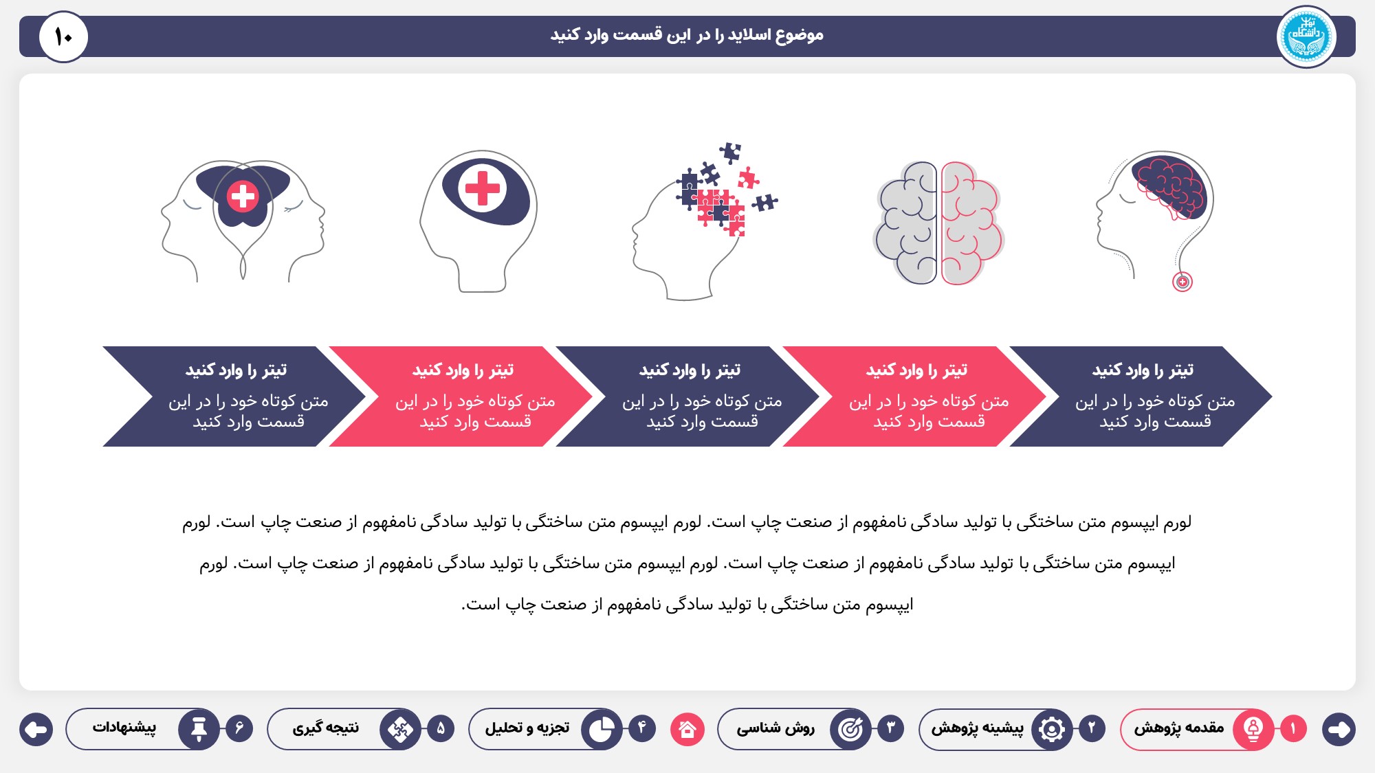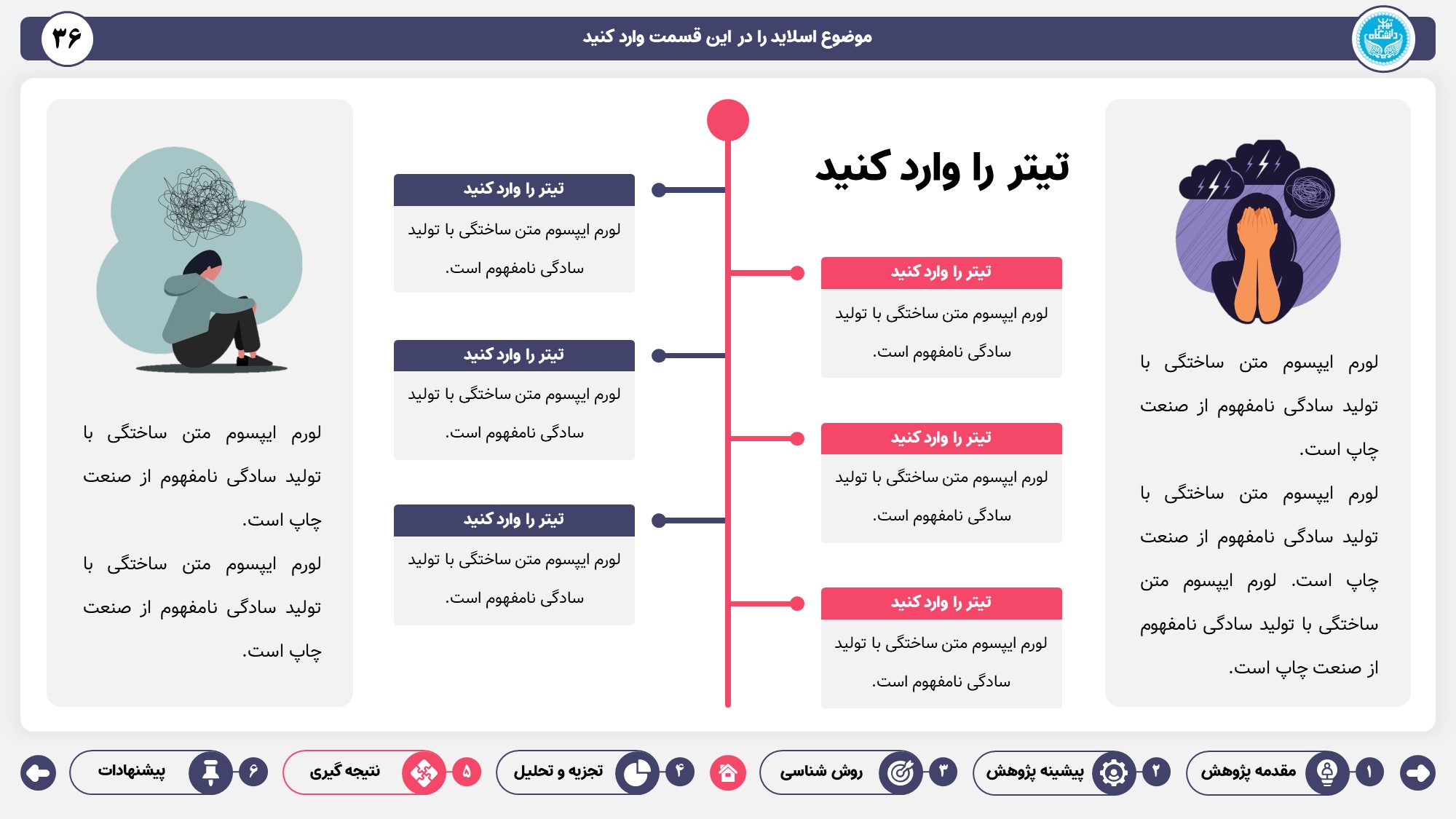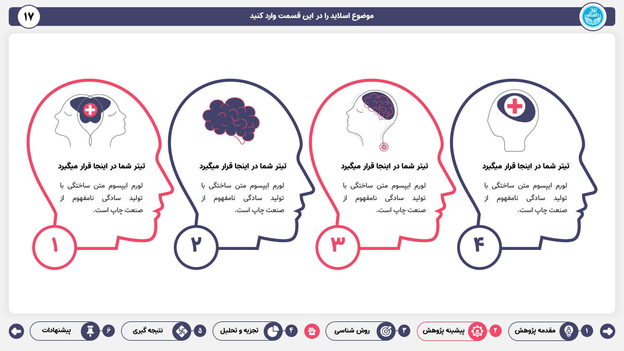 مناسب برای انواع ارائههای روانشناسی: با توجه به نوع طراحی این قالب، میتوانید از آن برای انواع ارائه های روانشناسی از جمله ارشد و دکتری و دانشگاهی استفاده کنید.