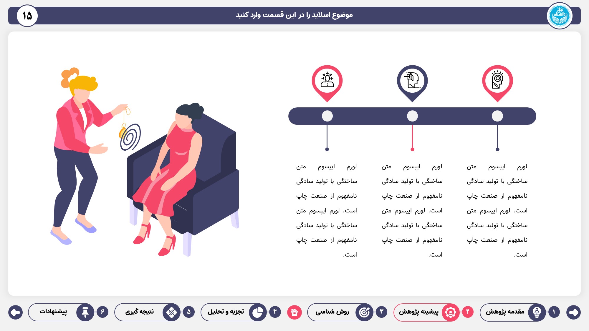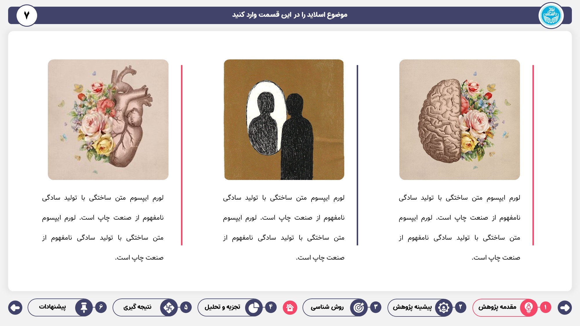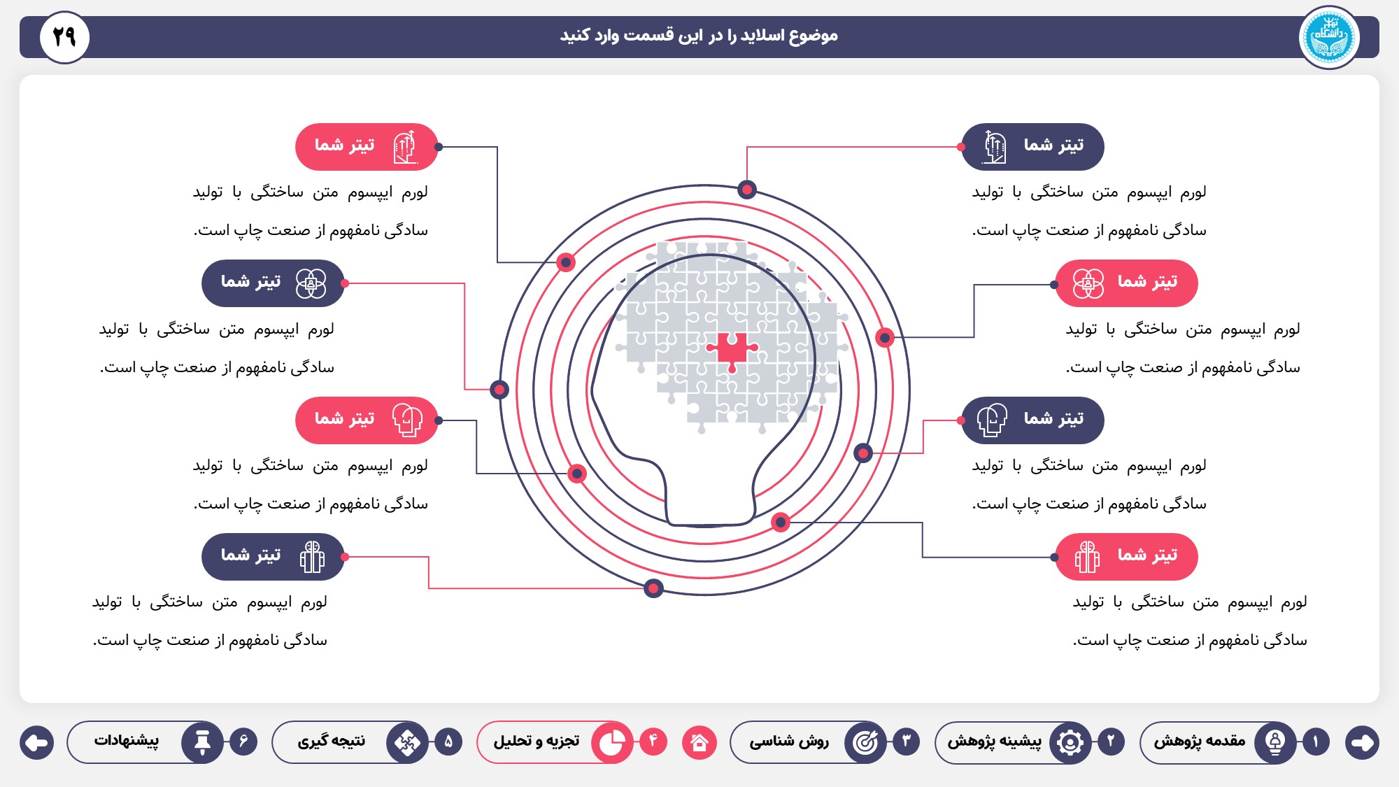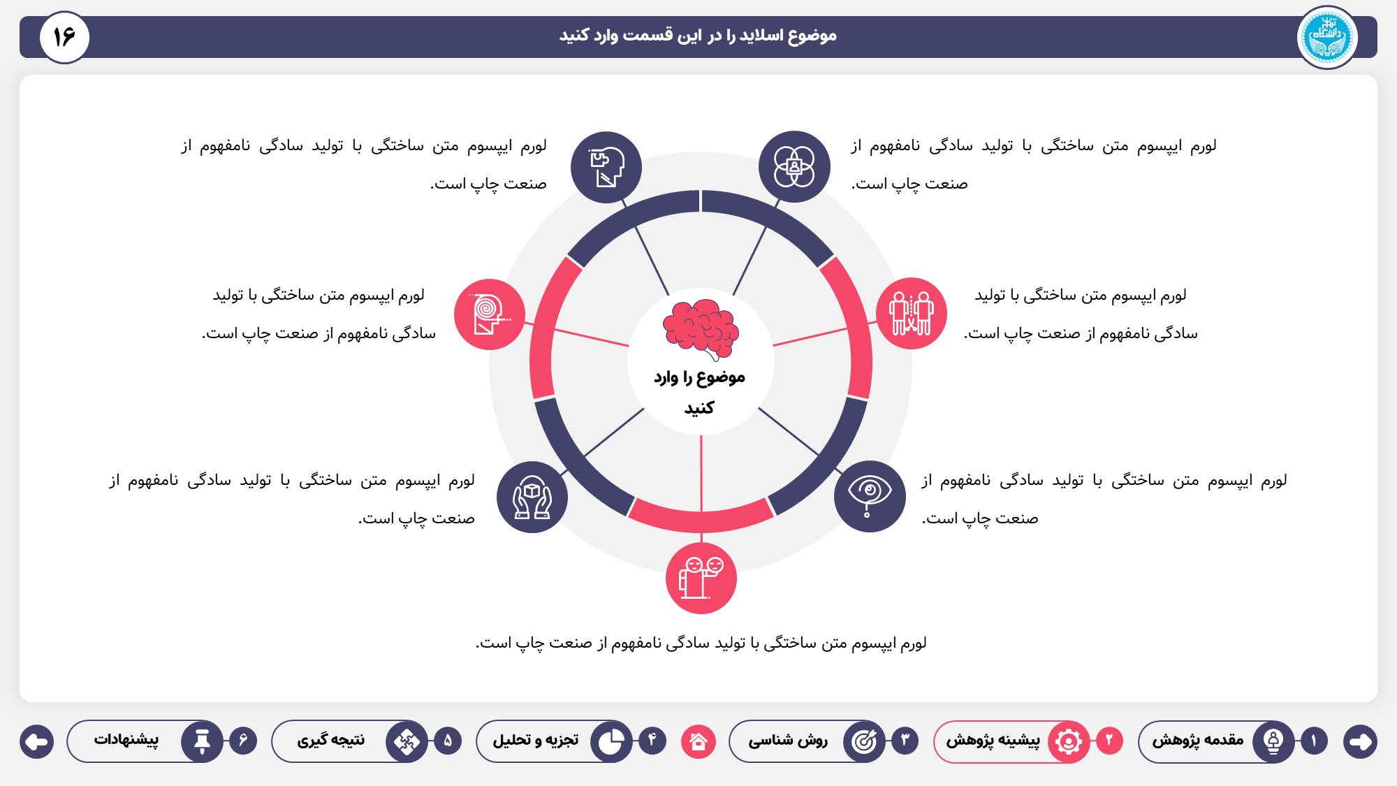 مناسب برای انواع ارائههای روانشناسی: با توجه به نوع طراحی این قالب، میتوانید از آن برای انواع ارائه های روانشناسی از جمله ارشد و دکتری و دانشگاهی استفاده کنید.