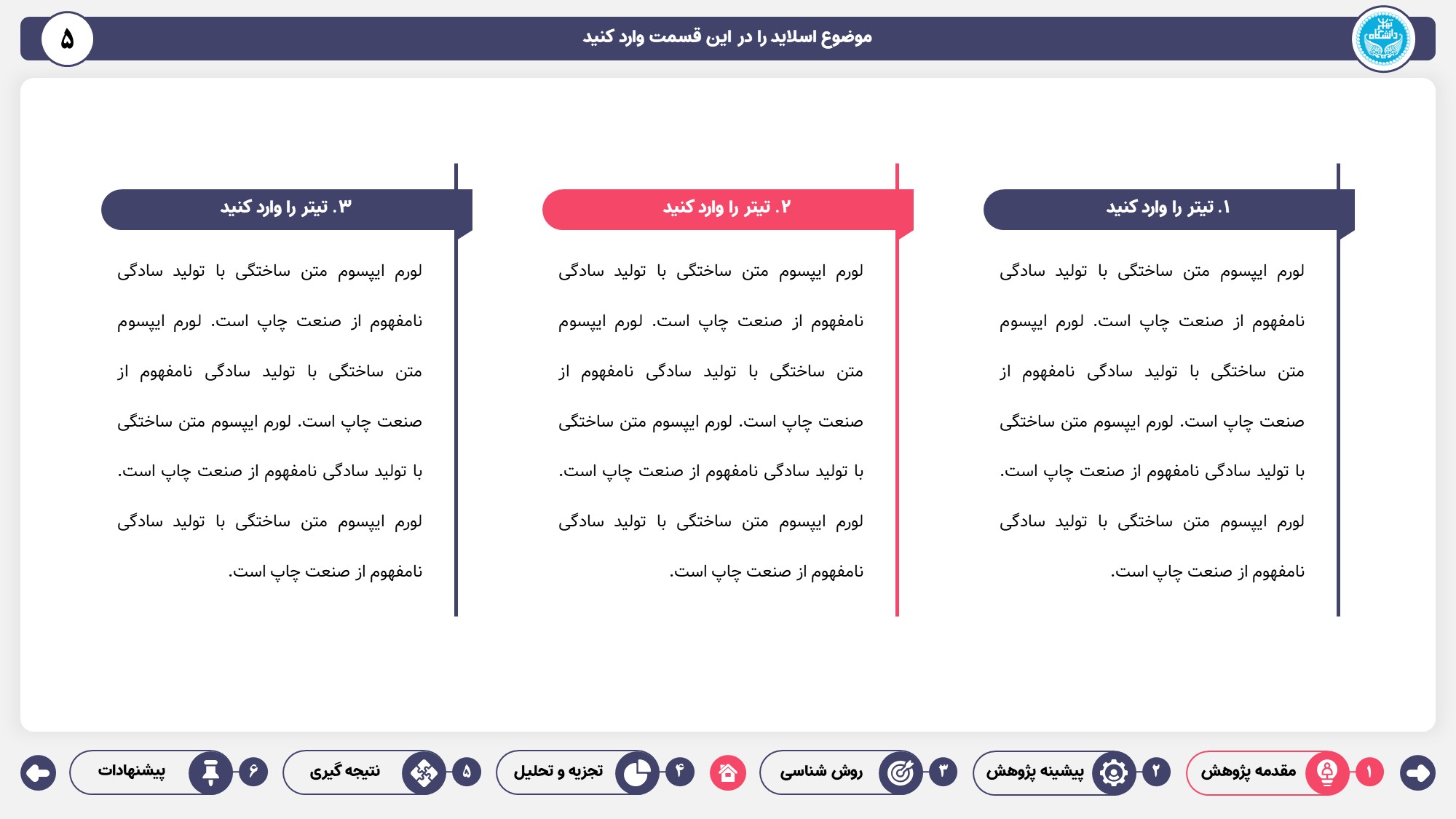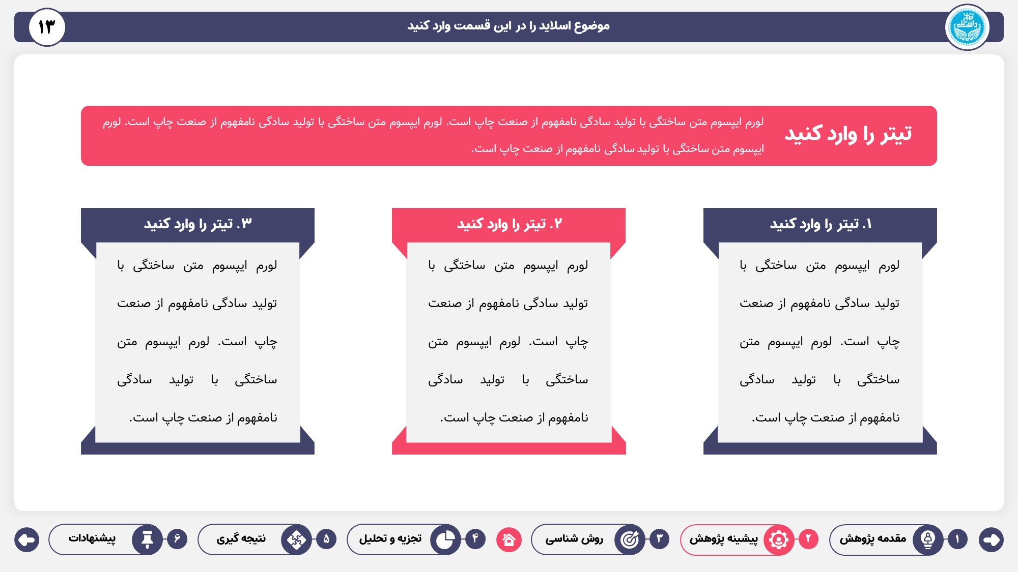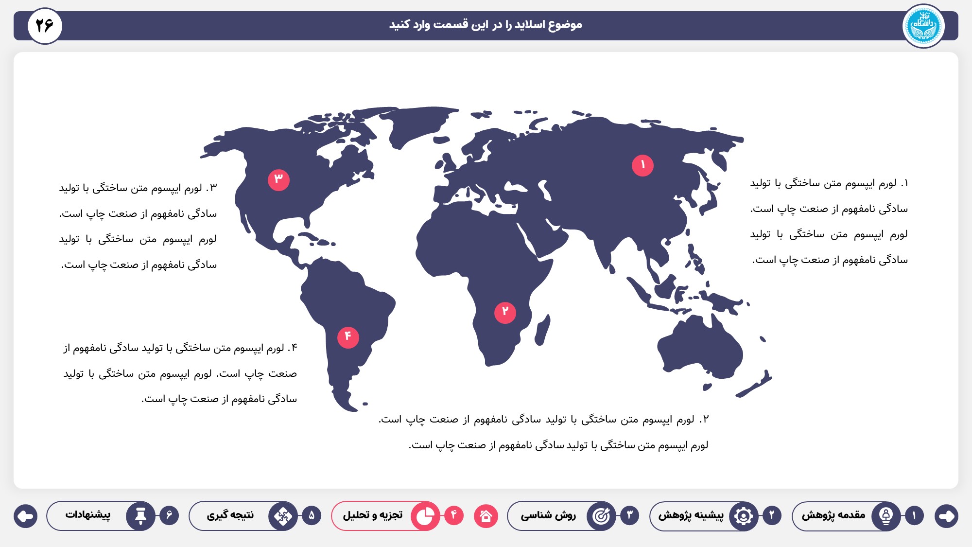 شماره گذاری اسلایدها: دارد. یعنی با اضافه یا کم کردن اسلایدها شماره گذاری به صورت خودکار تغییر پیدا میکند.