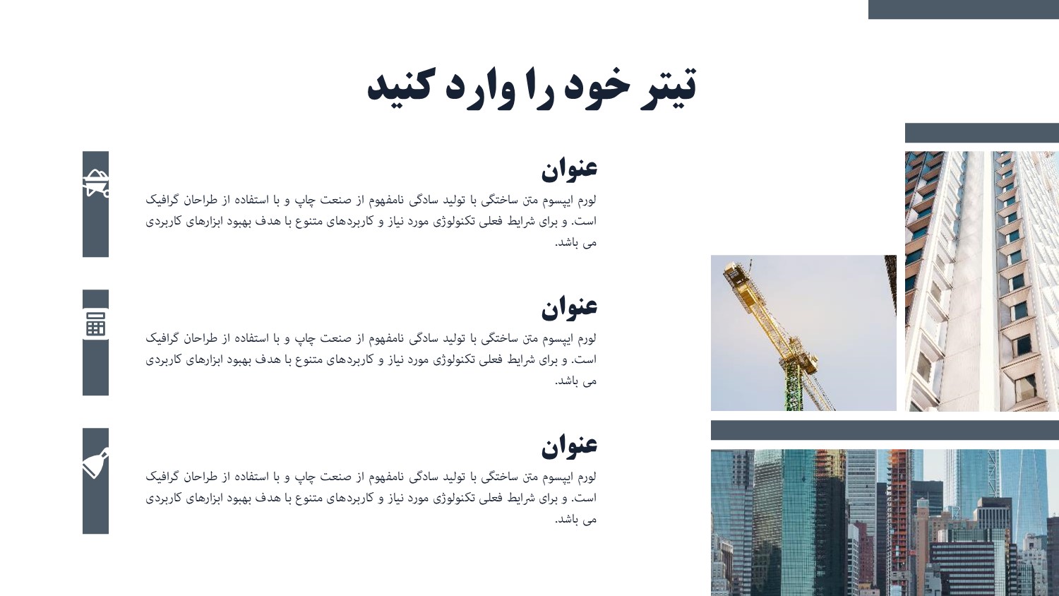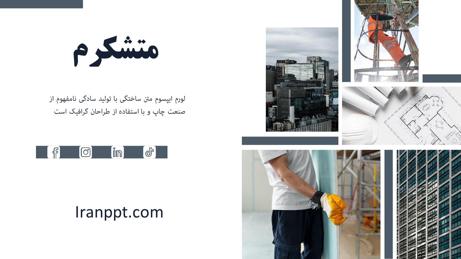 مناسب برای انواع ارائههای مهندسی شهرسازی و عمران: با توجه به نوع طراحی این قالب میتوانید برای انواع ارائه های مهندسی خصوصا مهندسی عمران و شهرسازی استفاده کنید.