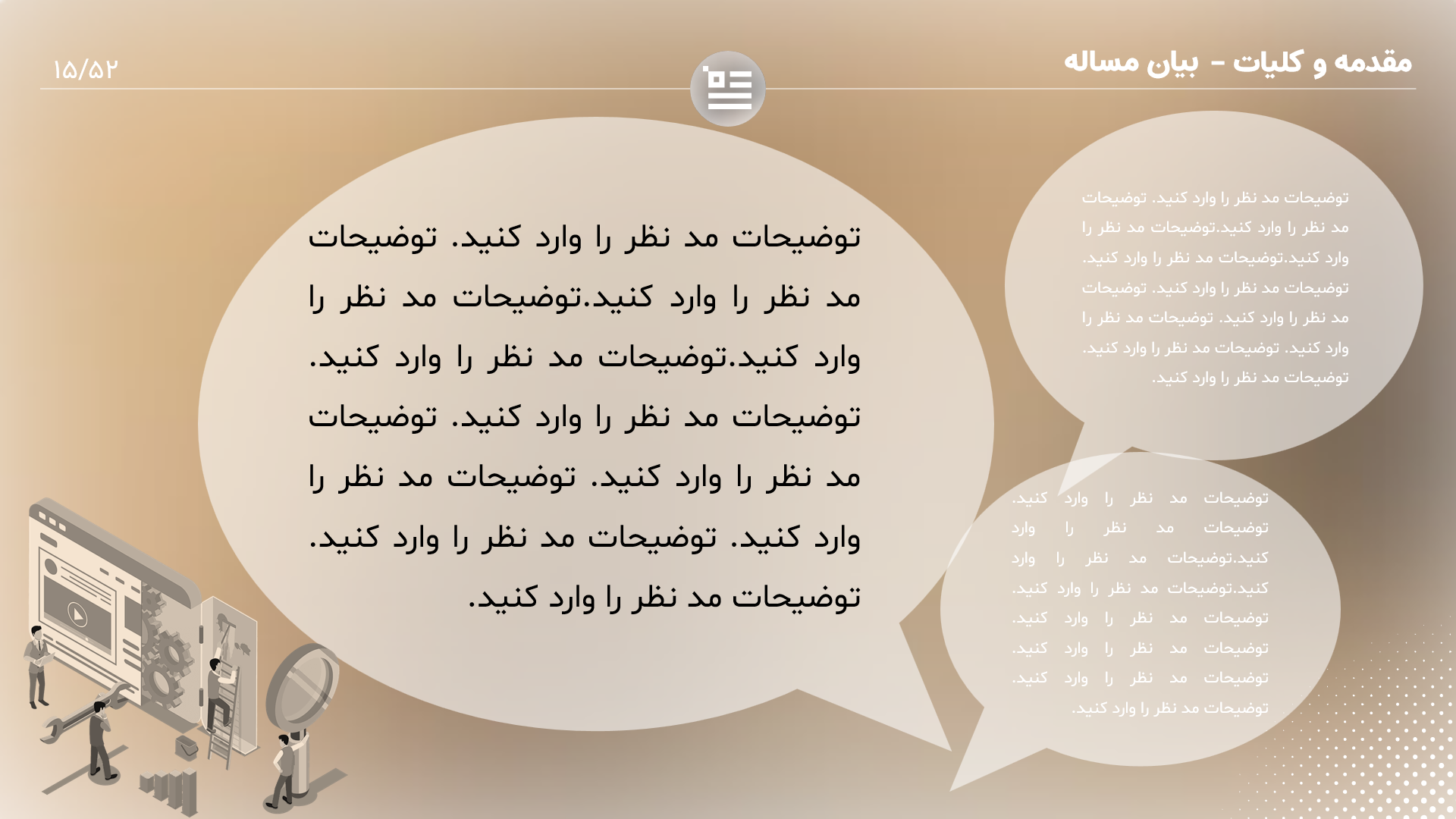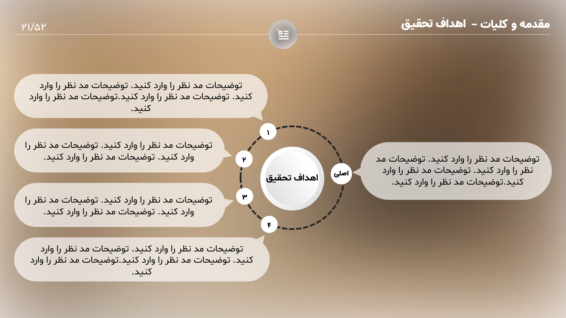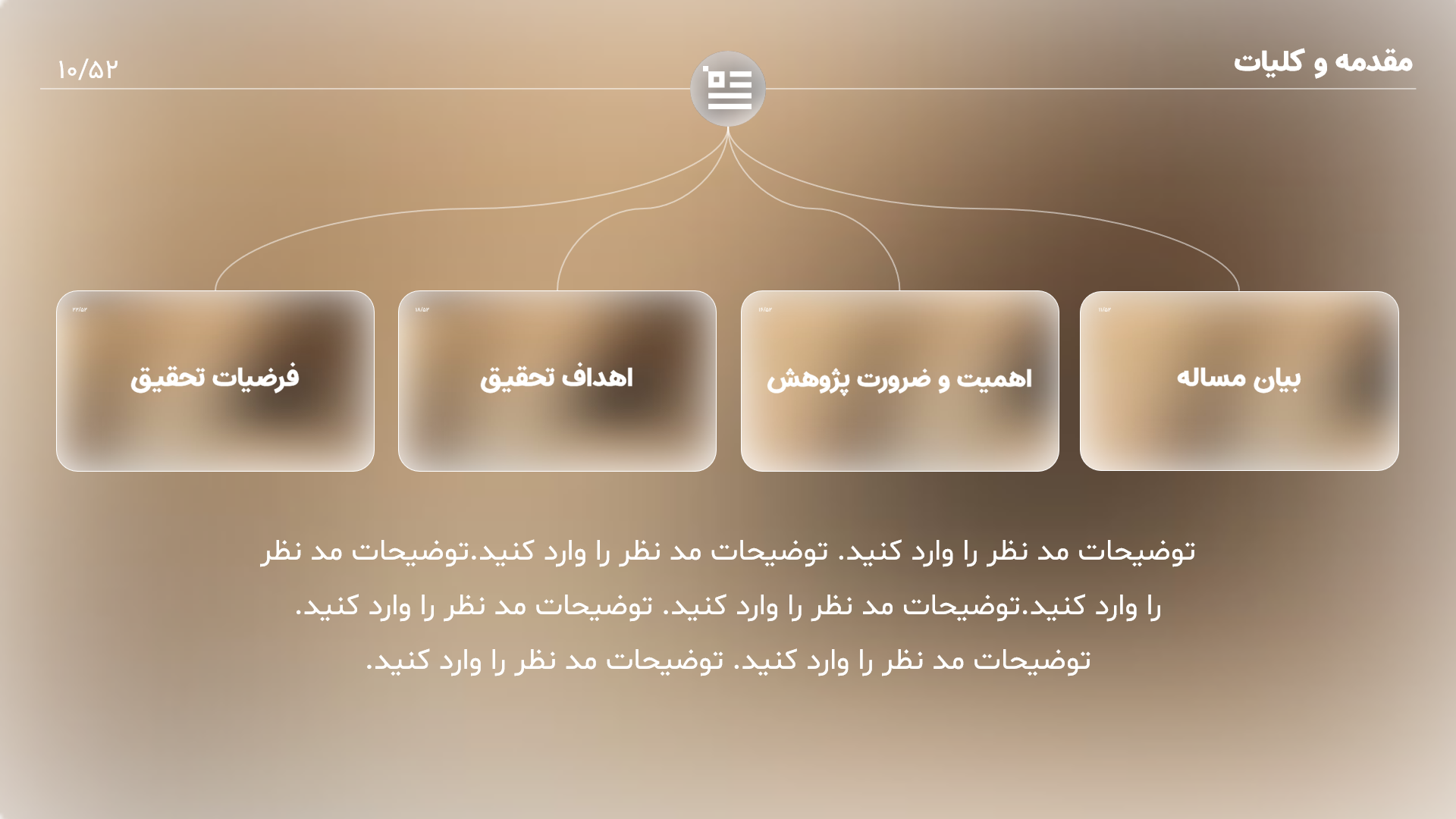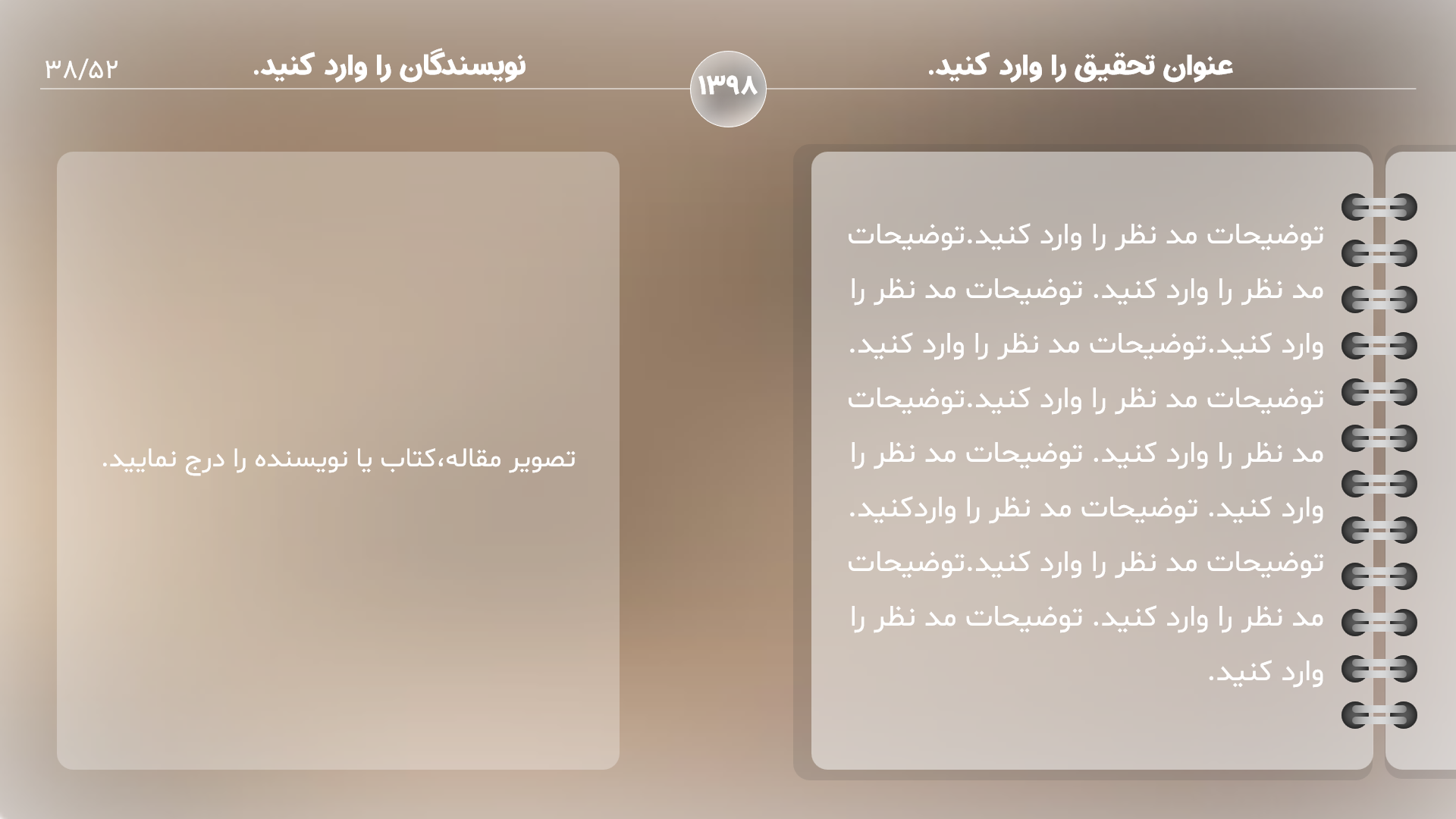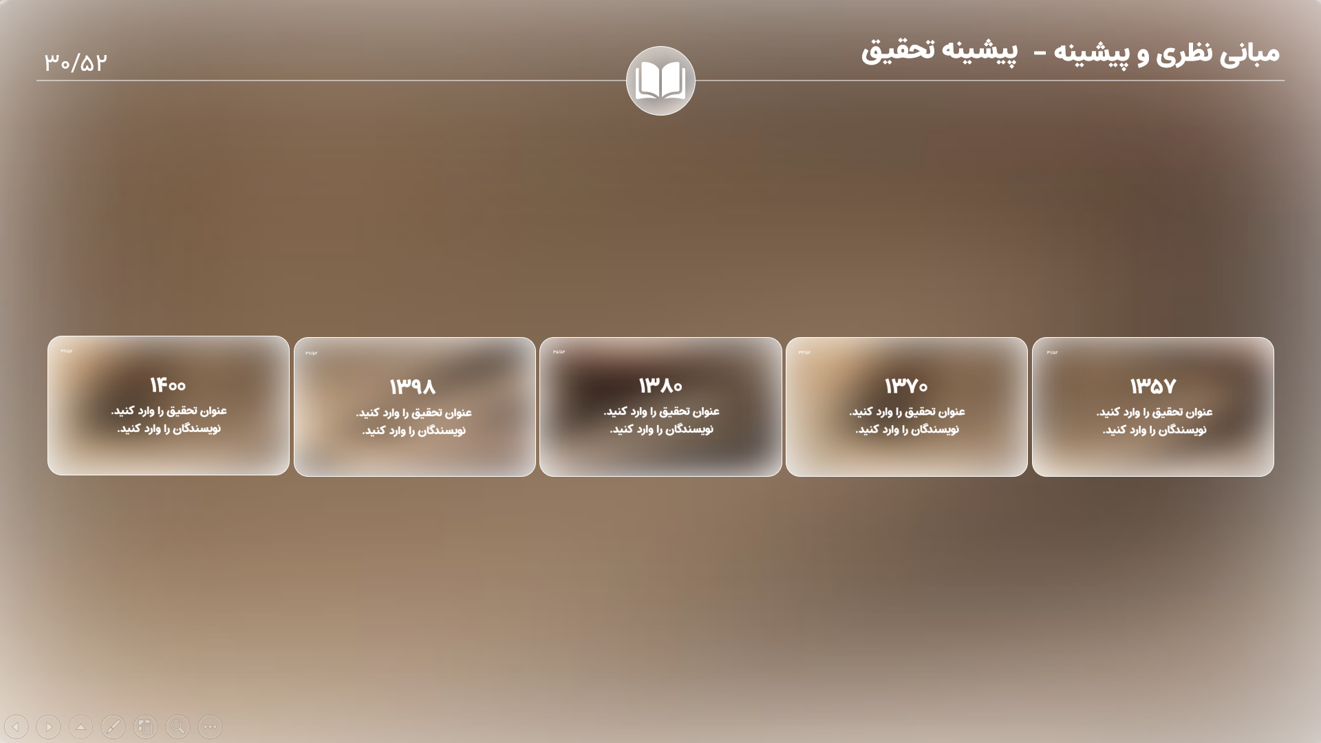 مناسب برای انواع ارائهها: با توجه به نوع طراحی این قالب، میتوانید از آن برای انواع ارائه ها از جمله پایان نامه و دانشگاهی و… در هر موضوعی استفاده کنید.