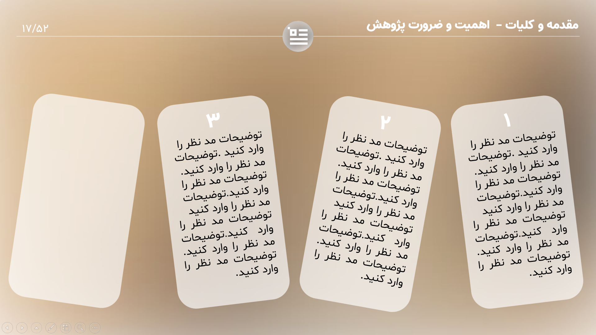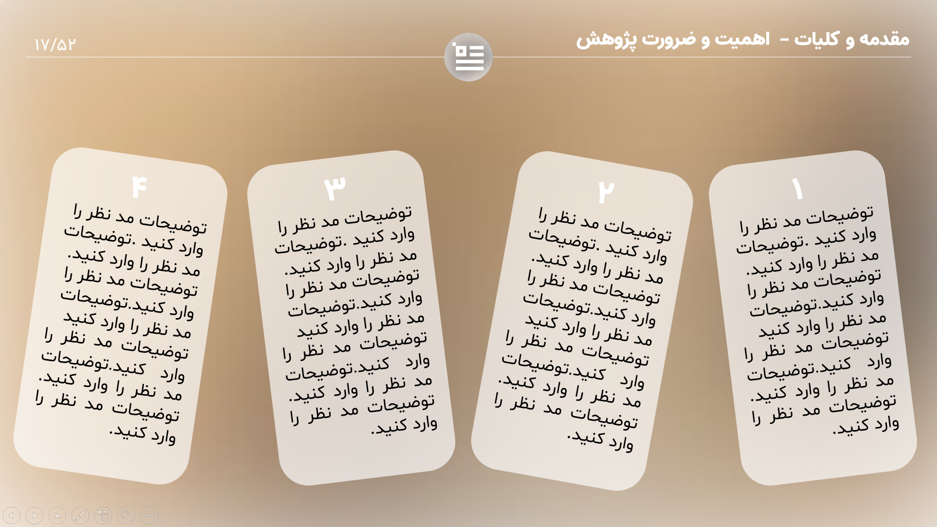 شماره گذاری اسلایدها: دارد. یعنی با اضافه یا کم کردن اسلایدها شماره گذاری به صورت خودکار تغییر پیدا میکند.