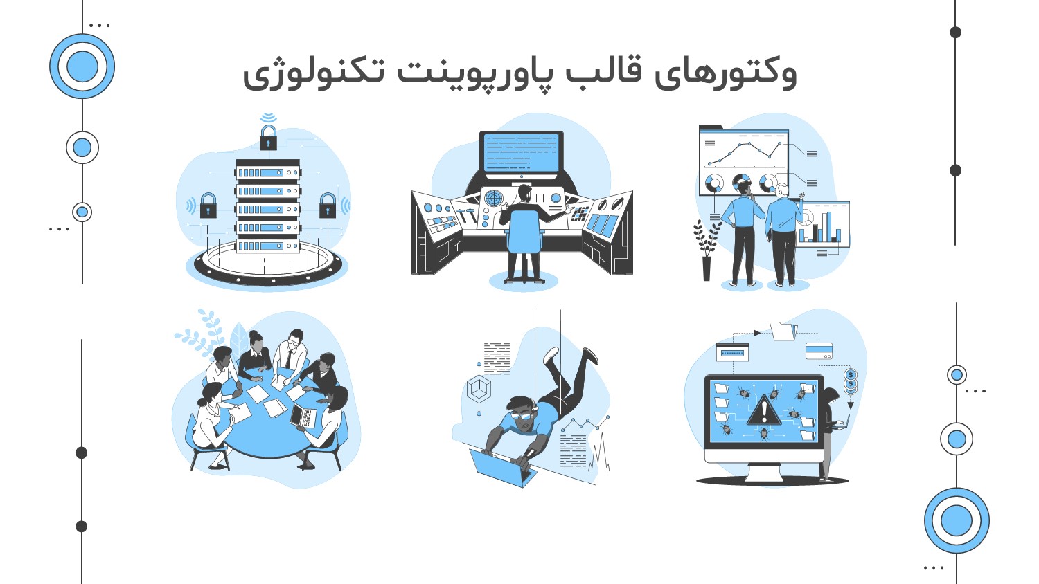 از این قالب پاورپوینت قابل ویرایش میتوانید در انواع موضوع های مهندسی مانند کامپیوتر، هوش مصنوعی، فناوری اطلاعات، تکنولوژی و… استفاده کنید. در طراحی این تم سعی شده است از وکتورهای متنوعی استفاده شود که به زیبایی آن اضافه میکند.
