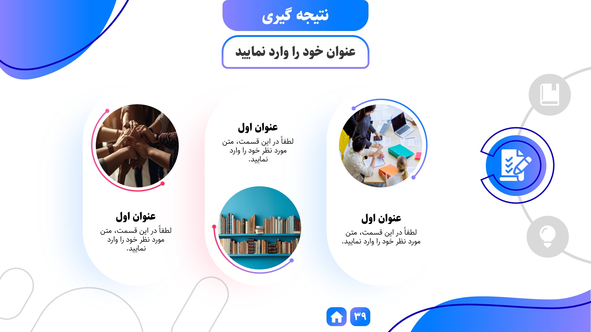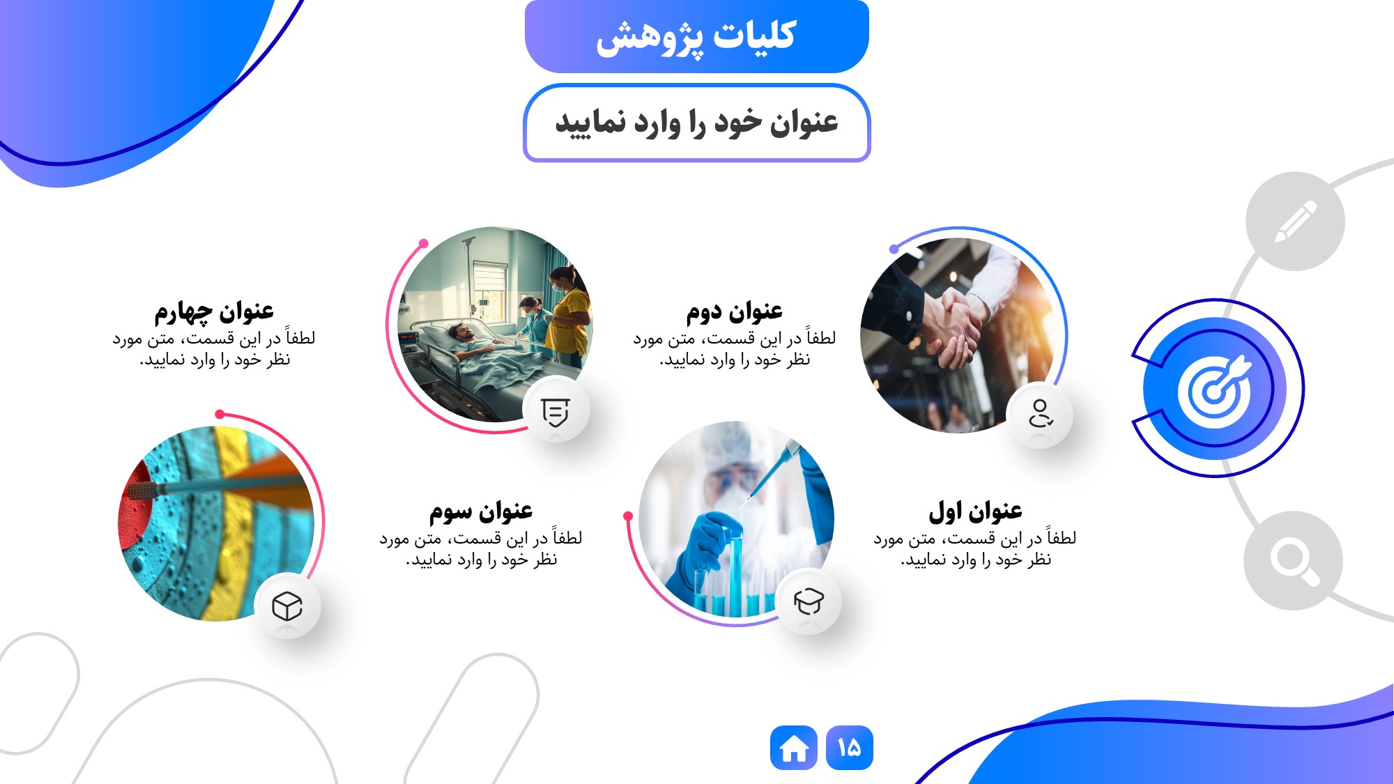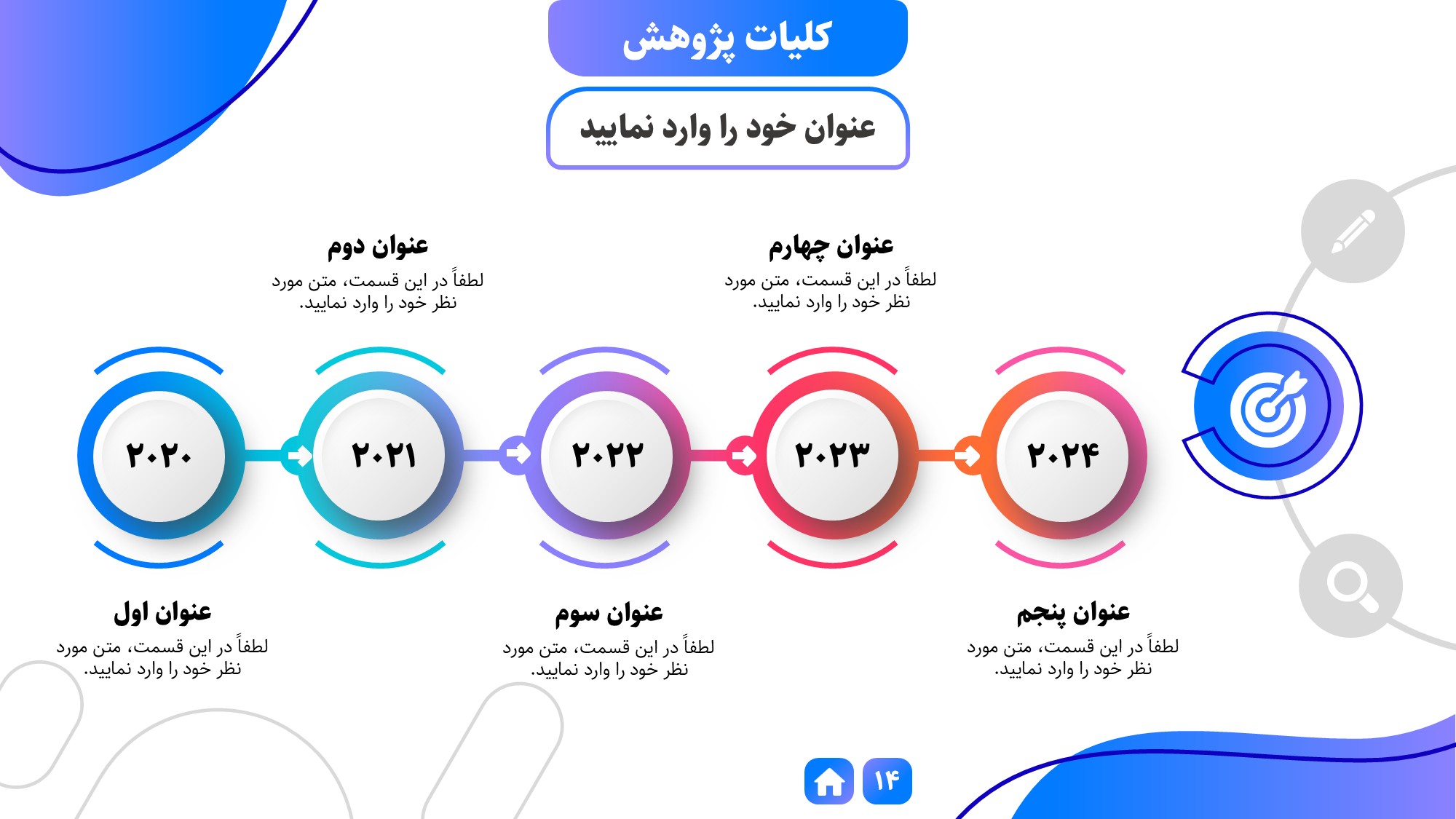 مناسب برای انواع ارائهها: با توجه به نوع طراحی این قالب، میتوانید از آن برای انواع ارائه های پایان نامه ارشد و دکتری، دانشگاهی و… در هر موضوعی استفاده کنید.