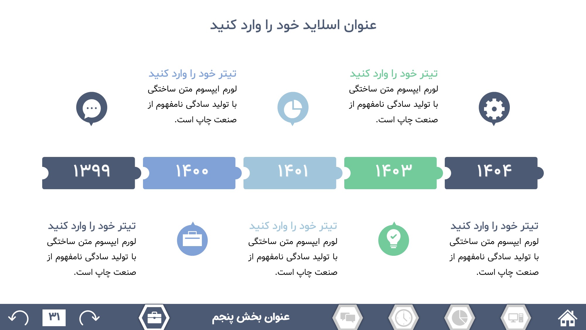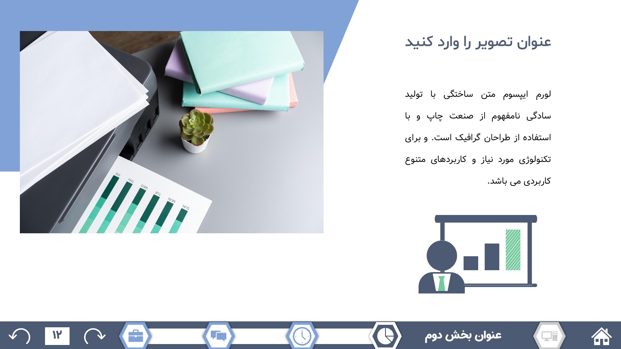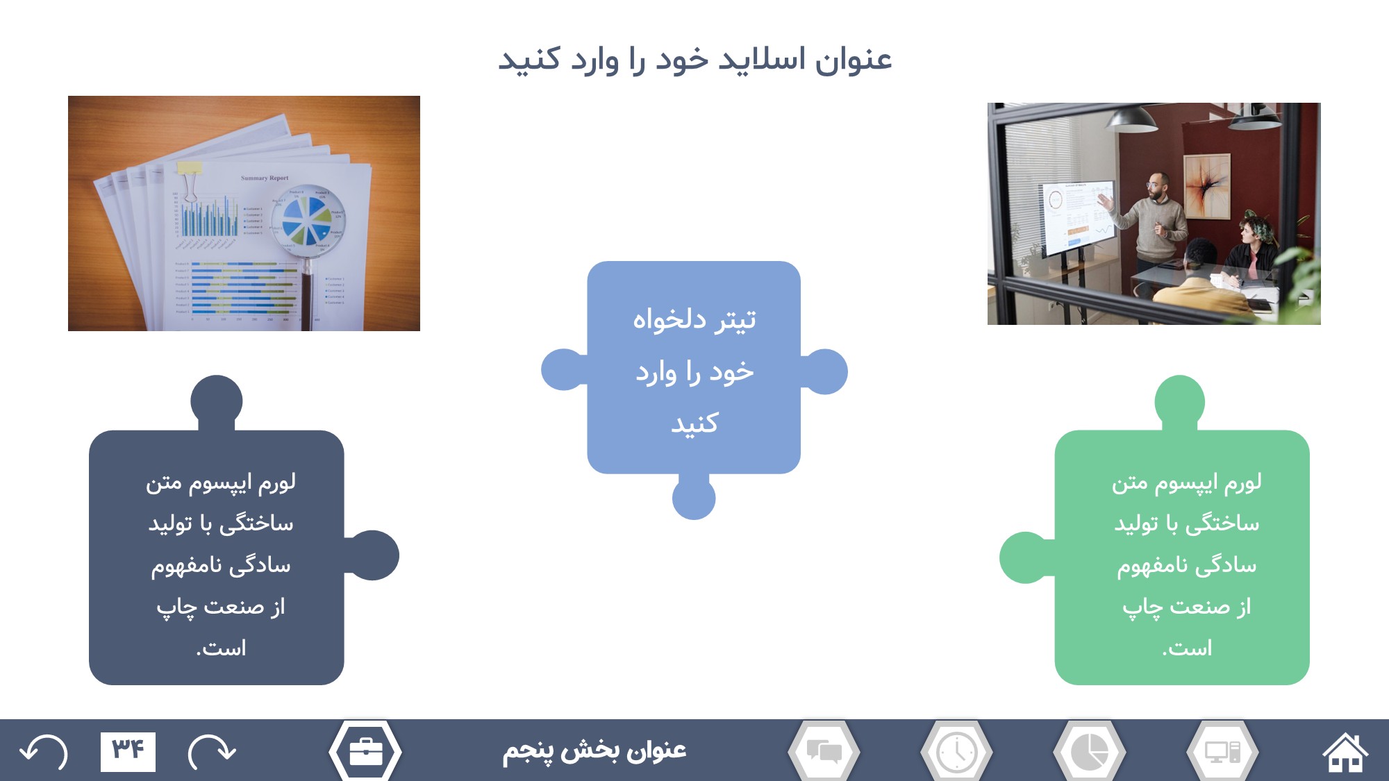 مناسب برای انواع ارائههای گزارشی: با توجه به نوع طراحی این قالب، میتوانید از آن برای انواع ارائه های گزارشی از جمله گزارش اداری و … استفاده کنید.