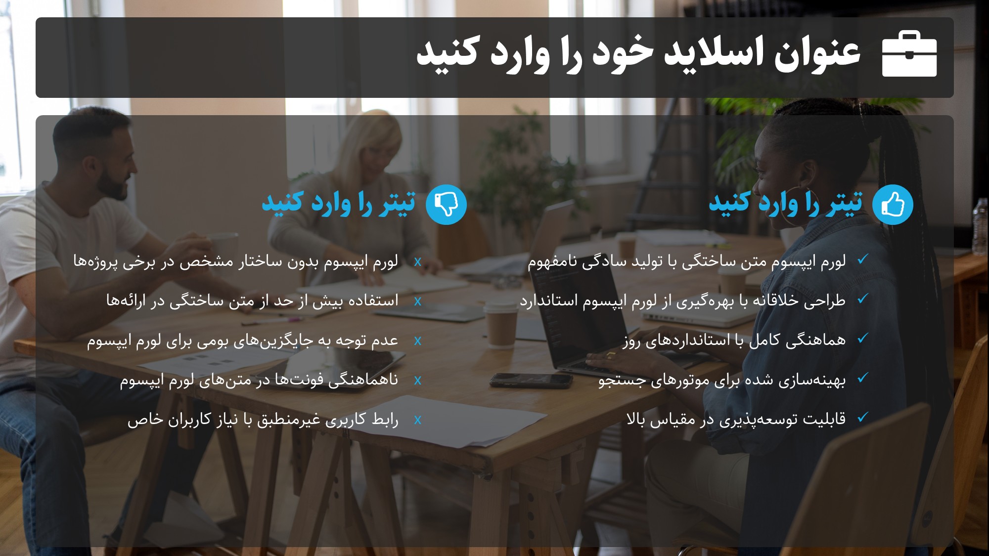 مناسب برای انواع ارائهها: با توجه به نوع طراحی این قالب، میتوانید از آن برای انواع ارائه های پایان نامه و پروپوزال ارشد و دکتری در موضوع های متفاوت استفاده کنید.