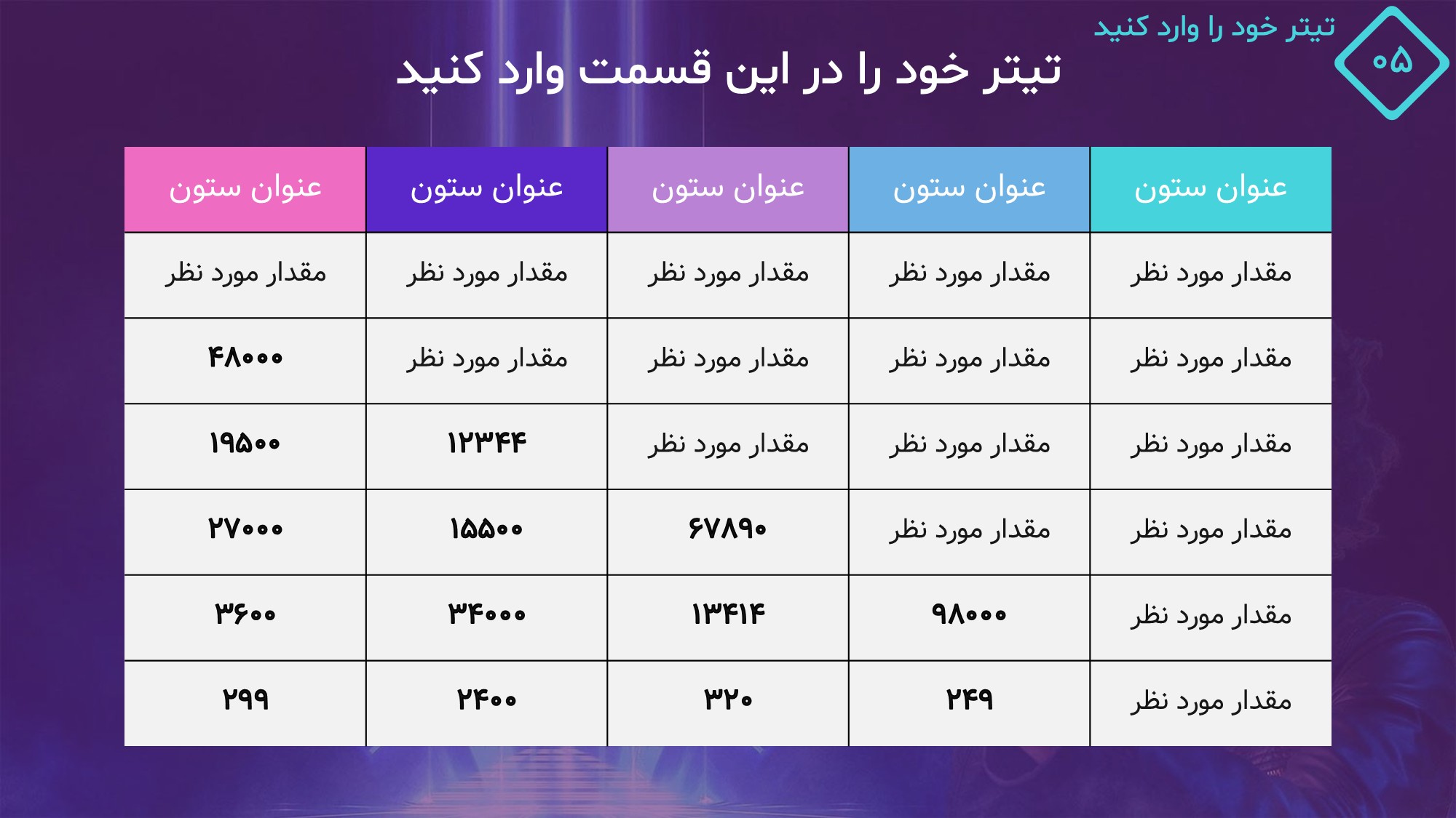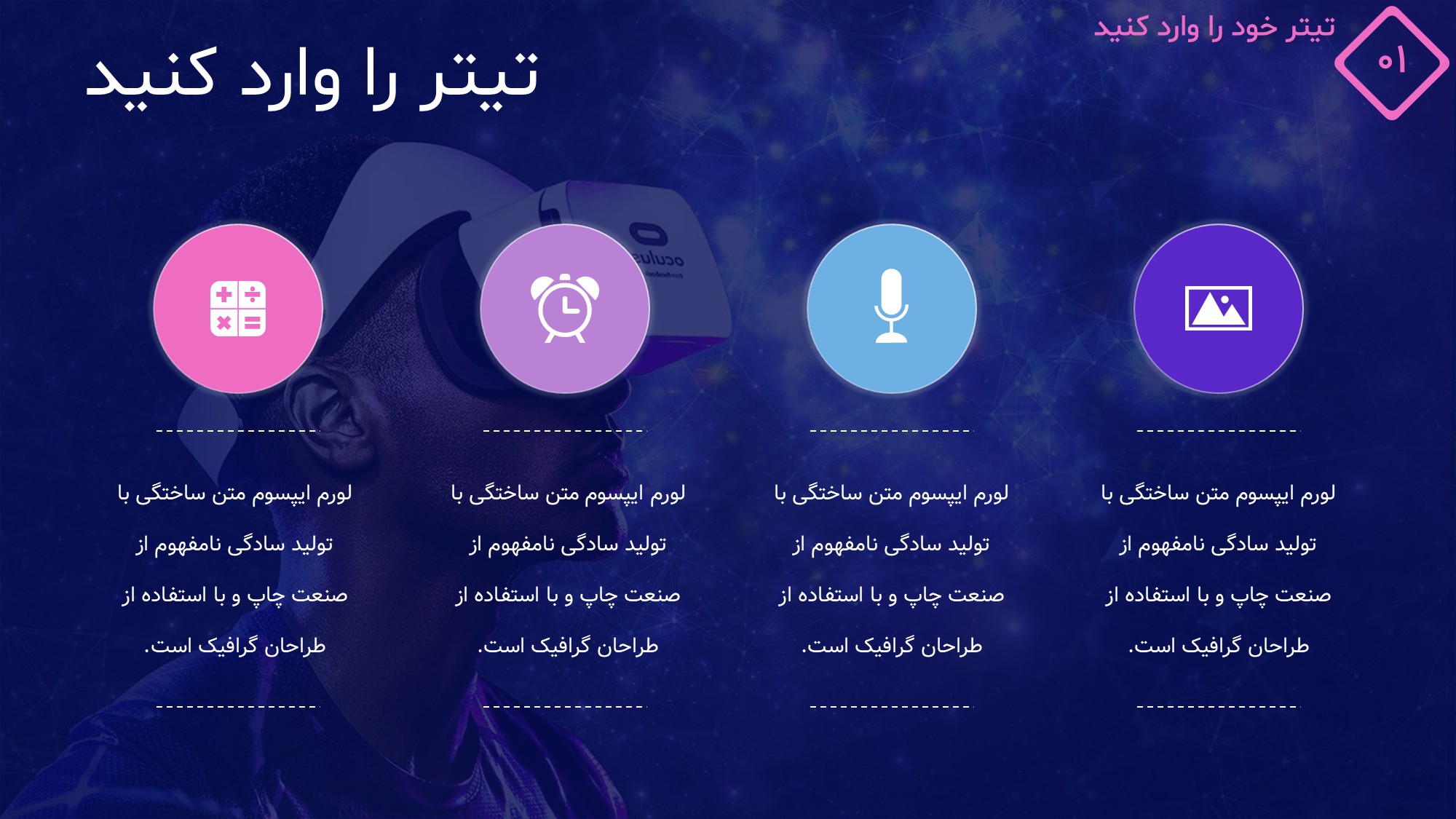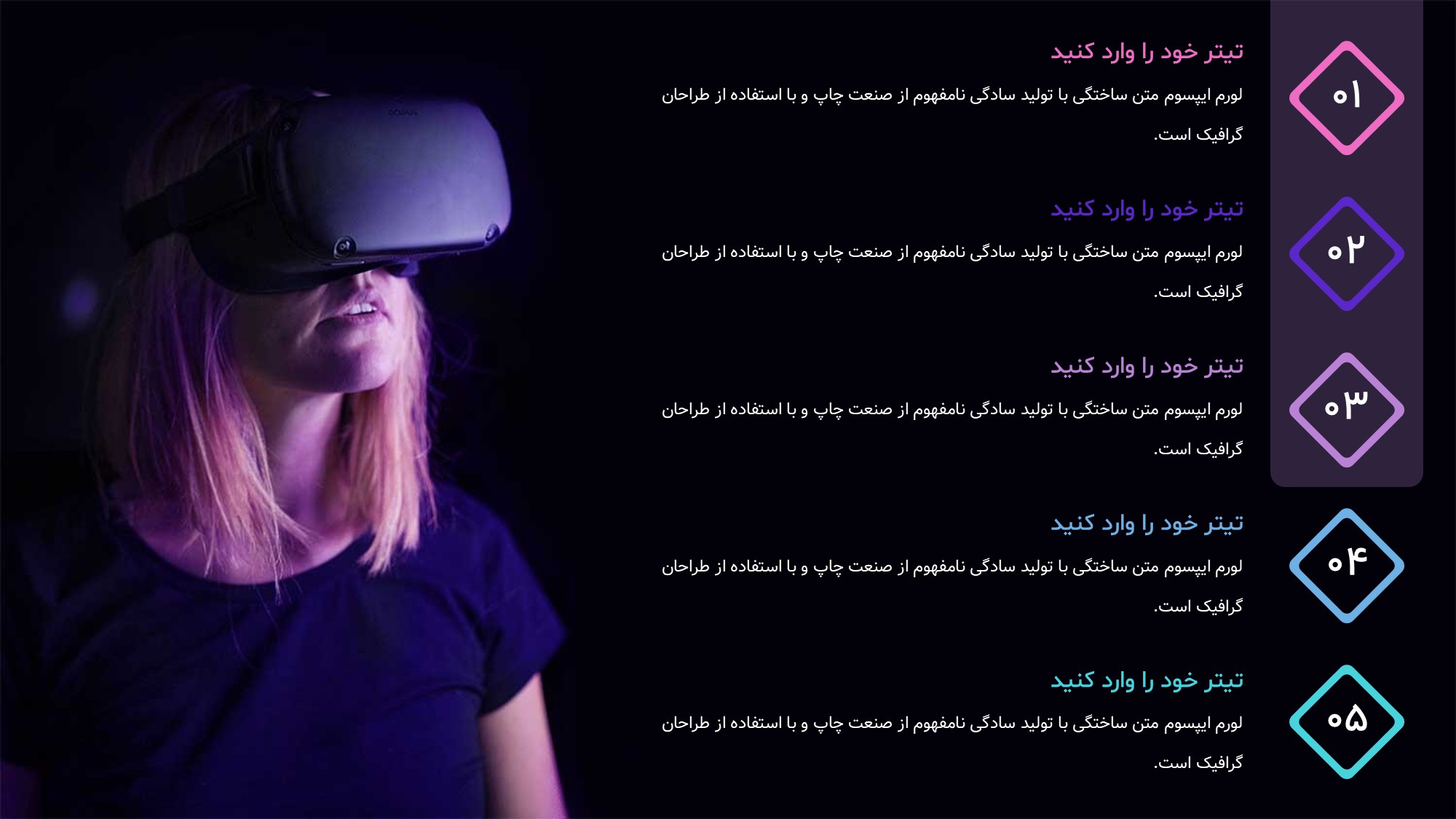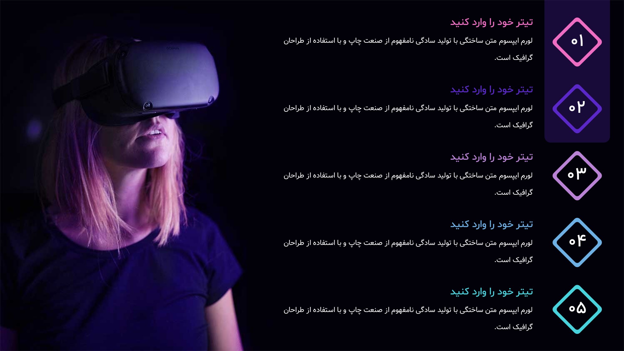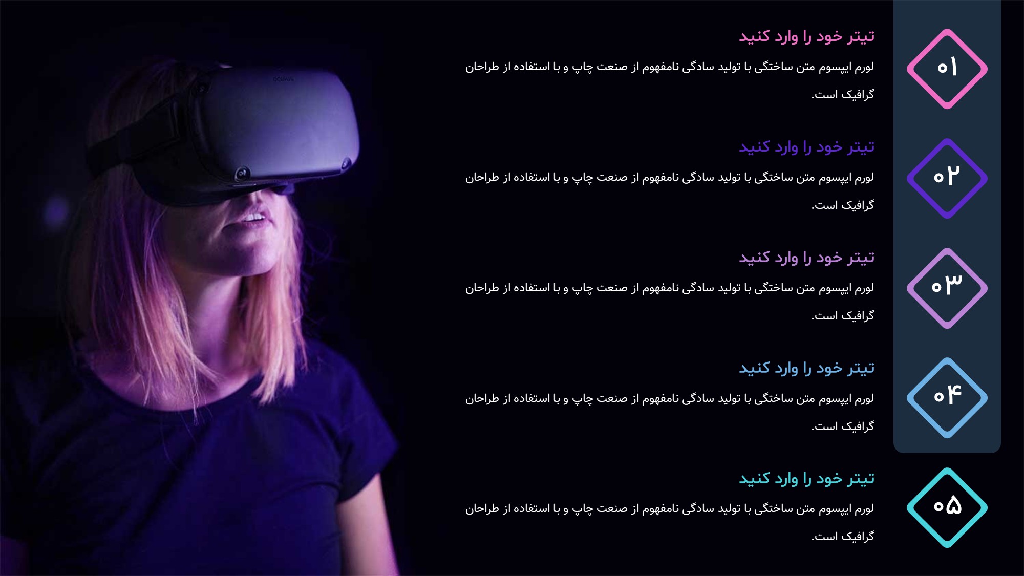 مناسب برای انواع ارائههای تکنولوژی: با توجه به نوع طراحی این قالب، میتوانید از آن برای انواع ارائه های پایان نامه و پروپوزال ارشد و دکتری در موضوع های فناوری و تکنولوژی استفاده کنید.