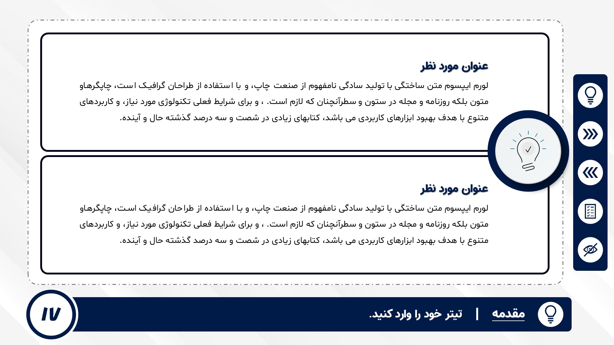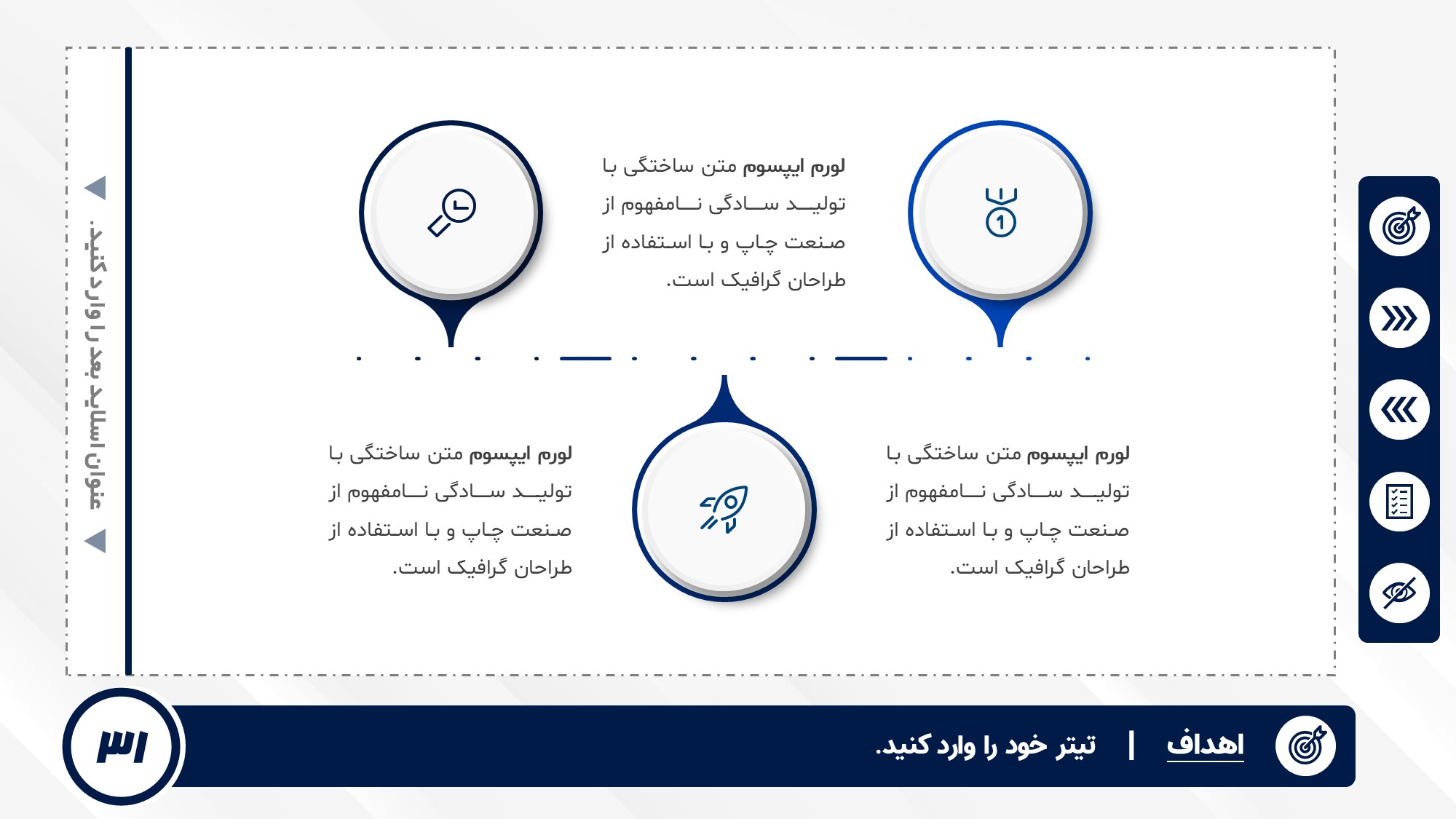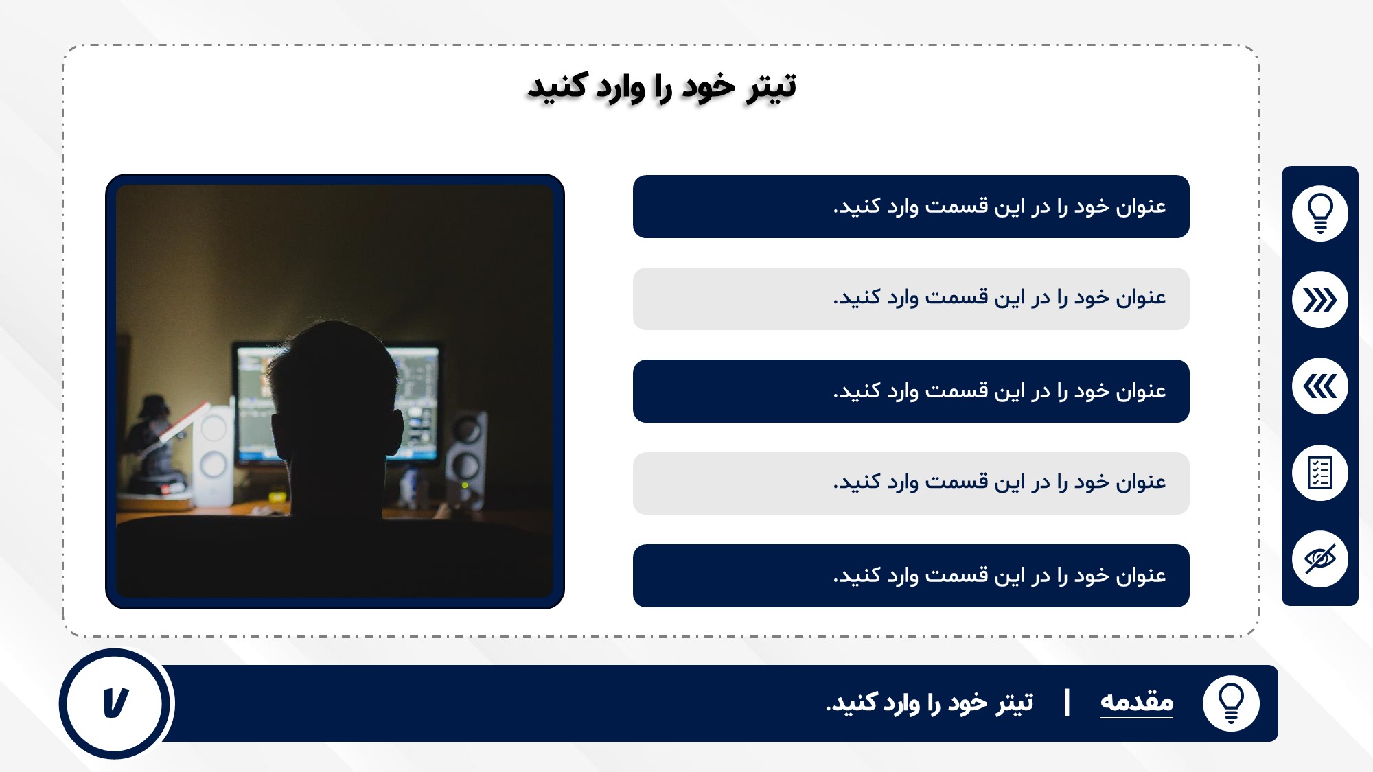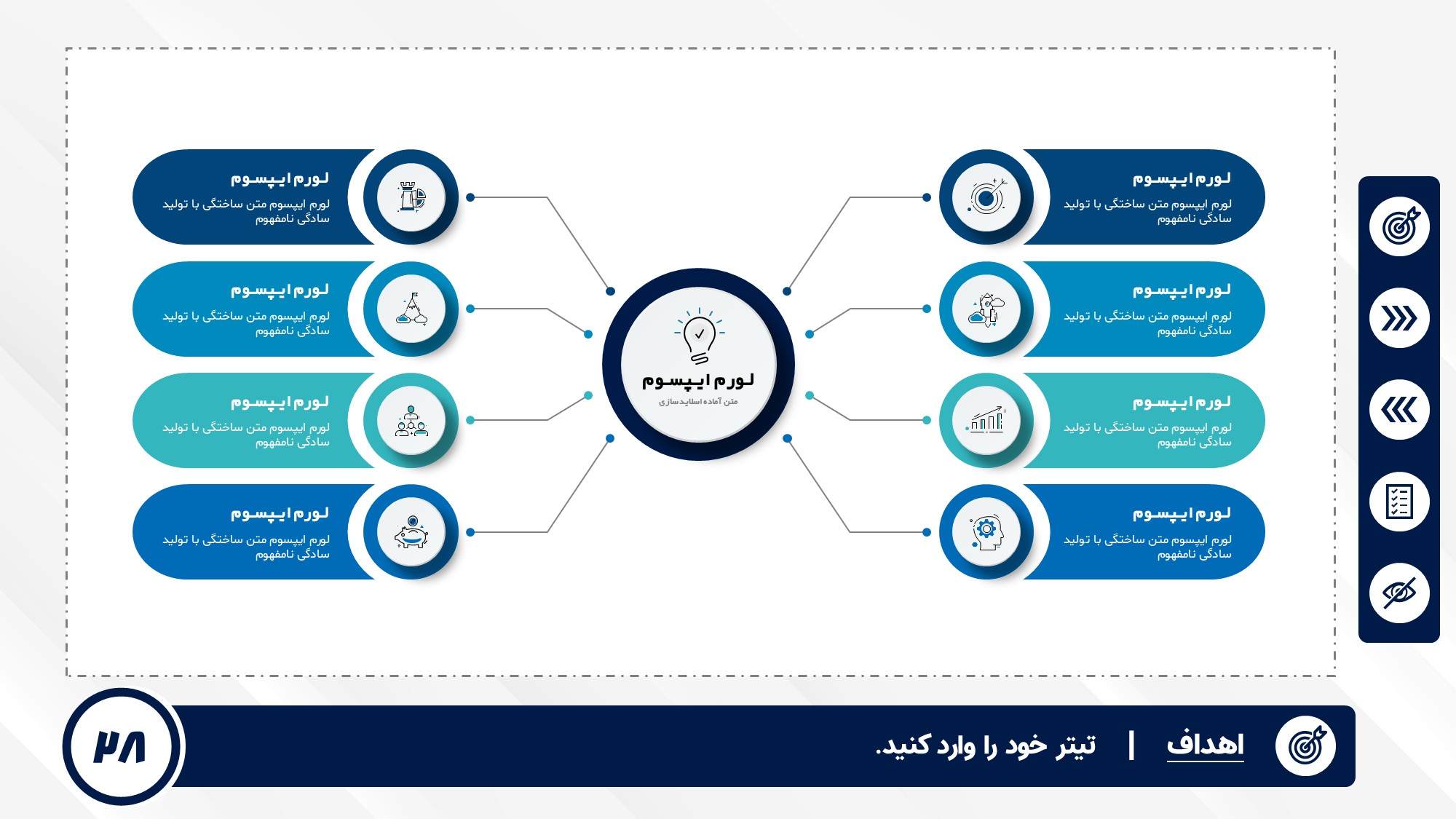 قابلیت تغییر آیکن: دارد. تمامی آیکن های منو و المان های استفاده شده در اسلایدها را میتوانید تغییر دهید.