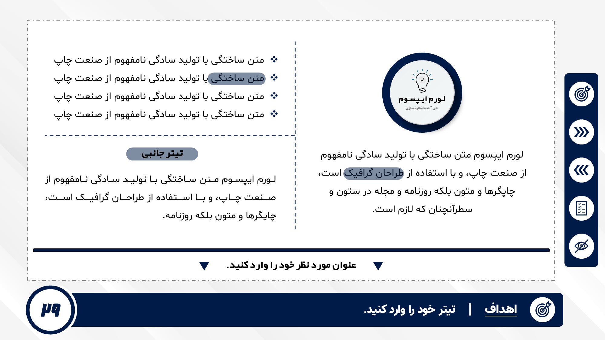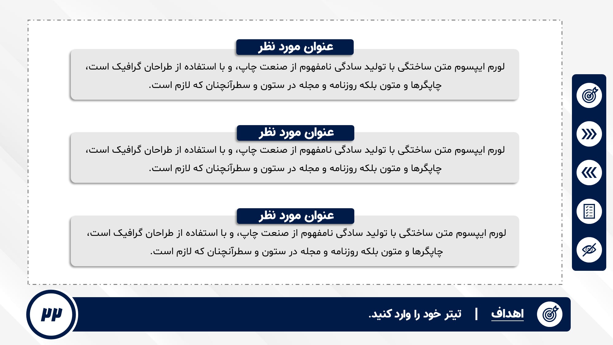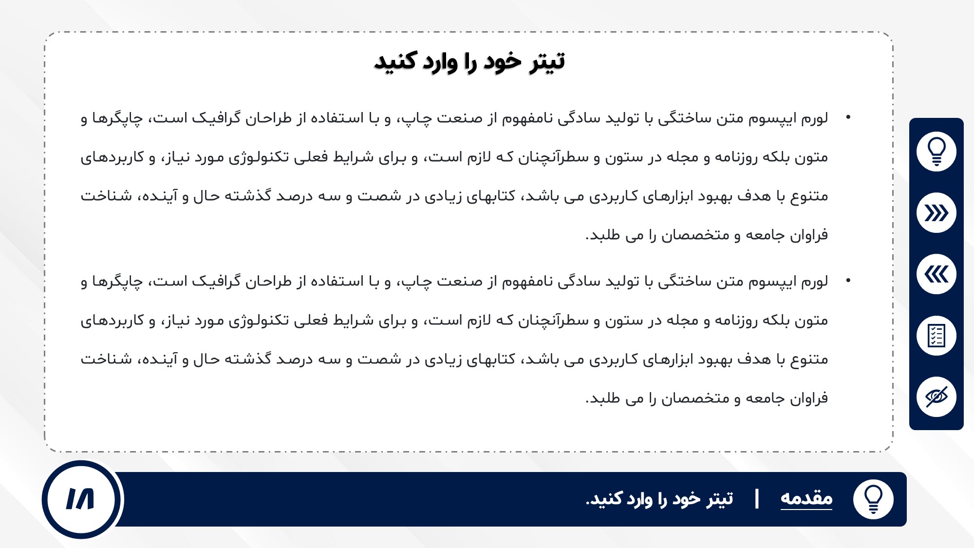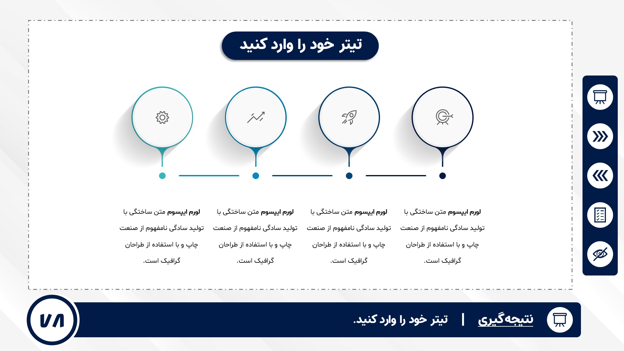 قابلیت تغییر آیکن: دارد. تمامی آیکن های منو و المان های استفاده شده در اسلایدها را میتوانید تغییر دهید.