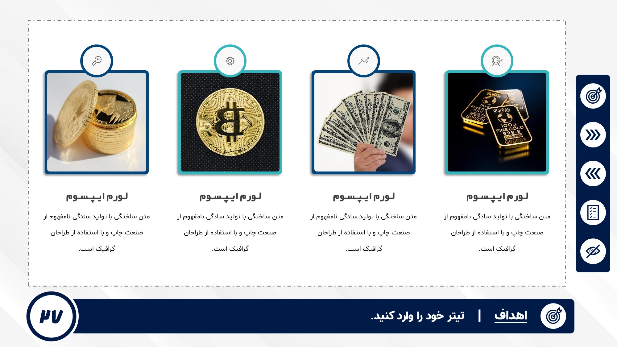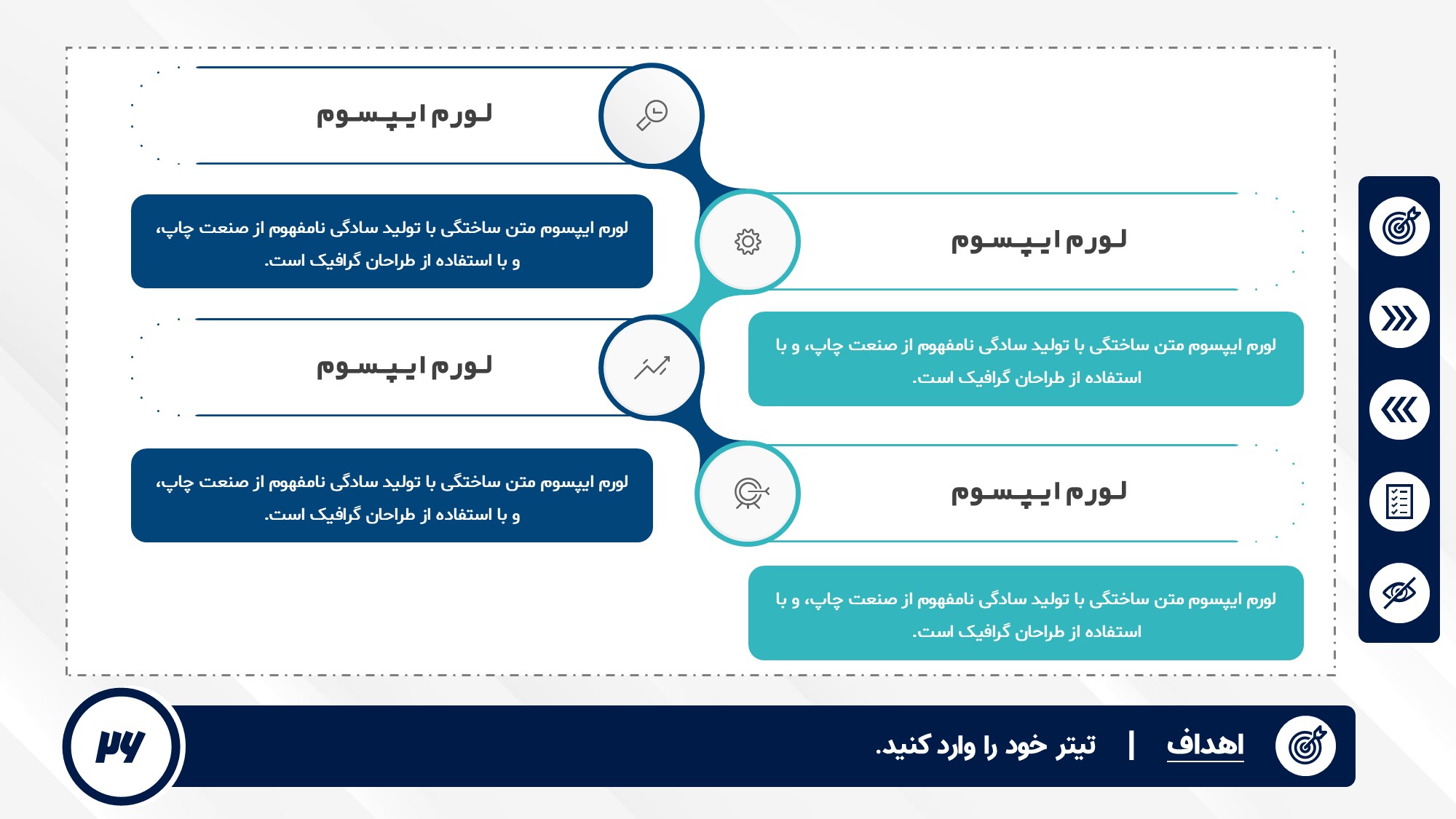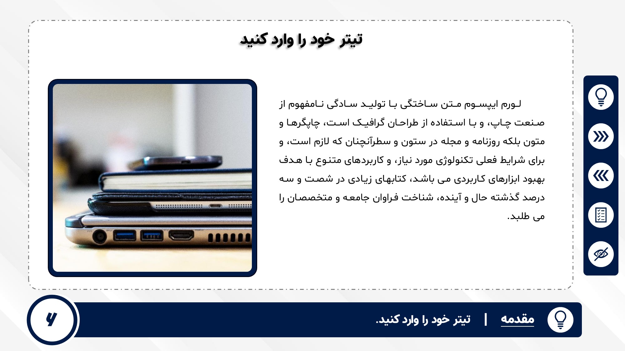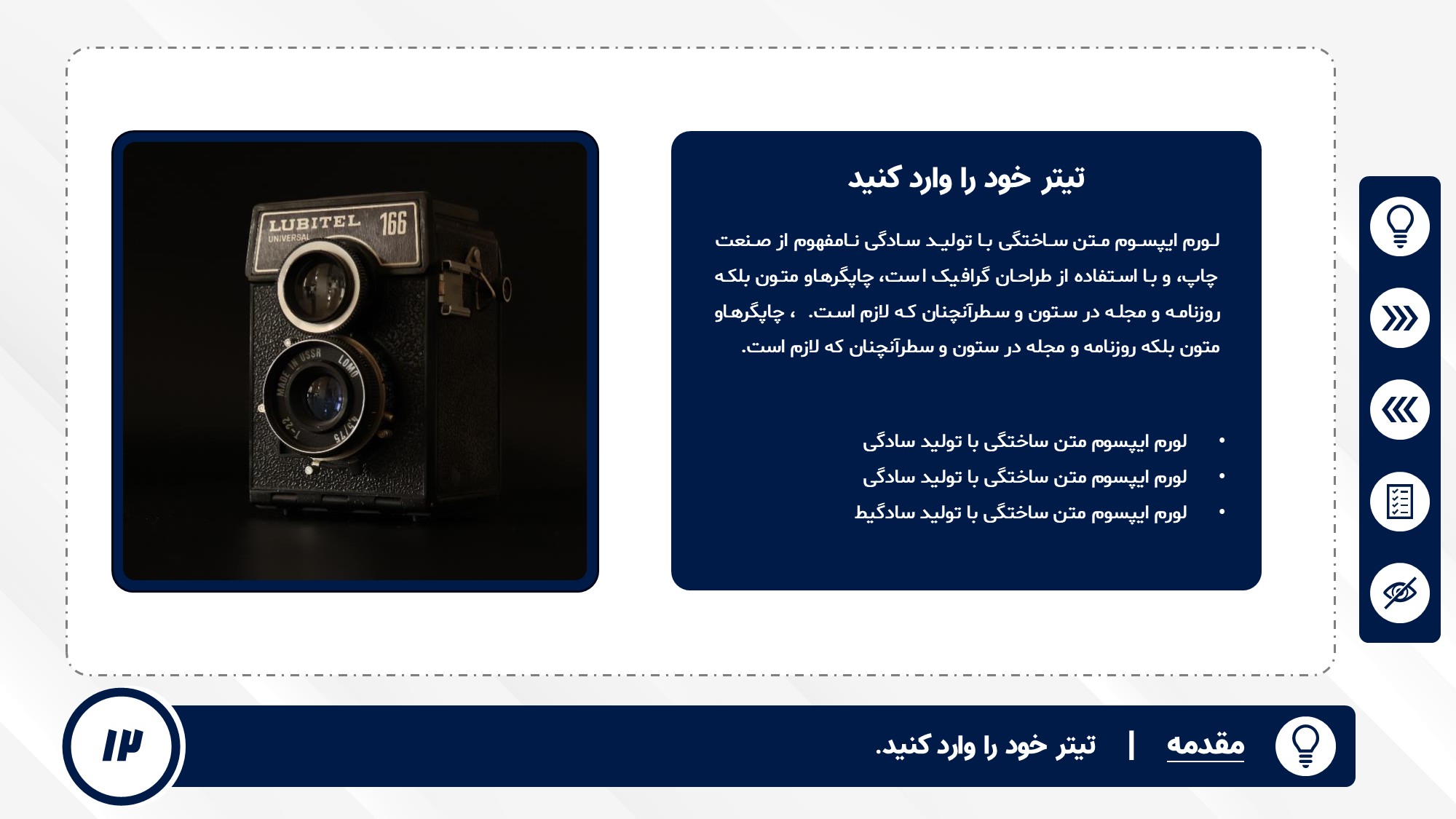 قابلیت تغییر آیکن: دارد. تمامی آیکن های منو و المان های استفاده شده در اسلایدها را میتوانید تغییر دهید.