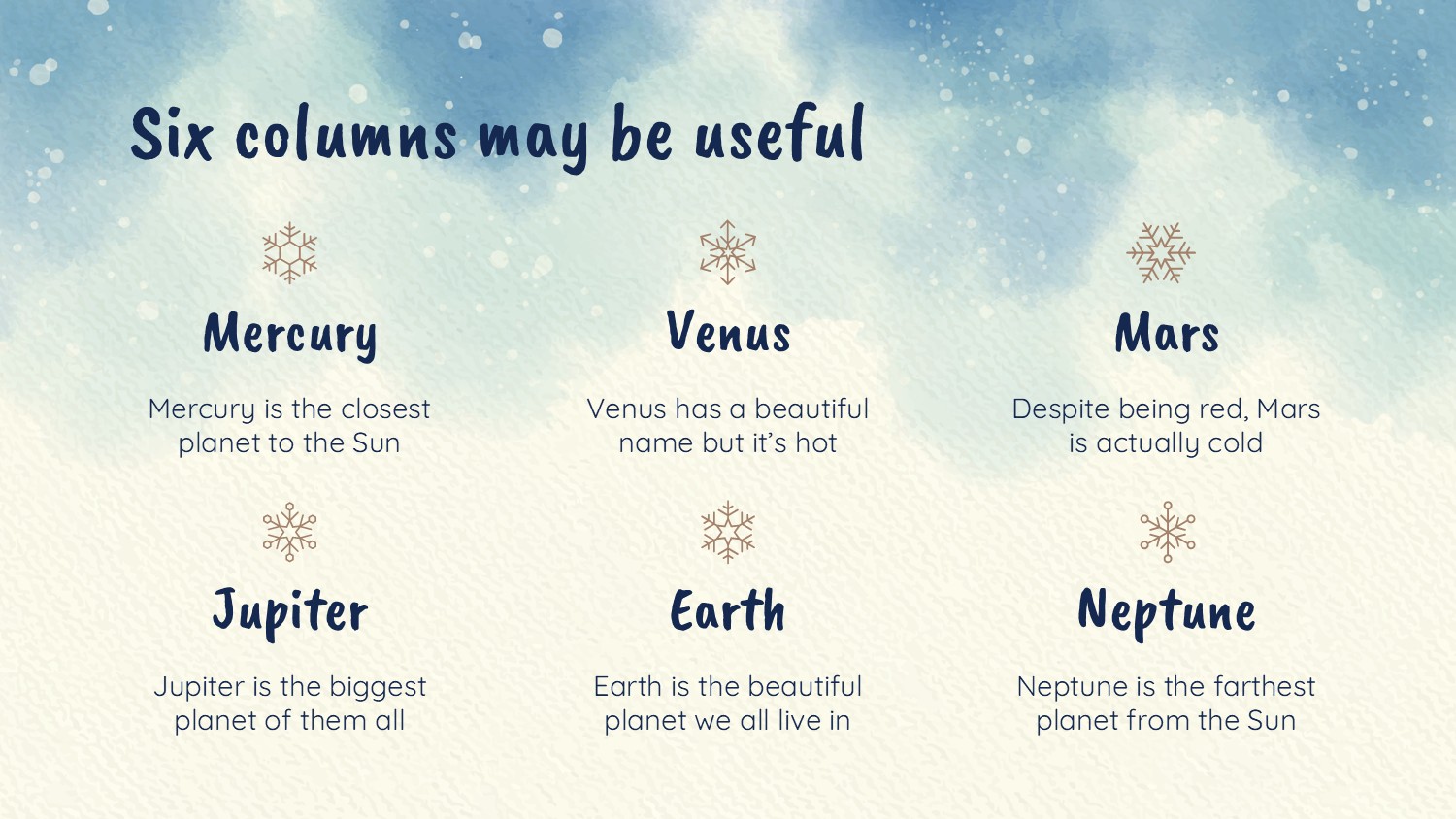 این تمپلیت در 16 اسلاید زیبا به صورت کاملا قابل ویرایش و شخصی سازی طراحی شده که شما میتوانید در انواع ارائه های انگلیسی از آن استفاده کنید. موضوع طراحی این قالب، مناسبتی و زمستان میباشد و شما میتوانید در کوتاهترین زمان با انجام ویرایش های خود یک ارائه حرفه ای داشته باشید.