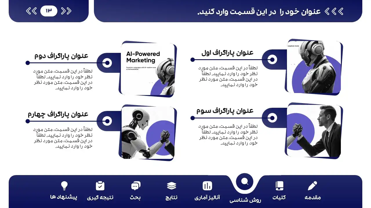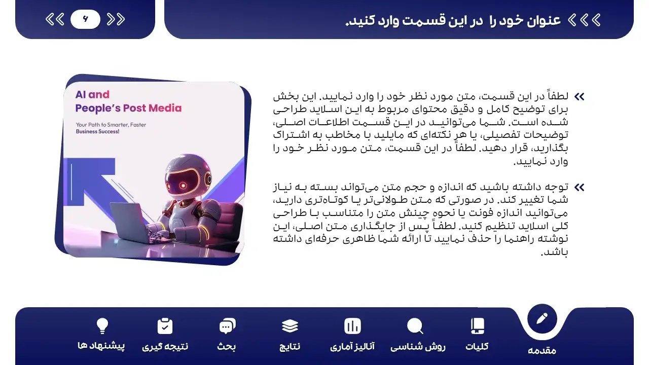 ✅ شماره گذاری اتوماتیک اسلایدها: با کم یا اضافه کردن اسلایدها، شماره صفحه به صورت خودکار بروز می‌شود.