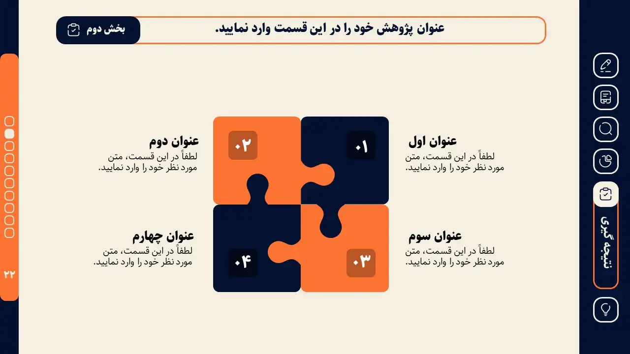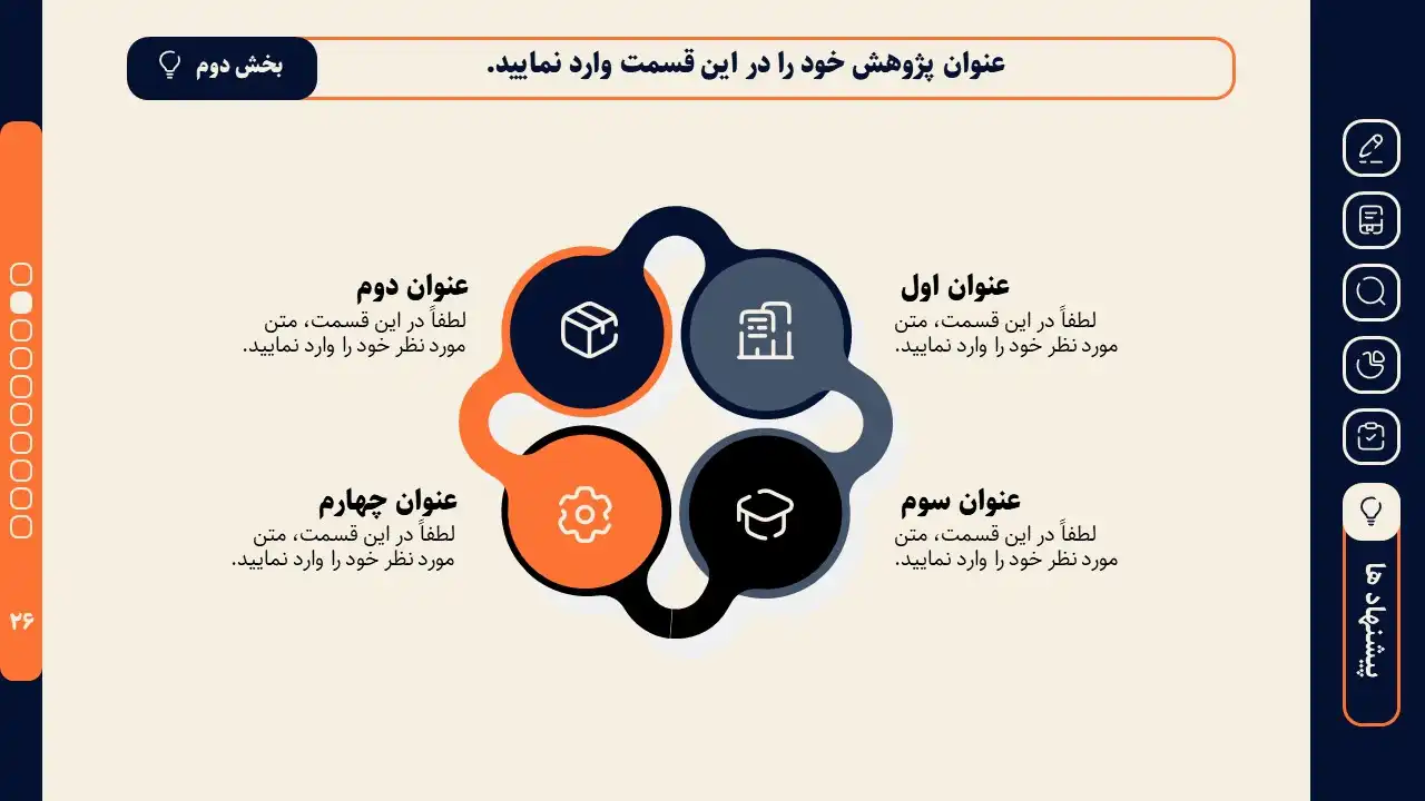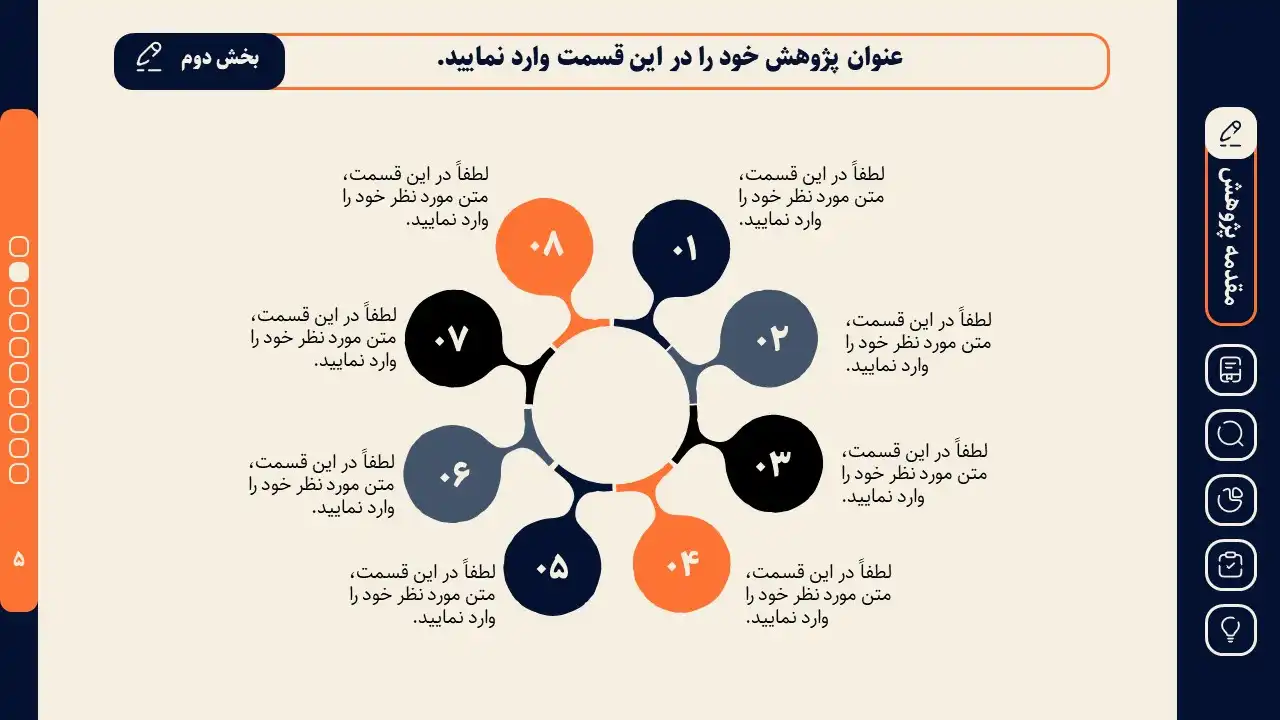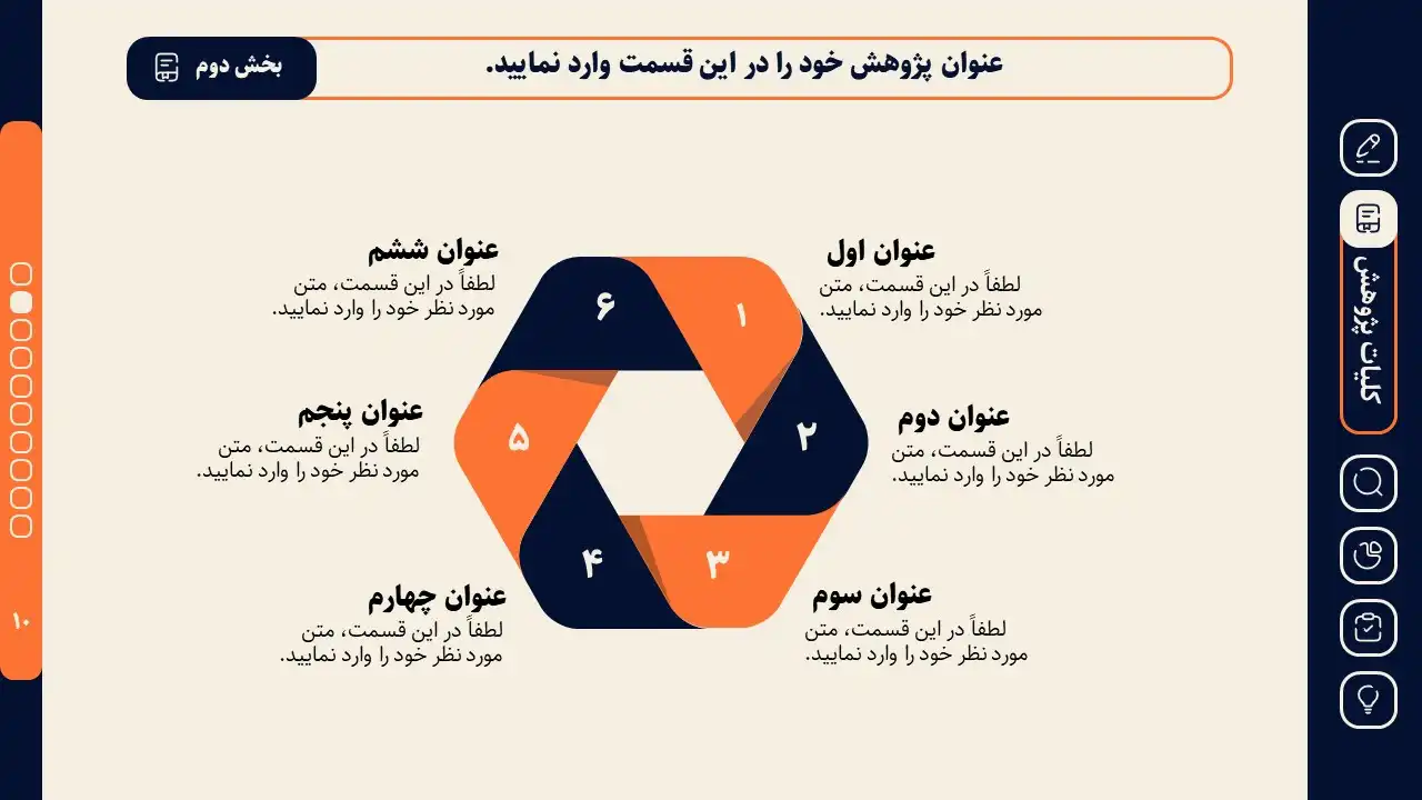 ✅ شماره گذاری اتوماتیک اسلایدها: با کم یا اضافه کردن اسلایدها، شماره صفحه به صورت خودکار بروز میشود.