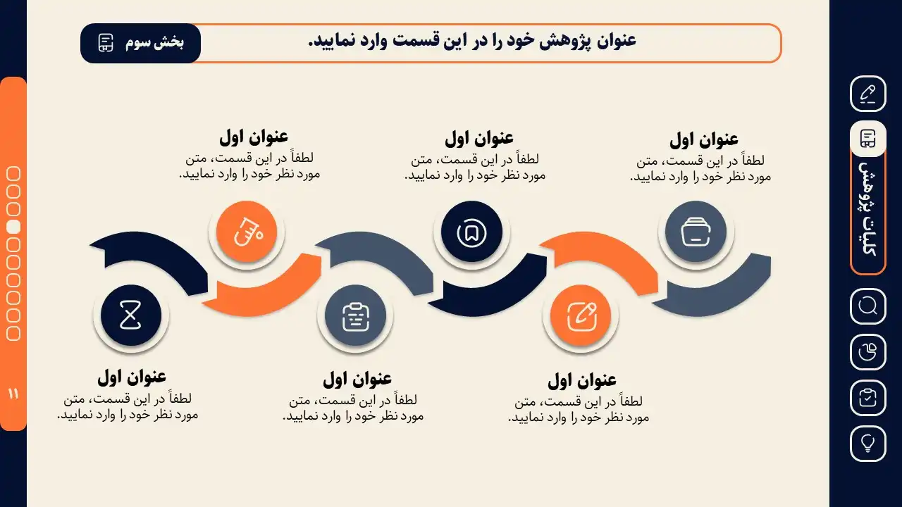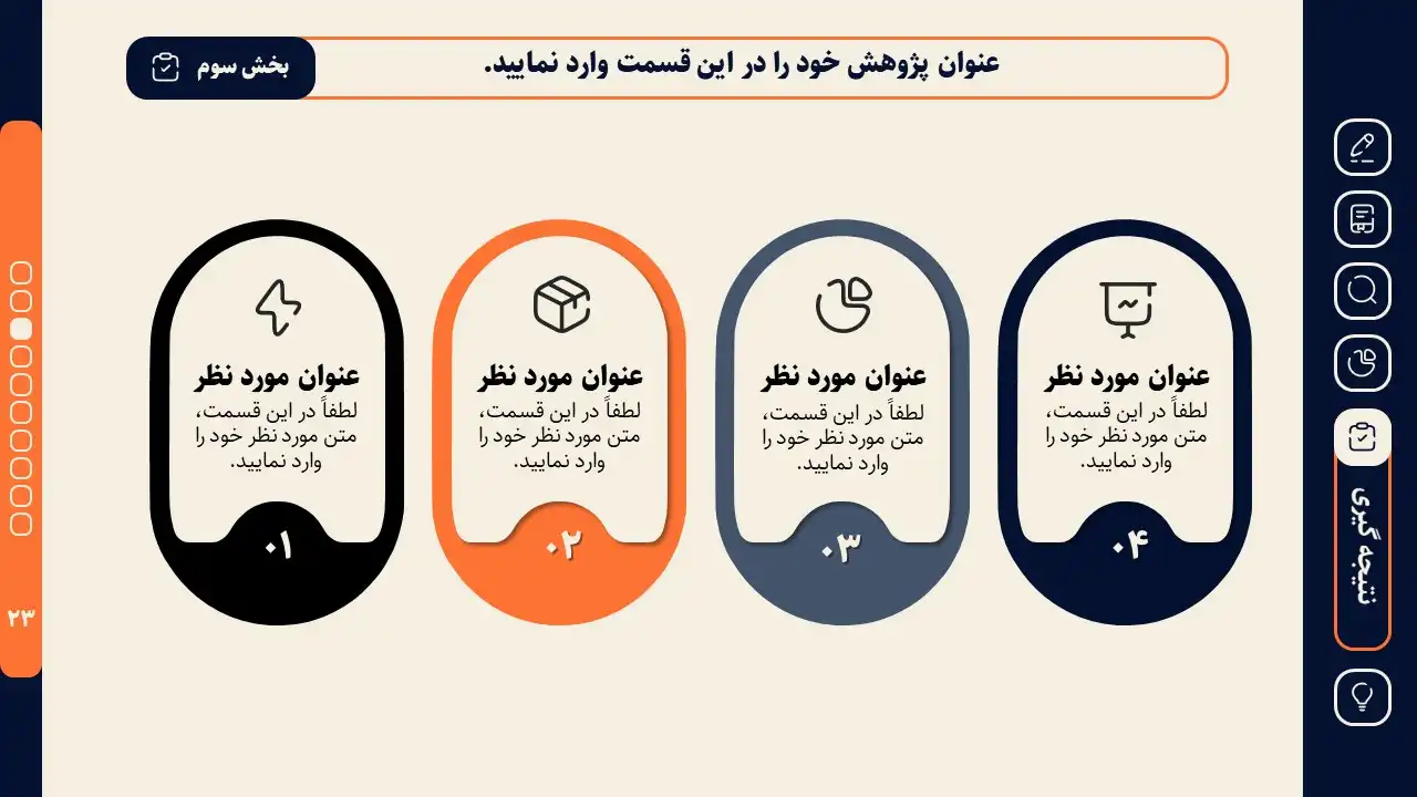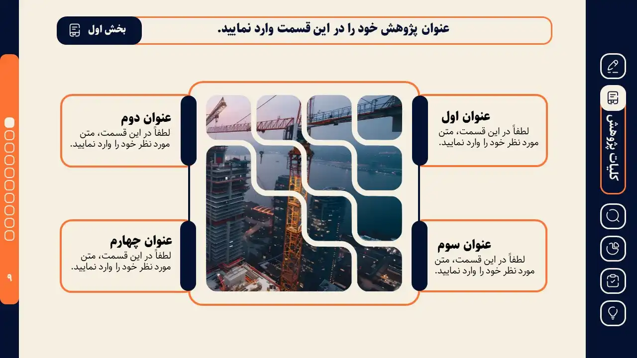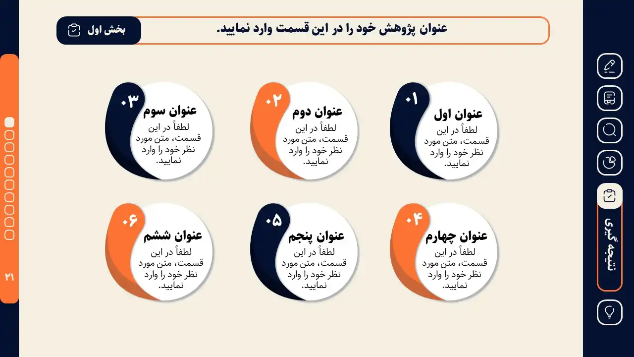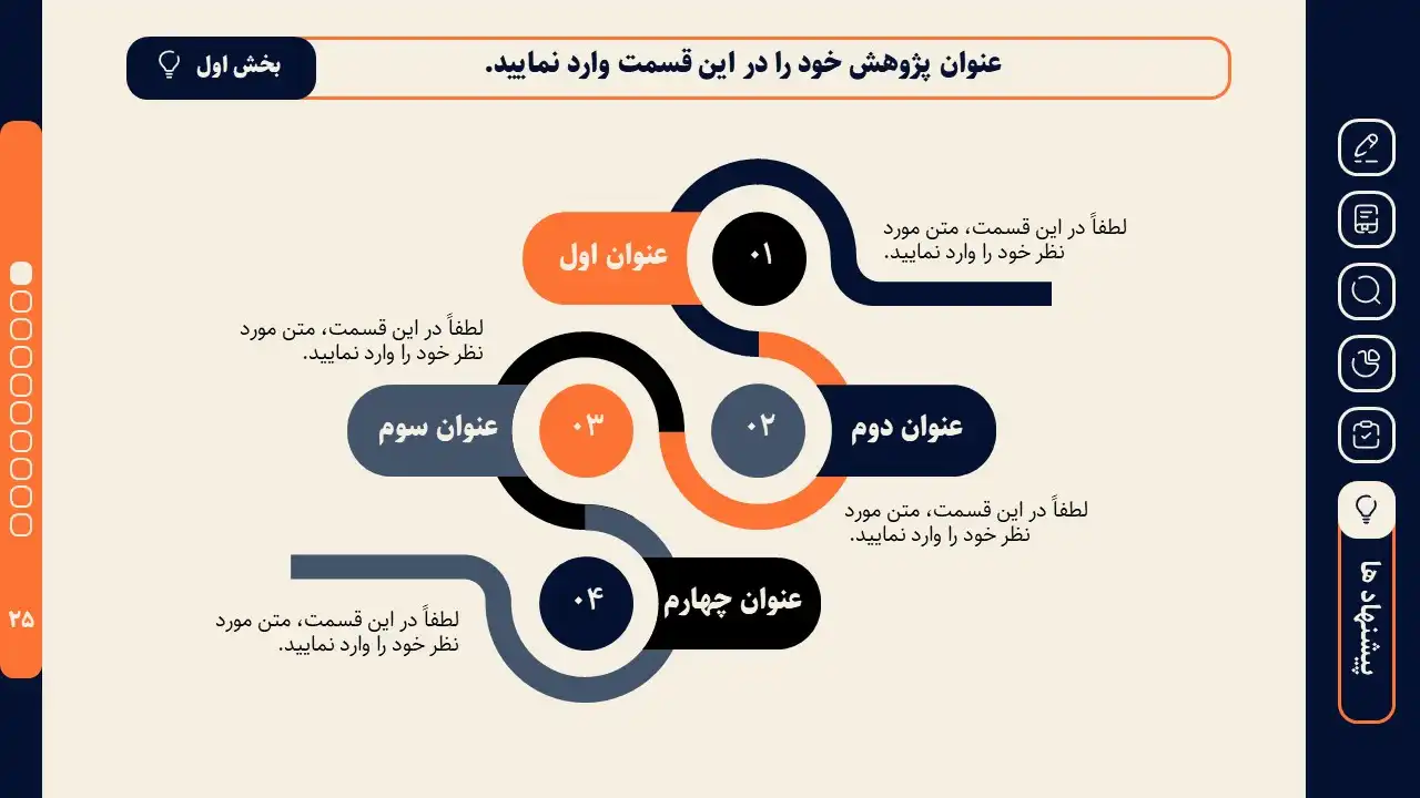 ✅ شماره گذاری اتوماتیک اسلایدها: با کم یا اضافه کردن اسلایدها، شماره صفحه به صورت خودکار بروز میشود.