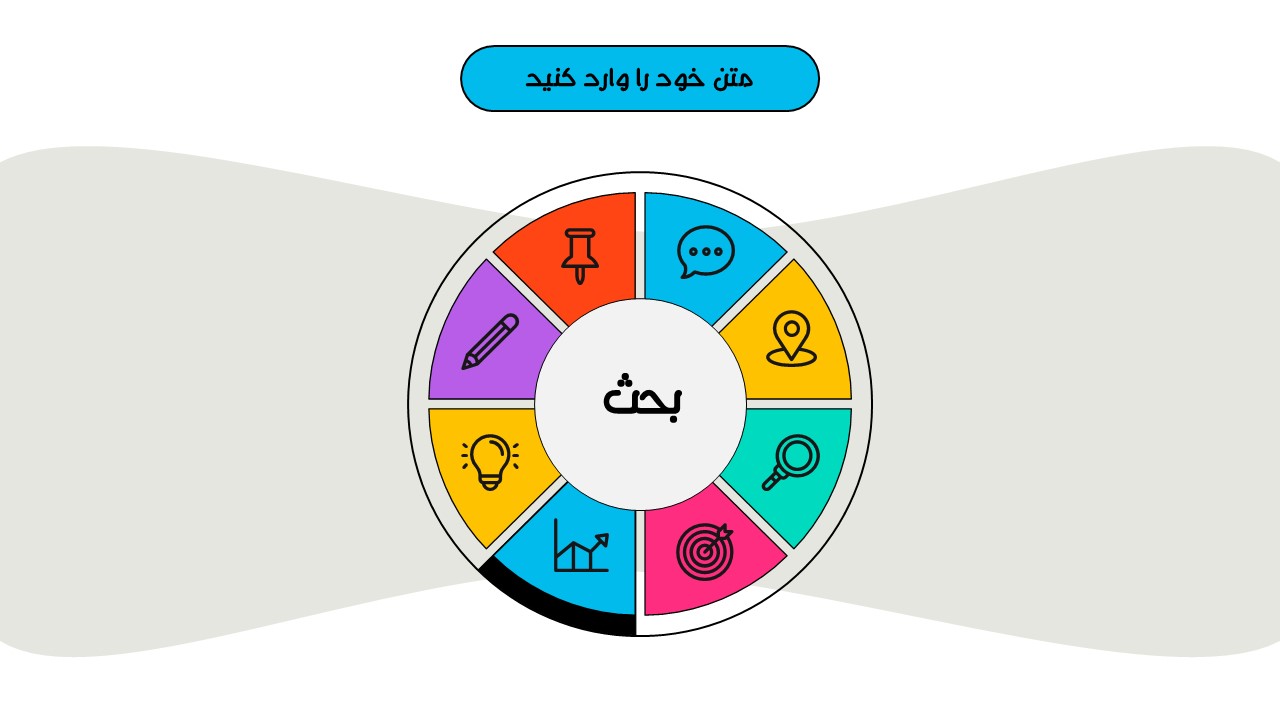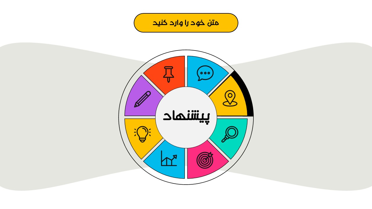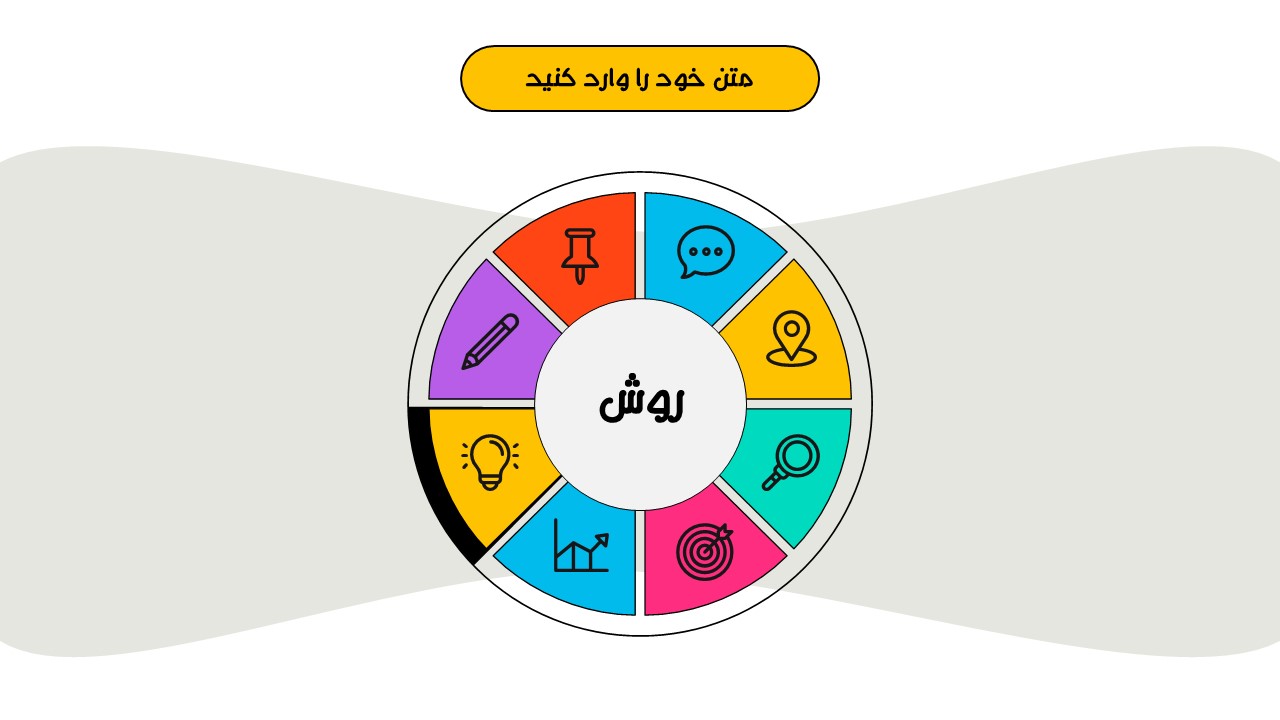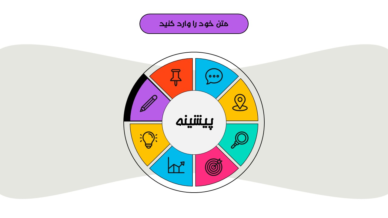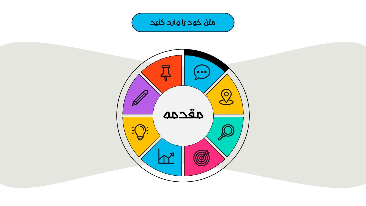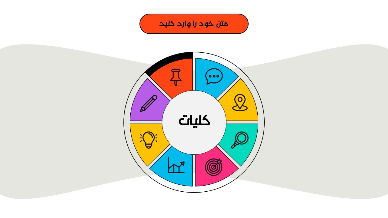 هر بخش این تم دو اسلاید اینفوگرافیک مختلف دارد که هرکدام ویژگی های خاص خود را دارند. همچنین منوی رنگی دایره ای به زیباتر بودن این قالب اضافه میکند. در این قالب حرفه ای میتوانید هر ویرایشی خواستید اعمال کنید.