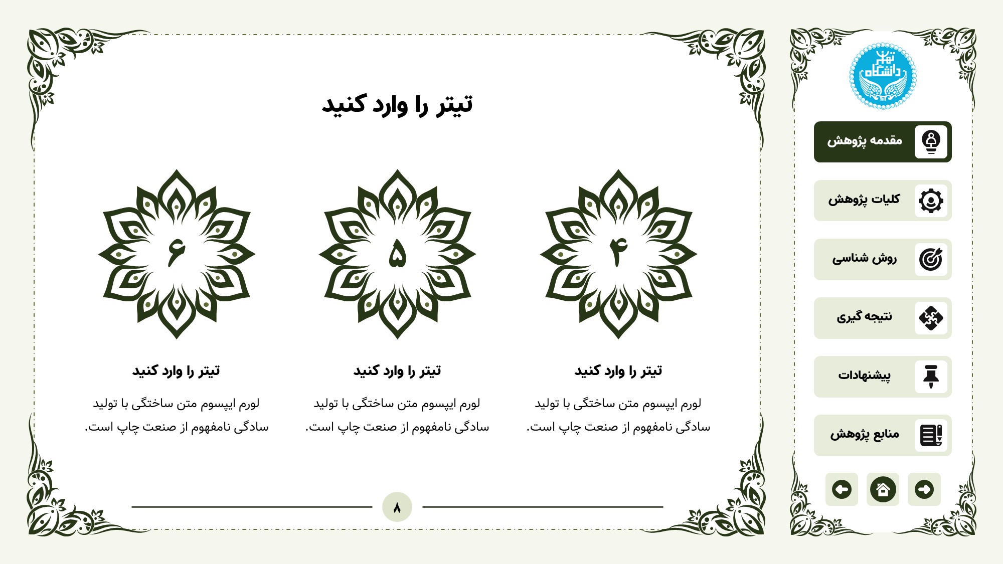 قالب پاورپوینت منودار طرح ایرانی (مخصوص انواع ارائه‌ها) – کد 190