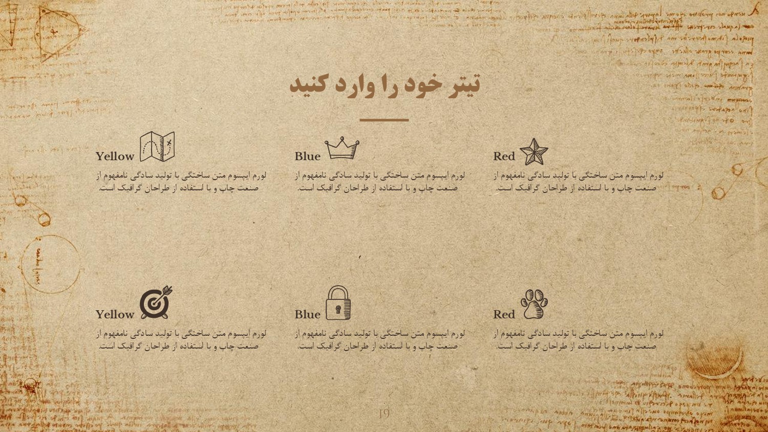 مناسب برای انواع ارائههای تاریخی: با توجه به نوع طراحی این قالب، میتوانید از آن برای انواع ارائه های تاریخی استفاده کنید.