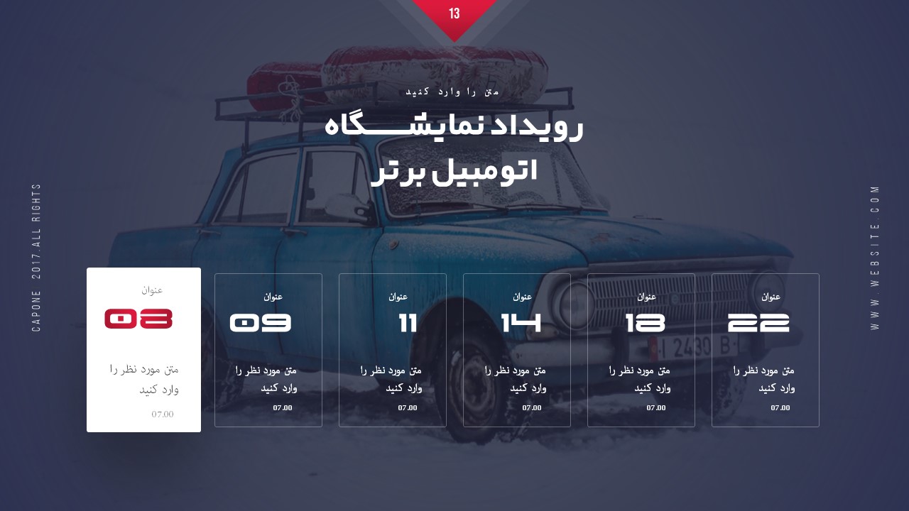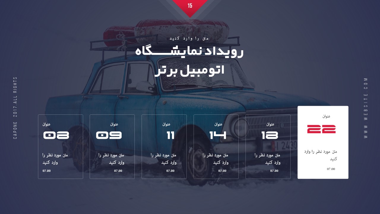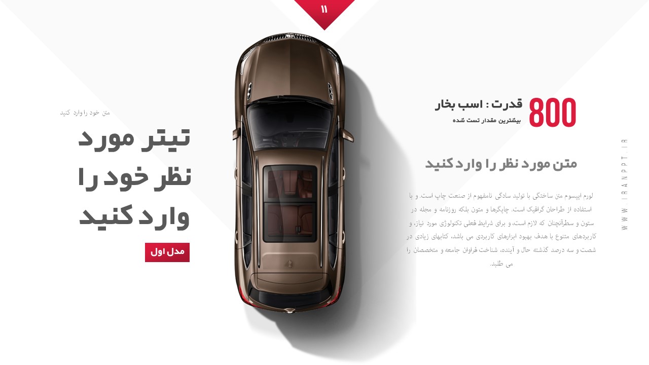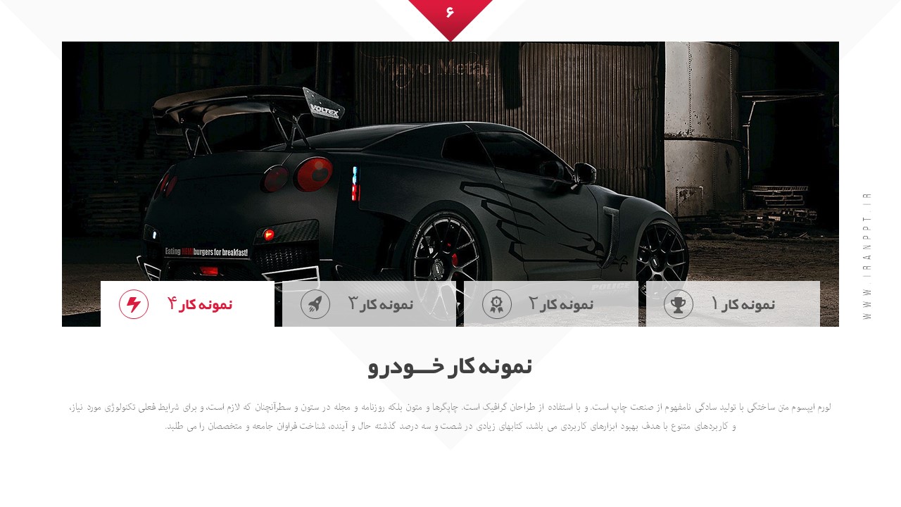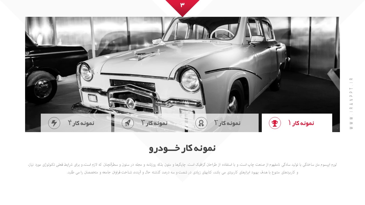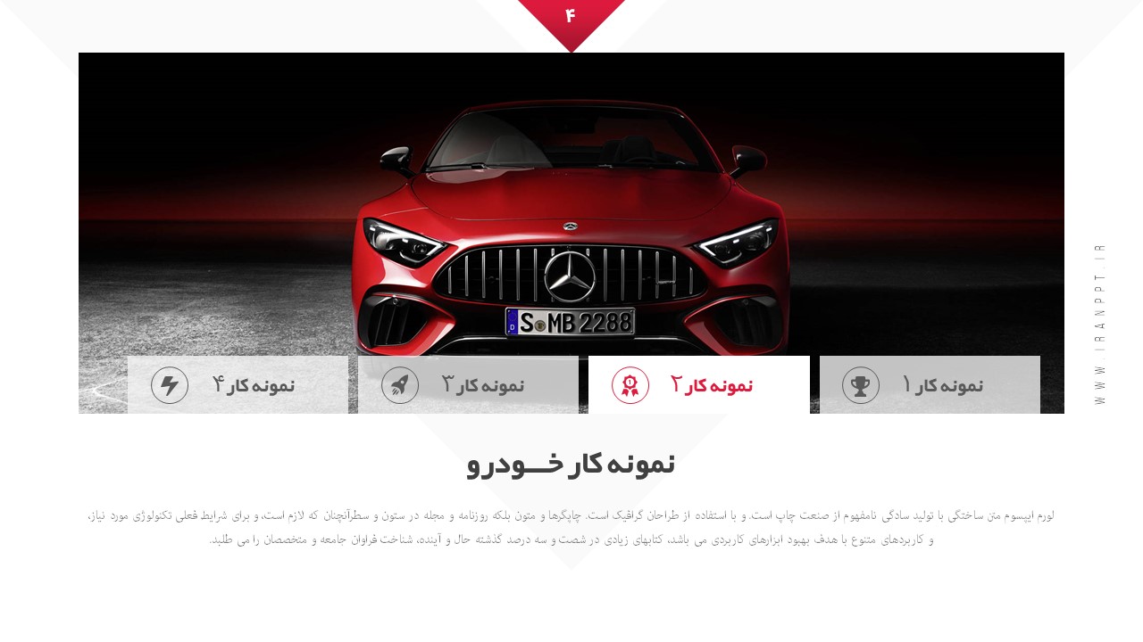 تعداد اسلاید: دارای 20 اسلاید مختلف مناسب خودرو و ماشین