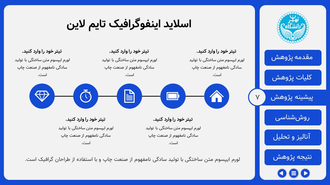 المانهای گرافیکی: دارای المان گرافیکی اینفوگرافیک تایم لاین و دایرهای، اسلاید جدول و نمودار، منودار و…