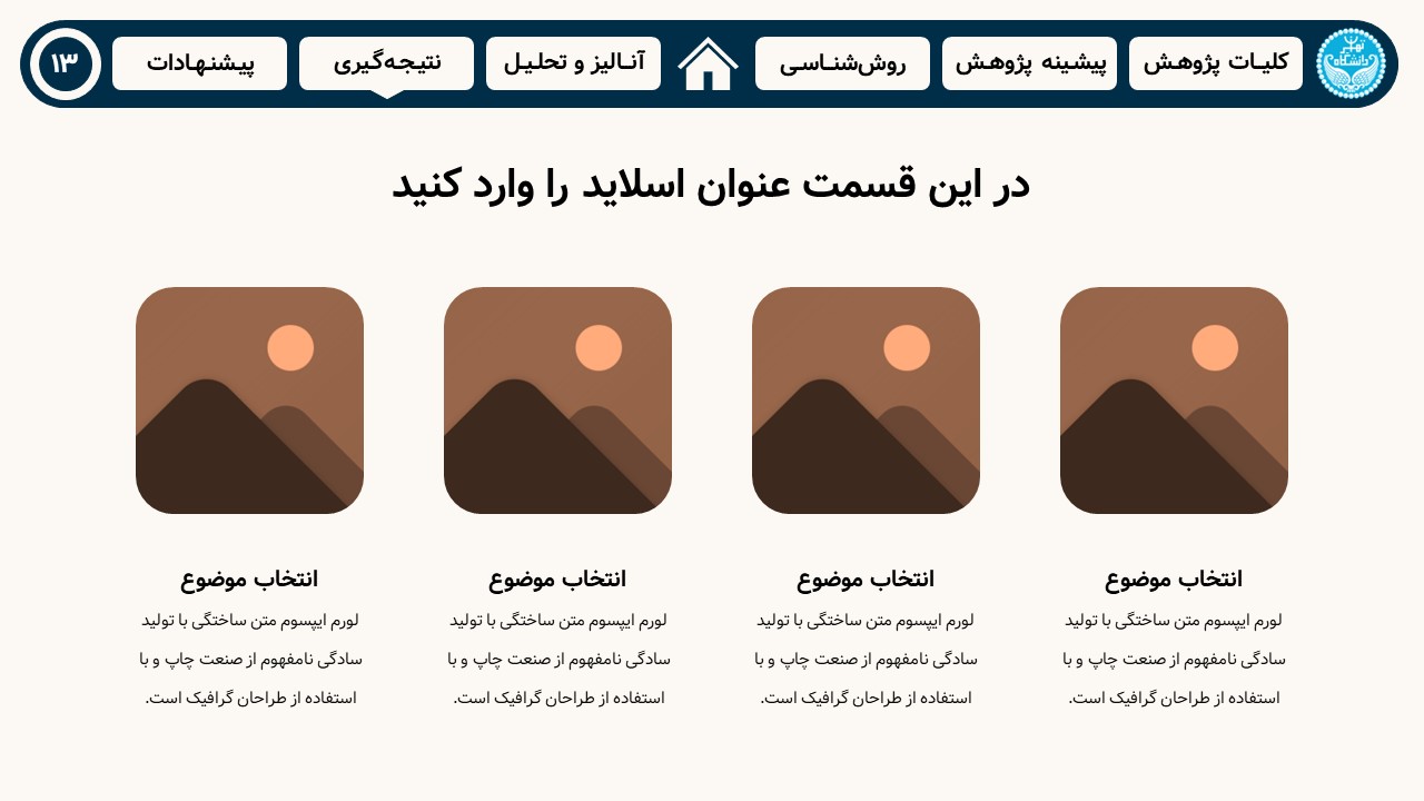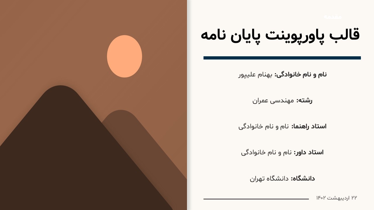 همچنین برای مشاهدهی جدیدترین طرحهای پاورپوینت دانشجویی روی لینک دانلود تم پاورپوینت دانشگاهی رایگان کلیک کنید.