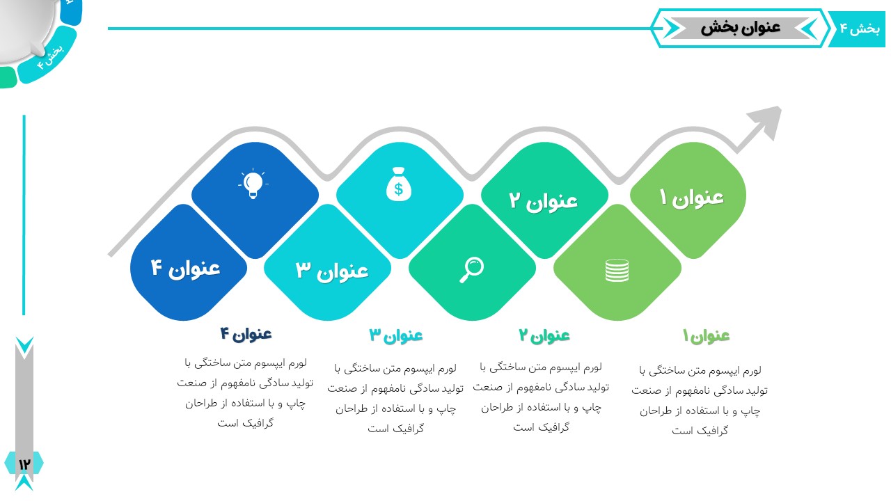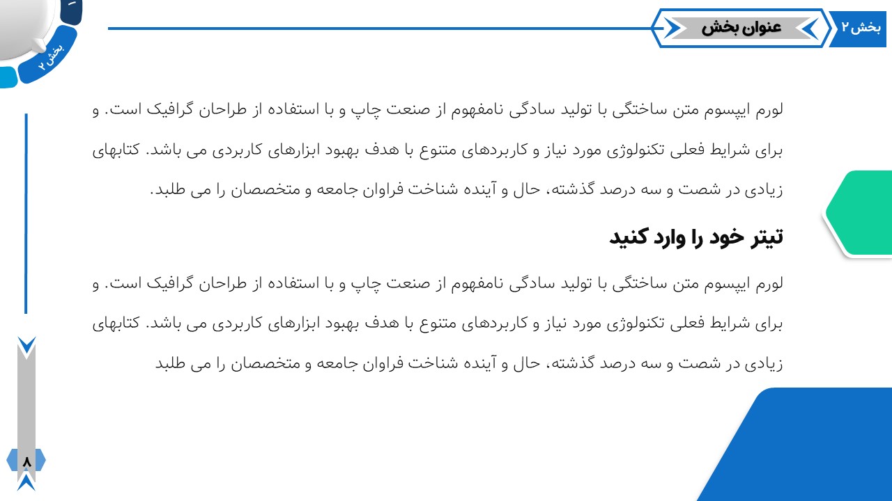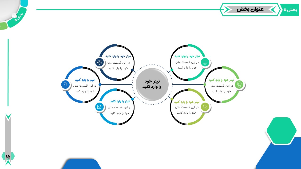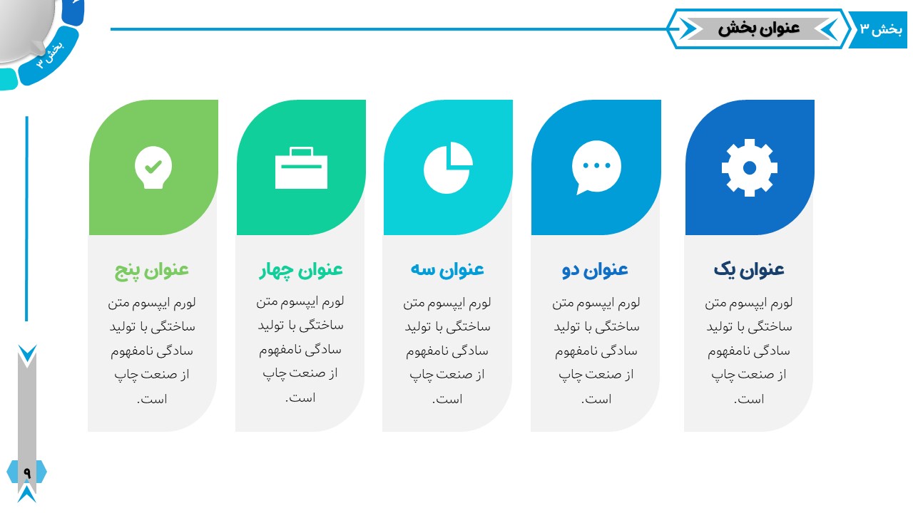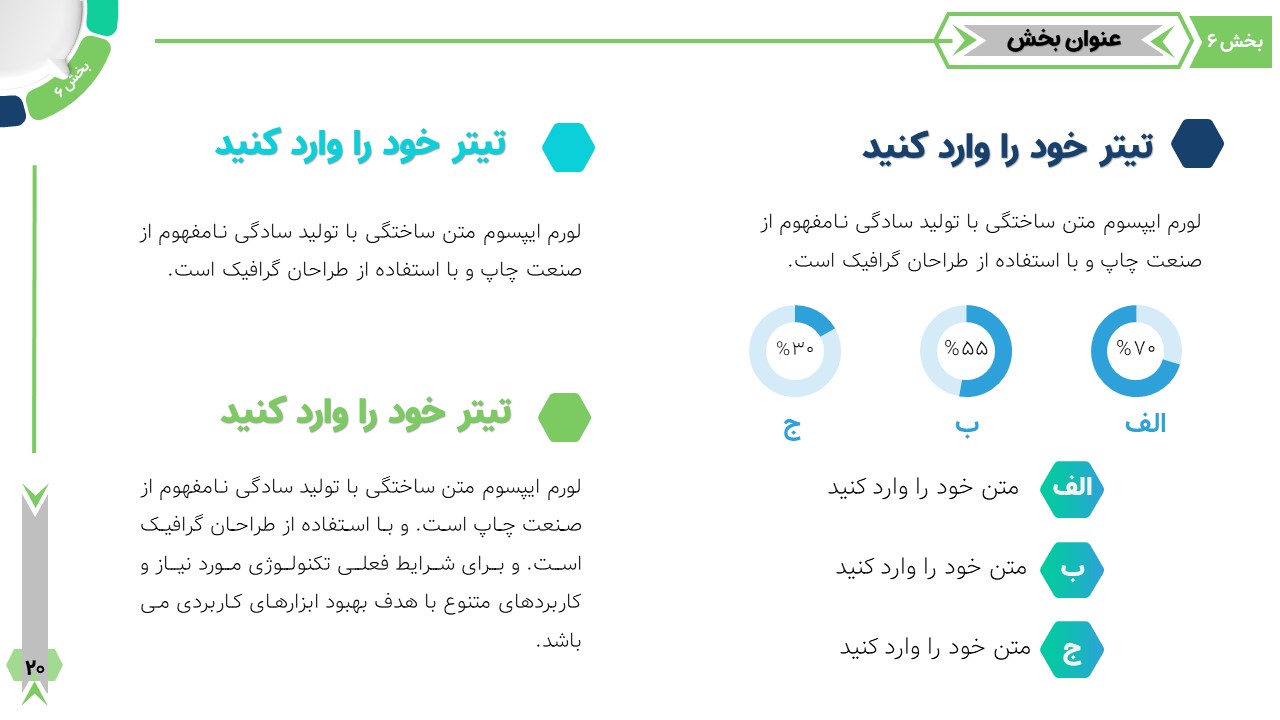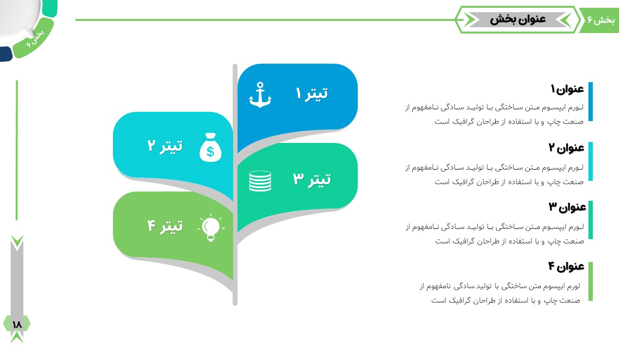 دارای بی نهایت رنگ بندی: رنگ بندی این پاورپوینت به راجتی و با چند کلیک تغییر میکند که در ویدئوی آموزشی به آن اشاره کردهایم.