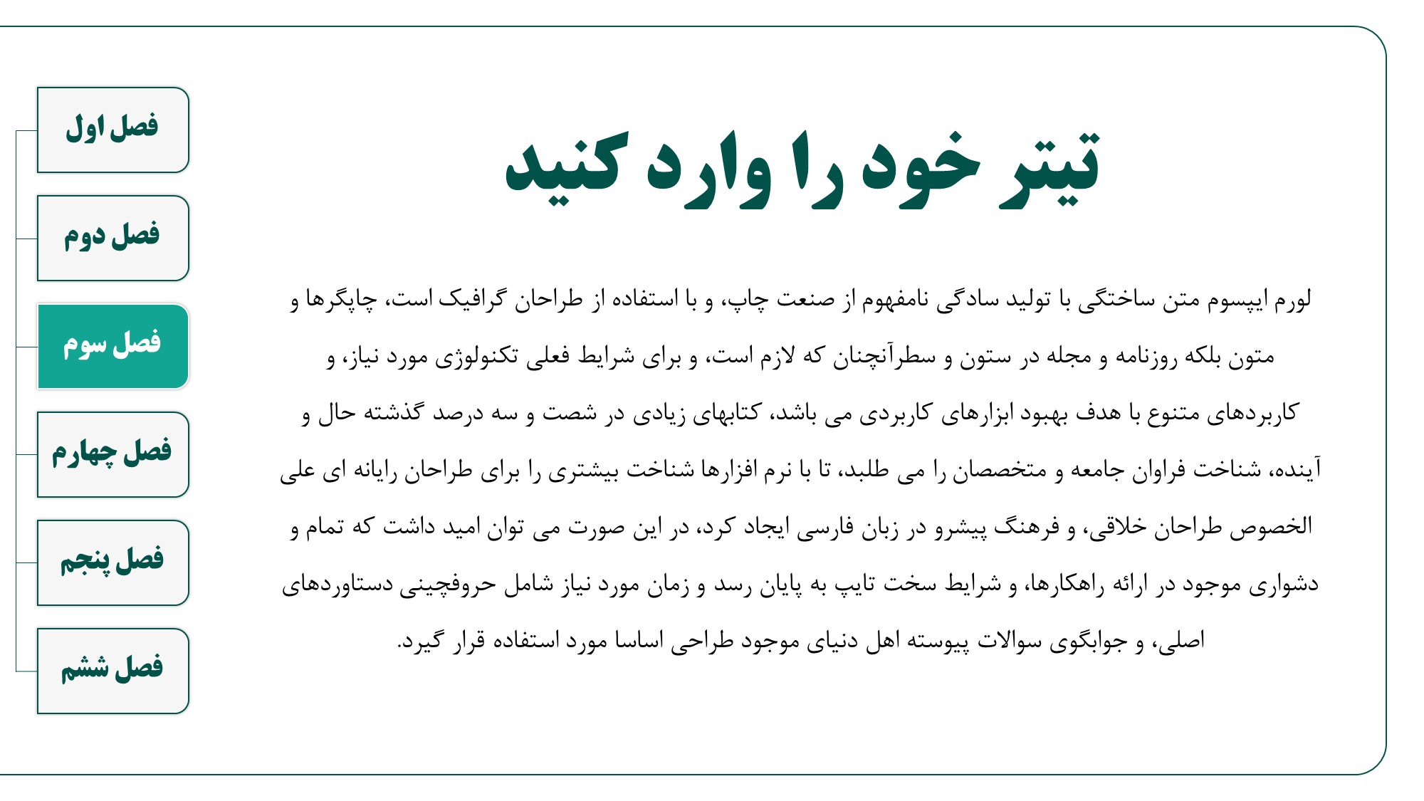 شماره گذاری اسلایدها: ندارد، قابلیت اضافه کردن دارد.