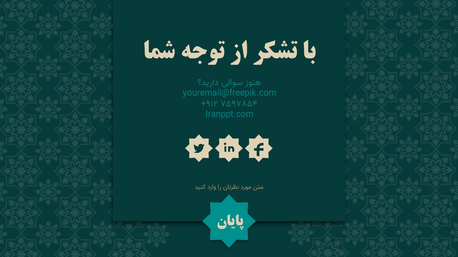برای دانلود تمپلیتهای مذهبی بیشتر به صفحه قالب پاورپوینت مذهبی رایگان مراجعه کنید.