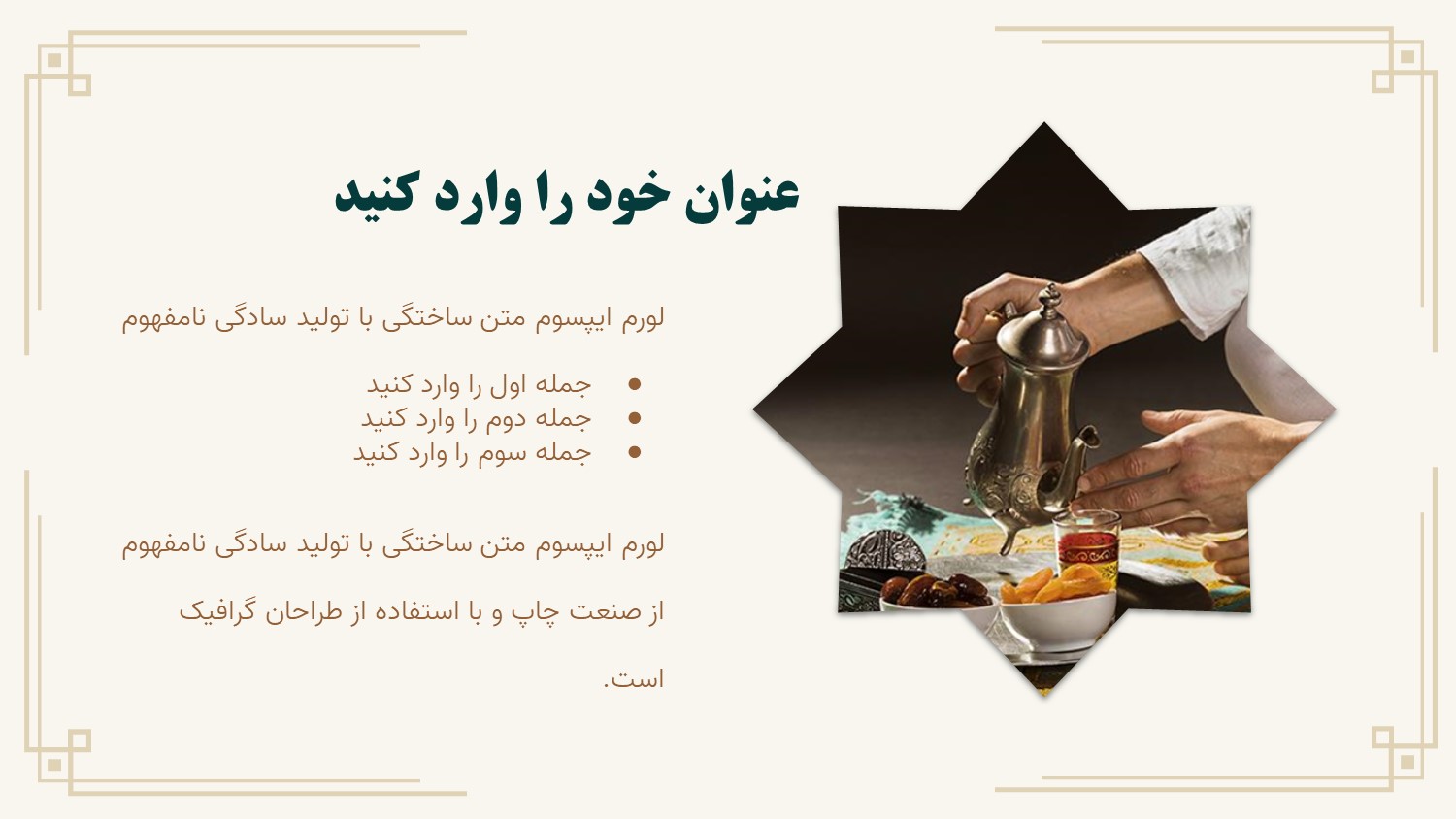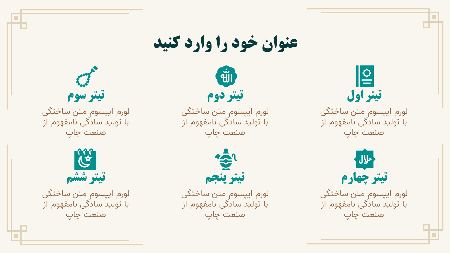مناسب برای انواع ارائههای مذهبی و اسلامی: با توجه به سبک آیکونها، وکتورها و پس زمینه این پاورپوینت، از آن میتوانید در انواع ارائههای مذهبی و اسلیمی مثل رشته فقه، معارف اسلامی و… استفاده کنید.