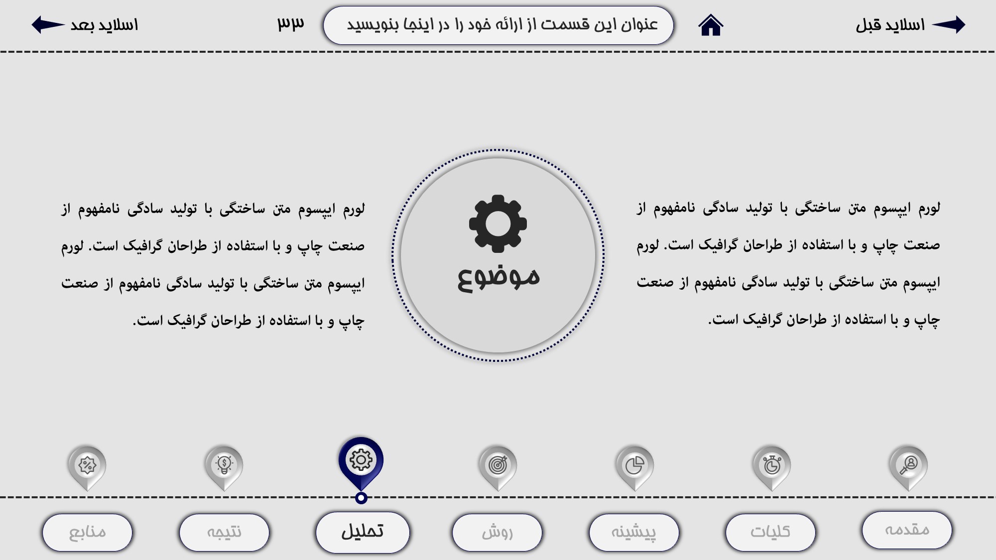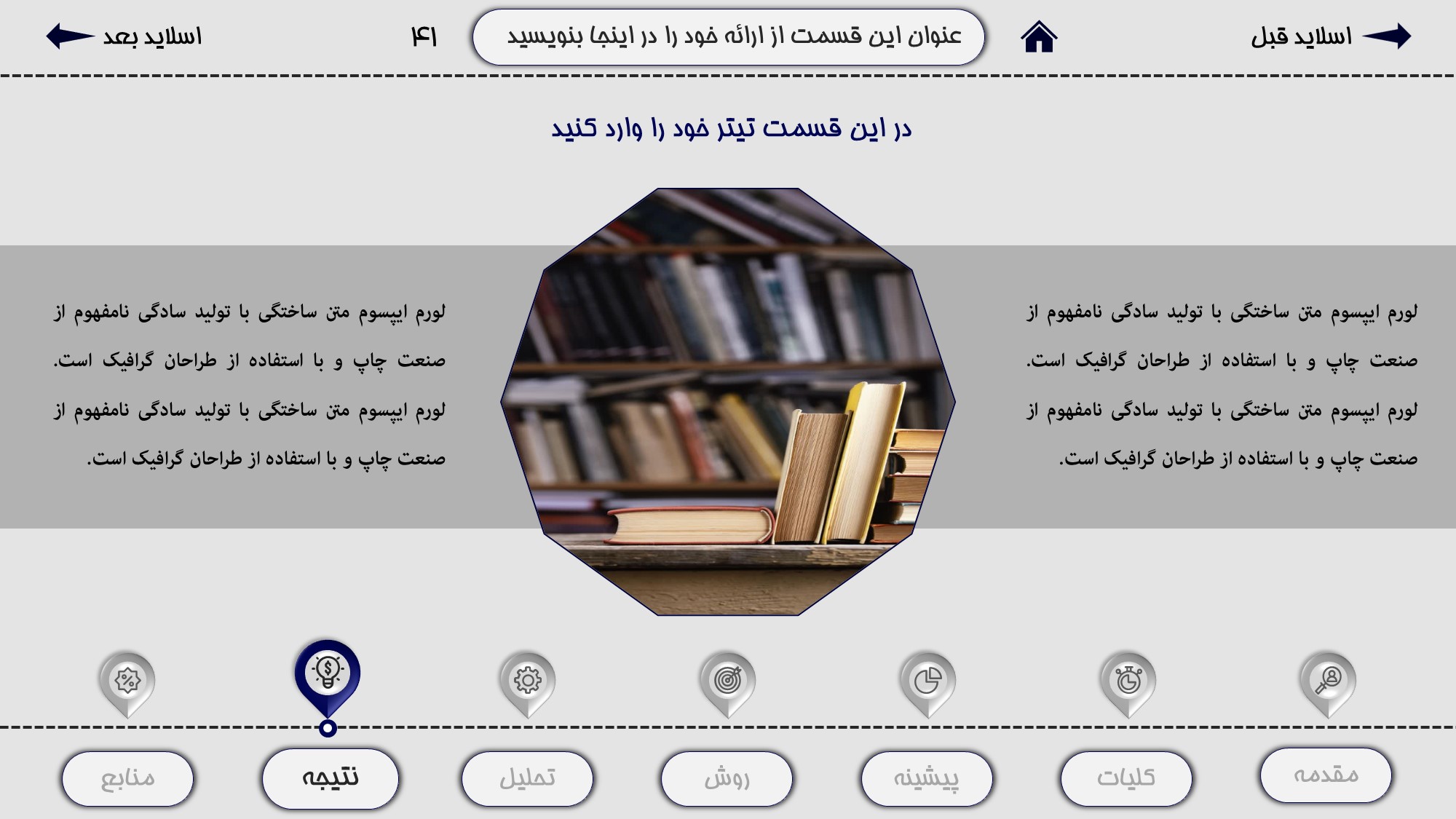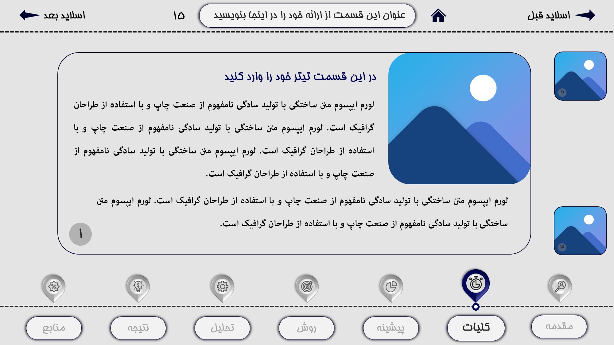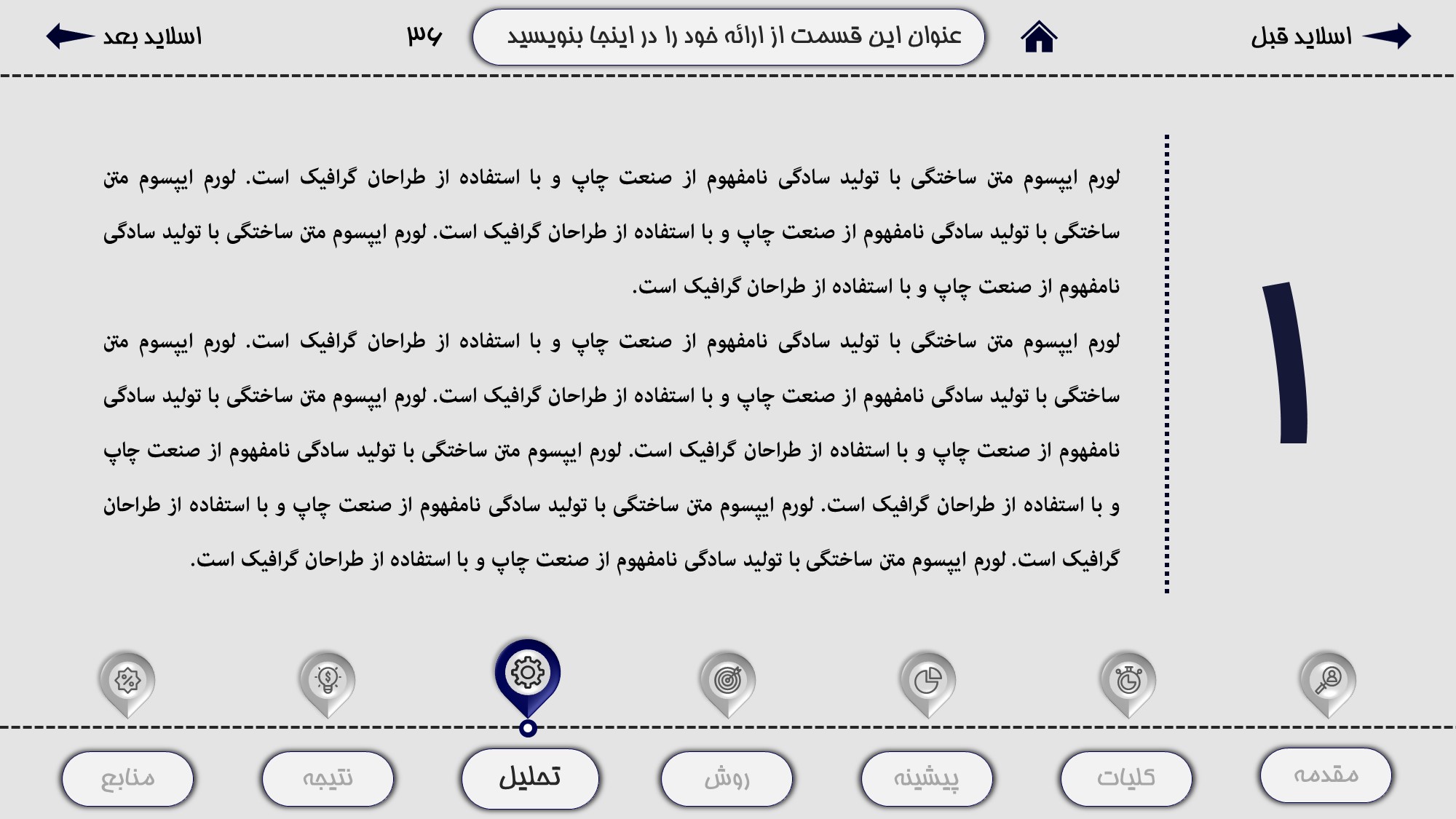 مناسب برای جلسات دفاع: این تمپلیت یک نمونه پاورپوینت پایان نامه است که در جلسات دفاع کارشناسی ارشد و دکتری میتوانید از آن استفاده کنید.