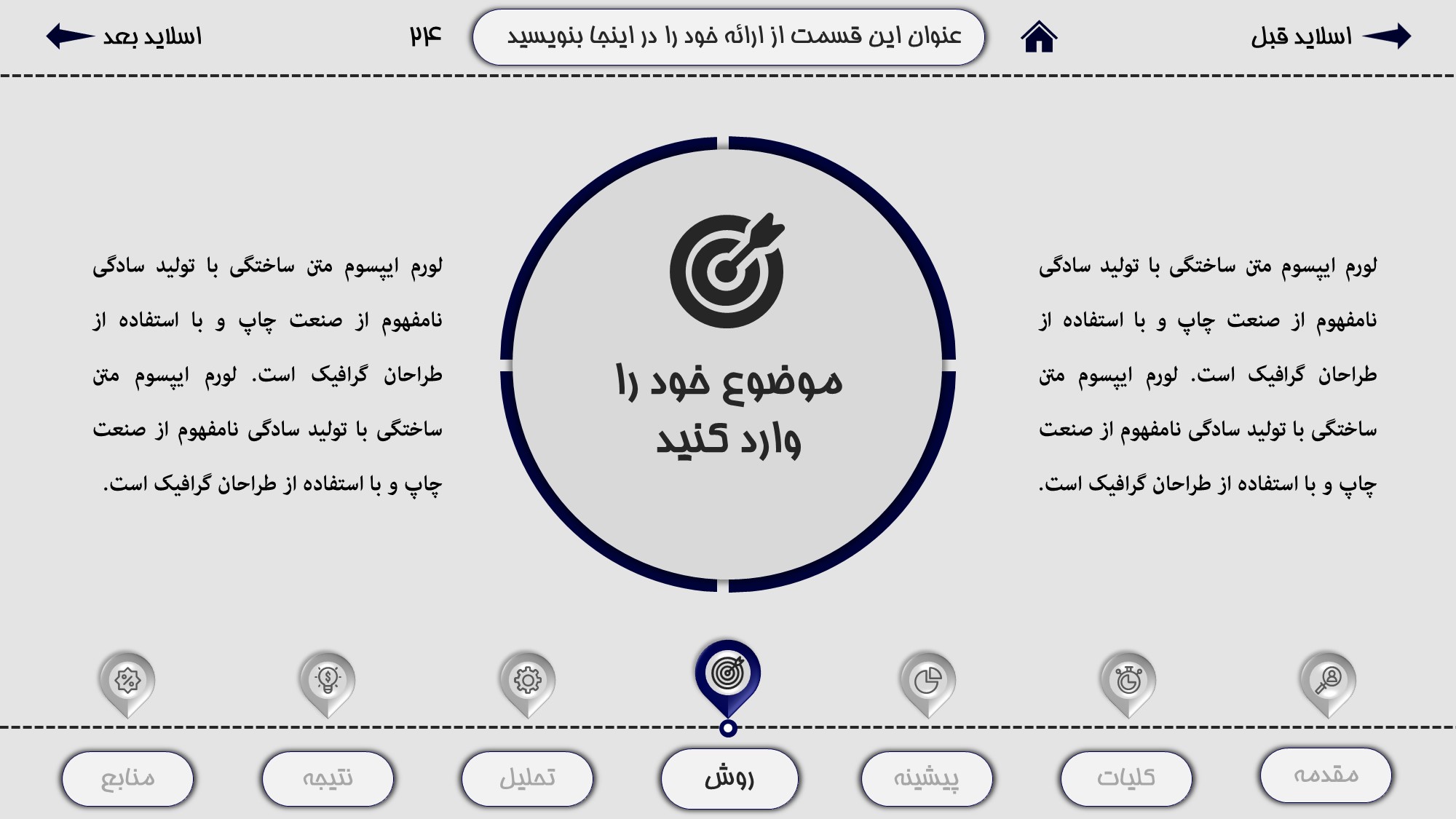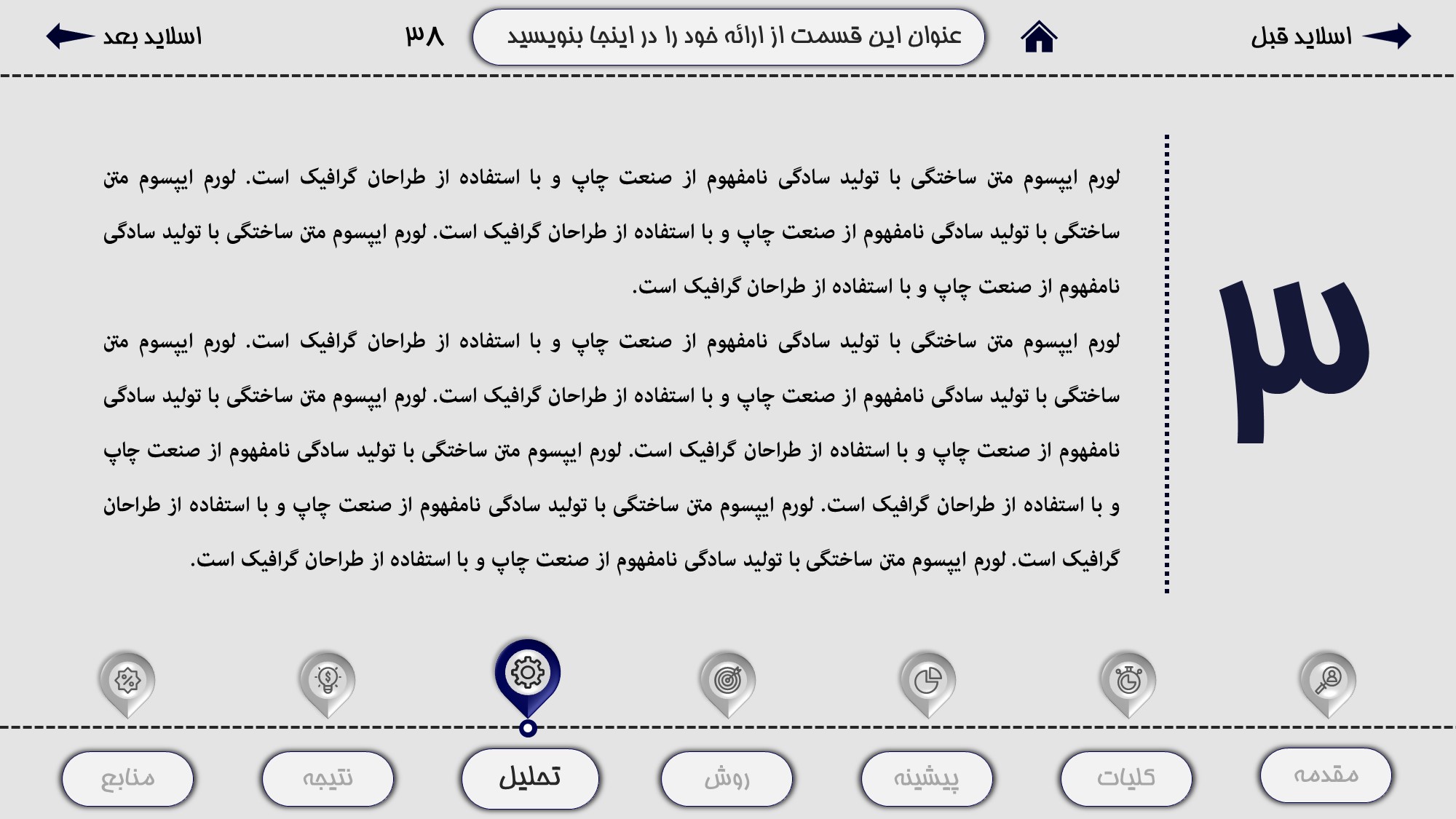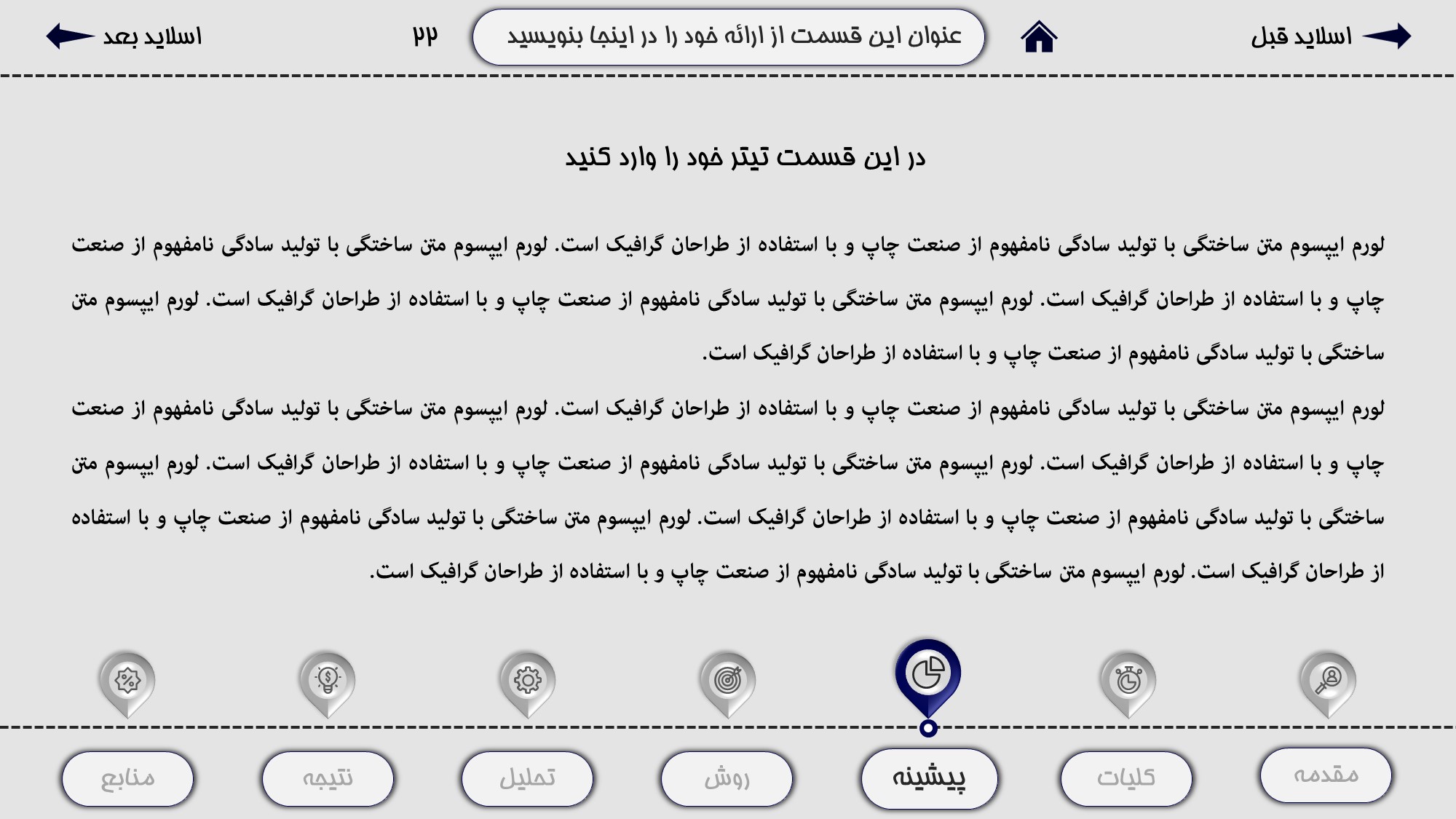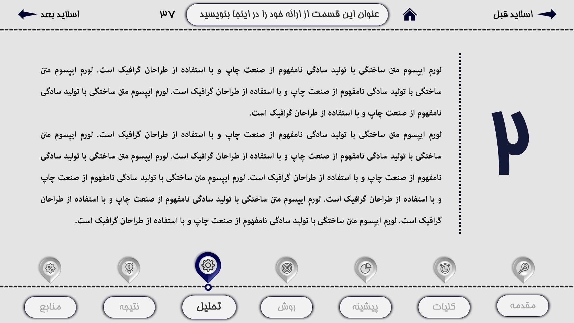 مناسب برای جلسات دفاع: این تمپلیت یک نمونه پاورپوینت پایان نامه است که در جلسات دفاع کارشناسی ارشد و دکتری میتوانید از آن استفاده کنید.